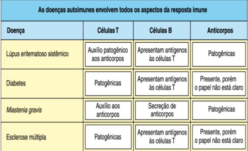 AUTOIMUNIDADE Geralmente levam a uma resposta inflamatória crônica, induzindo o uso de imunossupressores no indivíduo. Fatores genéticos e ambientais podem influenciar nessa desregulação. Existem defeitos monogênicos (muito raro), como por exemplo defeitos genéticos em genes que regulam a expressão de antígenos tecidoespecíficos no Timo, genes envolvidos no desenvolvimento de células T regulatórias e, principalmente, genes relacionados ao locus de MHC (maior culpabilidade do desenvolvimento de doenças autoimunes em indivíduos). Outros fatores que podem levar à condição: fatores sexuais (muitas doenças são mais comuns em fêmeas do que em machos, com fatores hormonais envolvidos OU NÃO nisso), Infecções podem levar ao desenvolvimento de moléculas ou ativação de células: reatividade cruzada entre moléculas próprias e moléculas estranhas em patógenos pode levar a respostas contra o que é próprio e, assim, à doença autoimune. Um epítopo muito parecido com o do MO (mimetismo) e, ao desenvolver uma resposta contra aquele MO, as moléculas de anticorpos que serão produzidas atacarão e reconhecerão o seu próprio epítopo de forma cruzada e desenvolverão uma resposta imune OU Trauma que libera antígenos que estavam em sítios imunologicamente privilegiados que, antes estavam protegidos e agora podem desencadear resposta imune. As doenças autoimunes podem ser classificadas em grupos que são: órgão-específicos ou sistêmicos Da perspectiva clínica, é útil distinguir dois padrões principais de doença autoimune: 1. Doenças autoimunes órgão-específicas: doenças nas quais a expressão da autoimunidade é restrita a órgãos específicos do corpo; 2. Doenças autoimunes sistêmicas: aquelas em que muitos tecidos do corpo são afetados. Que tipo de célula predomina no desenvolvimento de uma doença autoimune? Em algumas ocorre a produção de anticorpos, outros a ativação da célula T. Mas na verdade, todos os braços da resposta imune estão envolvidos em uma resposta autoimune. LÚPUS: Anticorpos: agente patogênico. Eles que vão se depositar nas articulações, rins, pele. Porém, são produzidos pela célula B, que recebe auxilio da célula T. Portanto, todos os braços da resposta imunes estão sendo ativados. DIABETES: Célula TCD8: Patogênica, destrói células do pâncreas. Mas a célula B participa apresentando antígeno para a célula T, ativando-a. Anticorpos também são produzidos contra células do pâncreas, contra insulina, embora seus papeis ainda não esteja claro. MIASTENIA GRAVIS: Células T auxiliam célula B a produzir anticorpos. ESCLEROSE MÚLTIPLA: Célula T contra antígenos presentes no cérebro. Pouco se sabe como se dá o início de uma doença autoimune. Doenças Autoimunes Órgão-Específicas - Tireoidite Linfocítica: Autoanticorpos e células Th1 específicas para antígenos da tireóide, que levam a uma resposta inflamatória, ativam macrófagos. É caracterizada como uma Hipersensibilidade do tipo IV. (Participação de células TCD4) Intensa infiltração de linfócitos, macrófagos e plasmócitos na glândula tireóide – Característica de uma resposta INFLAMATÓRIA). - Diabete melito dependente de insulina (Tipo I) Hipersensibilidade do tipo IV, envolvendo linfócitos T. Alguns casos de DMDI espontânea em cães podem ser imunomediadas. Em cães, está associada à atrofia das ilhotas pancreáticas e à perda das células beta. Mecanismo envolvido: Linfócitos T citotóxicos (TCD8, específicas para as células beta pancreáticas) ativados migram para as ilhotas de Langerhans e iniciam um ataque as células β produtoras de insulina, liberando seus grânulos citotóxicos e levando à apoptose. - Produção local de INF-, TNF- e IL-1 (Citocinas inflamatórias) e de auto-anticorpos (apesar de desconhecerem sua contribuição). Síndrome uveodermatológica (cães) Síndrome de Vogt-Koyanagi-Harada (humanos) Caracterizada por um infiltrado de linfócitos, célula produtora de anticorpo, macrófago, LT específicos que atuam dentro de proteínas específicas formadoras da melanina. - Fagocitose de melanina mediada por macrófagos, lesões cutâneas formadas pela infiltração de macrófagos, células gigantes e plasmócitos da junção dermoepidérmica. - Opacificação ocular, alopecia e despigmentação do plano nasal. Miosite mastigatória autoimune -O único antígeno conhecido é a proteína C ligante de miosina encontrado nas fibras dos músculos mastigatórios. -Músculos afetados apresentam lesões inflamatórias ou degenerativas, que acometem as miofibrilas M2. -Linfócitos e plasmócitos são predominantes. Doença de Graves - Autoanticorpos que se ligam ao receptor de TSH e mimetizam a ação normal do TSH, ativando a adenilato ciclase resultando na produção dos hormônios da tireóide, atuam como AGONISTA. - A regulação por retroalimentação da produção dos hormônios tireoidianos é alterada. O que ocorre normalmente: glândula pituitária secreta o hormônio estimulante da Tireóide (TSH), que se liga ao receptor específico na cél da tireoide, estimulando-a a produzir o hormônio. Quando tem muito hormônio, ele sinaliza para que a glândula secrete menos TSH. O que ocorre na doença: autoanticorpo é capaz de estimular esse receptor da célula da tireoide através de um mimetismo, estimulando a alta produção de hormônios, que até sinaliza para a glândula pituitária parar a produção, mas não é ele que está estimulando: é o autoanticorpo. Ou seja, feedback negativo não ocorre. Miastenia Grave - Também envolve autoanticorpos, só que de forma ANTAGONISTA. Autoanticorpos se ligam ao receptor de Acetilcolina na placa motora sináptica do músculo e bloqueia a ligação normal da Ach, induzindo a lise das células mediadas pelo Sistema Complemento. Normal: Impulso nervoso libera Ach, que é reconhecida pelos receptores específicos no músculo, que vai levar ao fluxo de sódio
