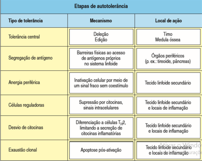 TOLERÂNCIA Mecanismos de proteção impostos pelo sistema imunitário para prevenir as reações de suas células e anticorpos com componentes do hospedeiro e o início do desenvolvimento de doenças autoimunes. Mecanismos que impedem que desenvolvemos doenças auto imunes ou que o sistema imune reaja contra antígenos próprios: Mecanismos Centrais (órgãos linfoides primários), Mecanismos periféricos (periferia de órgãos linfoides secundários em maior quantidade e órgãos periféricos). Segregação de antígenos: cria-se uma barreira, prendendo-os em sítios específicos e impedindo que sejam expostos ao sistema imune e desencadeie uma resposta. Anergia Periférica: inativação dos linfócitos, que chegam a reconhecer os antígenos próprios, mas não conseguem ser ativados por falta de coestímulo. Presença de células reguladoras do sistema imune que regularão outras células que irão impedir que os linfócitos sejam ativados contra os antígenos próprios Desvio de citocinas: algumas citocinas levam um perfil de imunossupressão. Exaustão clonal: no momento em que o linfócito é ativado contra o antígeno próprio, ele sofre apoptose. Falha no mecanismo = suscetibilidade a aquisição de doenças autoimunes. TOLERÂNCIA CENTRAL (órgãos linfoides primários: Timo e Medula Óssea) Vão monitorar/impedir que linfócitos que reconhecem antígenos próprios saiam dos órgãos primários e vá para os secundários/periféricos. Na medula óssea existe um precursor linfoide que, nos linfócito B, permanecem na medula, e nos linfócitos T, saem e vao para o timo, maturando-se. Dentro desses primários, ocorrerá um Rearranjo Gênico que ocorre de forma aleatória e dará origem aos seus receptores (proteínas que reconhecerão os antígenos). Quem faz essas recombinações são as enzimas específicas (recombinases). Durante formação dos linfócitos, surgem vários contra antígenos próprios (que são expressos no timo), mas eles não saem dos órgãos (entram em processo de fagocitose). Se isso acontecesse, todos nós teríamos doenças autoimunes generalizadas. Isso porque, no Timo e Medula esses linfócitos imaturos são eliminados (MECANISMO QUE SELECIONA SOMENTE LINFÓCITOS QUE NÃO REAGEM FORTEMENTE CONTRA ANTÍGENOS PRÓPRIOS). Os que não reagem contra antígenos próprios continuam o processo de maturação, formam clones e migram para a periferia. TOLERÂNCIA PERIFÉRICA (órgãos linfoides secundários e periféricos) Porque na periferia ainda encontramos linfócitos autorreativos? Porque nem todos nossos antígenos são expressos na medula e timo. Portanto, possuem antígenos específicos de alguns órgãos que não são expressos anteriormente, sobrando linfócitos autorreativos que vão para a periferia. Se o linfócito reage contra antígeno próprio ele pode seguir dois caminhos principais: Apoptose ou ele se liga ao antígeno mas não consegue ser ativado de forma eficiente, não possui um segundo estímulo muitas vezes, por exemplo, e entrando em estado em anergia. Linfócito T precisa de 3 sinais para ser ativado: MHC, B7 reagindo com CD28 – coestímulo – e produção de citocina. Outro mecanismo de regulação muito importante no timo é a formação de linfócitos que não reagem contra as células próprias (SELEÇÃO NEGATIVA). Seleção negativa: No Timo, os timócitos que se ligam com baixa afinidade à antígenos próprios – precursores linfoides que saíram da medula e foram para o timo – se diferenciam em linfócitos T, que pode ser TCD4, TCD8 ou T regulatório. Existe modulação de linfócitos T que não se ligam nem forte (para ativar) nem fraco em antígenos próprios (vive de forma intermediária ao ag): se diferenciam em linfócitos T regulatórios. É muito diferente da madura efetora, possui moléculas específicas na sua superfície celular: possui CD4, mas possui outra molécula que a diferencia, que é a CD25. Outra característica para diferenciação é o fator de transcrição expresso por essa célula: FoxP3. Papel da T regulatória: regula a resposta imune suprimindo células T efetoras, impedindo que elas sejam ativadas contra antígenos próprios. É também um dos fatores que impede que os linfócitos TCD4 fiquem sempre ativos (o que não pode ocorrer, pois causaria diversas patologias, destruição tecidual, etc). MECANISMOS DE TOLERÂNCIA CENTRAL DE FORMA ESPECÍFICA DE CADA LINFÓCITO. LINFÓCITOS B: Na medula óssea, o precursor da célula B interage com células do estroma da medula e recebe sinais específicos que vão promover o rearranjo gênico dos genes que vão formar pré-receptores da célula B (BCR, uma imunoglobulina de superfície do tipo IgM). Durante esse processo, a célula B passa por vários estágios: pró-B, pré-B, célula B imatura e célula B madura. Durante cada estágio, ela vai ativando determinados genes que vão levar a expressão desses receptores da superfície. A célula B imatura está na medula óssea. Passa por uma seleção negativa, ou seja, apoptose das células que reagem à antígenos próprios. As que não reagem ou que se ligam fracamente, permanecem no processo de maturação e migrando para órgãos linfoides periféricos. Forma-se a célula B madura que, ao ser ativada por contato com antígeno estranho, se diferencia em uma célula efetora produtora de anticorpos (Plasmócito) ou célula de memória. No caso da célula B (não ocorre com o T), a célula possui uma segunda chance, enquanto na medula, caso ela encontre um antígeno próprio > EDITORAMENTO DO RECEPTOR: ela pode rearranjar os genes mais uma vez e formar um outro receptor. Esse editoramento ocorre na cadeia leve da imunoglobulina. Isso ocorre porque ela ainda não é uma célula madura, estando nos estágios anteriores. Portanto, nesses estágios de formação da célula B, ela expressa um PRÉ-RECEPTOR. Se esse novo receptor continuar reagindo fortemente com o ag próprio, gera apoptose. Se ela reagir fraca
