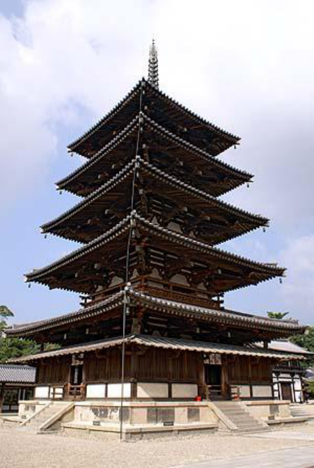 O mundo da arquitetura em madeira Na entrevista realizada com o Dr. Keisuke Fujii, descobrimos que existe no Japão a maior quantidade e as construções mais antigas do mundo feitas em madeira. Fazendo com que os japoneses dominassem as técnicas de criação das mais belas e grandiosas obras de arte de madeira. A construção de madeira mais antiga do mundo localiza-se na cidade de Ikaruga, próxima de uma cidade no Japão, chamada Nara, na região de Kansai. Esse edifício é formado por um conjunto de templos budistas chamado de Hōryū Gakumonji (法隆学問寺, Hōryū Gakumonji), mais conhecido como Horyu-ji Hall ou Templo da Lei Florescente, em português. No território onde ele se encontra, podemos observar que não tem nada de grande importância com relação a arquitetura, existem somente algumas lojas, residências e máquinas de venda automática, tornando assim o Horyu-ji Hall a arquitetura mais importante da redondeza. Esse templo budista abriga cerca de 48 monumentos, estruturados em madeira, datados do final do século VII e início do século VIII. Esse grupo de templos é dividido em duas partes, na parte do templo de Horyu-ji Hall exitem 21 monumentos e tem uma área de 14,6 hectáres. E na outra parte, está localizado o menor templo de Hokii-ji com 26 monumentos e uma área de 0,7 hectáres. Essas duas partes são cercadas por 570,7 hectáres. Dentre os 48 edifícios um deles é uma pagoda de 5 andares. Mas o que é uma pagoda? Pagoda é uma estrutura que se encontra normalmente no leste e sudeste da Ásia onde o budismo era predominante. É uma torre sólida, oca, com vários andares (telhados) podendo ser de pedra, tijolo ou madeira e normalmente está dentro ou próximo de um templo budista. No Japão é mais comum a pagoda ter 5 andares, onde cada andar representa um elemento: terra, água,fogo, ar e vazio (céu). O formato também pode varias, podendo ter formato de círculo, quadrado ou polígono.. Cada lugar do Japão tem a linha do telhado diferente, mas ele é todo coberto por um mastro e discos. A função da pagoda é ser um monumento e na maioria das vezes o espaço interno é pouco utilizado. É resultante de uma estrutura chamada stupa, que é um monumento comemorativo hemisférico, abobadado, com formato de cúpula feito inicialmente na Índia antiga. A função dela era guardar as cinzas dos governantes e outros líderes importantes da época e algumas relíquias. Quando Buda morreu no século 5 a.C., algumas cinzas e alguns ossos de seu corpo foram colocados na stupa de Sanchi e o restante em outras stupas. Com o avanço e a evolução do comércio na terra e no mar, tiveram as missões budistas. Assim, em cada parte da Ásia, as stupas evoluíram de diveras formas variadas. Na China, o pagode emergiu mais alto e em uma configuração hierárquica devido à influência do estilo arquitetônico existente na época, em contraste com seu antecessor. Além disso, o aumento da altura foi visto como mais poderoso e com significado significativo. Pagodes no Japão Enquanto pagodes japoneses foram modelados após os chineses, várias diferenças surgiram ao longo do tempo. No Japão, os pagodes são quase todos construídos em madeira. Devido a isso, eles são capazes de resistir a terremotos, mas são extremamente suscetíveis ao fogo. Há pagadas de pedra no Japão, mas são pequenas réplicas desses edifícios famosos e geralmente podem ser vistas em jardins japoneses. Eles também exibem saliências de telhado muito maiores em comparação com suas contrapartes chinesas. Curiosamente, as peças de madeira são cortadas de modo que cada uma se encaixe perfeitamente nos entalhes de uma peça adjacente. Dessa forma, são necessárias poucas unhas na construção e elas se adaptam bem a áreas propensas a terremotos. A arquitetura do pagode A base de um pagode é quadrada e cada nível contém doze pilares que suportam o nível acima. Cada andar sucessivo é menor do que o abaixo e suportado por um plano horizontal. Este avião é sustentado por vigas que se estendem além da linha do teto. Estas vigas suportam o peso das pesadas abas do telhado e são contrabalançadas pelas colunas verticais. Pagode de Daigoji No topo, a torre ou "sorin", que lembra a stupa, serve para fornecer o peso para evitar que as vigas que sustentam o teto mais alto se abram no centro. Somando-se à força do pagode está o pilar central que conecta os vários componentes juntos, enquanto permite que cada andar se mova independentemente um do outro. Significado e Função O significado simbólico, a função e o papel do pagode dentro do contexto de um templo mudaram com o tempo. Muitos pagodes no Japão têm cinco telhados ou níveis, cada um simbolizando um dos grandes elementos da terra (nível mais baixo), água, fogo, vento e espaço (ou vazio, nível superior). Pagode de ninnaji Para os japoneses, o pagode não é o foco do complexo do templo como na China, mas visto como uma estrutura acessória separada. Em vez de serem usados como uma sala de meditação com uma estátua de Buda, os pagodes servem como espaço cerimonial para artefatos sagrados e itens preciosos, já que eles geralmente têm muito pouco espaço interior. Fatos e pagodes conhecidos de hoje A altura dos pagodes varia de 52 pés até tão alto quanto 180 pés. No passado, no entanto, pagodes atingiram alturas de 270 a 355 pés, infelizmente estes foram destruídos pelo fogo monumento de muitos telhados é chamado de pagode. Sua história pode ser rastreada até a stupa indiana, uma estrutura em forma de cúpula que serviu para consagrar os restos de governantes e outros líderes. Embora, após a morte do Buda no século 5 aC, eles se tornaram simbólicos da propagação do budismo em toda a Ásia. A grande stupa em Sanchi A princípio, as cinzas e fragmentos de ossos do Buda foram divididos e colocados dentro das estupas, mas à medida que o budismo continuou a se espalhar, outros itens começaram a ser us