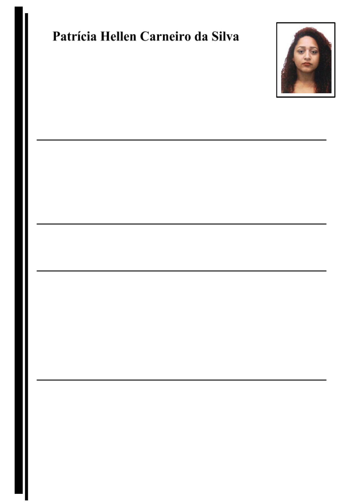Brasileira | Solteira | 20 anos Rua Josileide Alves, Nº 131 Messejana - Fortaleza (85) 9 8581.0143 Objetivo Colaborar em um ambiente de trabalho onde possa colocar em prática meus conhecimentos em favor da instituição na qual viso integrar, focando sempre o benefício e o crescimento da organização e o crescimento profissional. Formação Cursando Direito. Experiências Profissionais ➢ Livraria Juslivros Cargo: Assistente Comercial Período: 2 anos ➢ Mercantil Avenida Cargo: Atendente (Estagiária) Período: 01 ano Cursos ● Informática Básica; ● Hotelaria, Turismo e Informática.