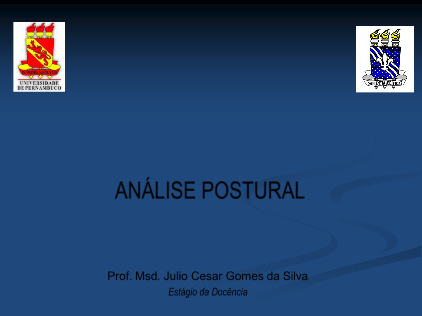 ANÁLISE POSTURAL Prof. Msd. Julio Cesar Gomes da Silva Estágio da Docência UNIVERSIDADE DE PERNAMBUCO UNIVERSIDADE FEDERAL DA PARAÍBA PROGRAMA ASSOCIADO DE PÓS-GRADUAÇÃO EM EDUCAÇÃO FÍSICA UPE/UFPB CURSO DE MESTRADO EM EDUCAÇÃO FÍSICA A postura e o Centro de Gravidade O corpo e a gravidade? Força antigravitacional – músculos – centro de gravidade Posturas inadequadas deslocam o centro de gravidade e representam sobrecarga muscular. O núcleo do centro de gravidade do equilíbrio situa-se na região do tronco. juliociesar10@hotmail.com Definição de Postura “Postura é um composto das posições das diferentes articulações do corpo num dado momento”. “Postura correta é a posição na qual um mínimo de estresse é aplicado em cada articulação” (Magee, 2002). “A postura correta consiste no alinhamento do corpo com eficiências fisiológica e biomecânicas máximas, o que minimiza os estresses e as sobrecargas sofridas ao sistema de apoio pelos efeitos da gravidade” (Palmer & Apler, 2000). juliociesar10@hotmail.com Análise da Postura Identificar e localizar os segmentos corpóreos relativos a linha de gravidade; A avaliação postural deve determinar se um segmento corporal ou articulação desvia-se de um alinhamento postural ideal. juliociesar10@hotmail.com juliociesar10@hotmail.com Postura Padrão Alinhamento esquelético ideal envolve uma quantidade mínima de esforço e sobrecarga, e conduz à eficiência máxima do corpo. Linha de gravidade: intersecção dos planos médios sagital e frontal do corpo. juliociesar10@hotmail.com INSTRUMENTOS Visual Simetrográfo Impressão plantar Fio de Prumo Escoliômetro juliociesar10@hotmail.com Vista Lateral: Alinhamento ideal Na vista lateral, a linha de referência vertical, divide o corpo em secções anterior e posterior de igual peso; Na vista lateral, o ponto de referência fixo é levemente anterior ao maléolo externo e representa o ponto básico do plano médio-coronal do corpo em alinhamento ideal. (Kendall et al., 1995) juliociesar10@hotmail.com Vista Posterior: Alinhamento ideal Na vista posterior, a linha de referência vertical, divide o corpo em secções direita e esquerda; Na vista posterior, o ponto fica a meio caminho entre os calcanhares e representa o ponto básico do plano médio sagital do corpo em alinhamento ideal. juliociesar10@hotmail.com Vista Anterior: Alinhamento ideal Na vista anterior, a linha de referência vertical, divide o corpo em secções direita e esquerda; Na vista anterior, o ponto fica a meio caminho entre os calcanhares e representa o ponto básico do plano médio sagital do corpo em alinhamento ideal. juliociesar10@hotmail.com Alinhamento Postural Articulação do tornozelo: está na posição neutra, entre a dorsiflexão e a flexão plantar. A linha de gravidade cai levemente anterior ao maléolo lateral e anterior ao eixo da articulação do tornozelo. Pés: os calcanhares estão separados cerca de 7,5 cm e a parte posterior de cada pé está abduzida cerca de 8 a 10 graus da linha mediana. Articulação do joelho: está em extensão e a linha da gravidade passa anterior à linha média do joelho e posterior à patela. juliociesar10@hotmail.com Alinhamento Postural Posição neutra da pelve: as EIAS ficam no mesmo plano horizontal, existe uma curvatura anterior normal na coluna lombar. Articulação do quadril: o quadril está em posição neutra a linha gravitacional passa através do trocânter maior e posterior ao eixo da articulação do quadril. juliociesar10@hotmail.com Alinhamento Postural Coluna vertebral: quando as curvas vertebrais estão em ótimo alinhamento, a linha de gravidade passa através da linha média do tronco. A linha de gravidade passa posterior ao eixo de rotação das vértebras cervicais e lombares, anterior às vértebras torácicas e através do corpo da quinta vértebra lombar. juliociesar10@hotmail.com Alinhamento Postural Articulação do ombro e cintura escapular: a linha de referência ideal lateral passa a meio da articulação as escápulas ficam planas contra a coluna torácica. Cabeça: a linha de gravidade da cabeça passa através do meato auditivo externo, posterior à sutura coronal e através do processo odontóide. juliociesar10@hotmail.com Avaliação Postural Abordagem organizada e sistemática; O paciente deve sentir-se à vontade e evitar rigidez e posições não-naturais; Deve ser visualizado o equilíbrio global do corpo; É importante verificar as alterações de tempos em tempos para certificar-se dos dados, se a posição não mudou, porque o paciente pode "corrigir" sua alteração momentaneamente. ÁREA DE AVALIAÇÃO, O QUE SE OBSERVAR E TÉCNICAS DE AVALIAÇÃO juliociesar123@gmail.com ÁREA DE AVALIAÇÃO, O QUE SE OBSERVAR E TÉCNICAS DE AVALIAÇÃO juliociesar123@gmail.com ÁREA DE AVALIAÇÃO, O QUE SE OBSERVAR E TÉCNICAS DE AVALIAÇÃO UPE-UFPB juliociesar123@gmail.com Avaliação Postural Pé (Análise anterior) Arco longitudinal medial Pé normal: é o tipo de pé mais comum, no qual o peso do corpo é distribuído de forma mais equilibrada. Pé Chato ou Plano: é a diminuição do arco plantar. Pé Cavo: caracterizado pelo aumento do arco longitudinal, sua origem ainda é indefinida. Avaliação Postural Pé Aduto: caracterizado pela rotação medial do tornozelo, o hálux aproxima-se da linha medial. Pé Abduto: Caracterizado pela rotação lateral do tornozelo e o hálux aproxima-se da linha lateral. Avaliação Postural Pé (Análise Posterior) Retropé (Tendão de Aquiles) Supinado ou varo: apresenta queda lateral do arco transversal e o tendão calcâneo torna-se varo. (abduto) Pronado ou valgo: apresenta queda medial do arco transversal e o tendão calcâneo torna-se valgo. (aduto) Varo Valgo Avaliação Postural juliociesar10@hotmail.com Pé Equino: estando o indivíduo em posição ortostática os calcanhares não tocam o solo. Pé Calcâneo: Estando o indivíduo em posição ortostática a 