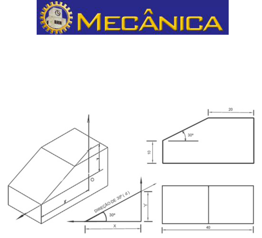 FUNDAÇÃO DE APOIO À ESCOLA TÉCNICA Centro de Ensino Técnico e Profissionalizante Quintino ESCOLA TÉCNICA ESTADUAL REPÚBLICA DEPARTAMENTO DE MECÂNICA DESENHO BÁSICO Prof. Alexandre Velloso 2 Desenho Básico ______________________________ Prof. Alexandre Velloso Índice Capítulo Pág. Introdução........................................................................................03 I - Material........................................................................................04 II – Uso do Material .........................................................................05 III – Formatos de Papel...................................................................08 IV – Caligrafia Técnica.....................................................................09 V – Legenda ...................................................................................11 VI – Tipos de Linhas .......................................................................13 VII – Geometria – Figuras Planas ...................................................15 VIII – Geometria Espacial ...............................................................17 IX – Escalas ....................................................................................20 X – Vistas Ortográficas ...................................................................22 XI – Cotagem ..................................................................................29 XII – Perspectiva Isométrica ...........................................................42 XIII –Perspectiva Cavaleira ............................................................50 XIV – Exercícios .............................................................................53 3 Desenho Básico ______________________________ Prof. Alexandre Velloso Introdução O desenho técnico é uma forma de expressão gráfica que tem por finalidade a representação de forma, dimensão e posição de objetos de acordo com as diferentes necessidades requeridas pelas diversas modalidades de engenharia e também da arquitetura. Utilizando-se de um conjunto constituído por linhas, números, símbolos e indicações escritas normalizadas internacionalmente, o desenho técnico é definido como linguagem gráfica universal da engenharia (civil, mecânica) e da arquitetura. Assim como a linguagem verbal escrita exige alfabetização, a execução e a interpretação da linguagem gráfica do desenho técnico exigem treinamento específico, porque são utilizadas figuras planas (bidimensionais) para representar formas espaciais. Conhecendo-se a metodologia utilizada para elaboração do desenho bidimensional é possível entender e conceber mentalmente a forma espacial representada na figura plana. Na prática pode-se dizer que, para interpretar um desenho técnico, é necessário enxergar o que não é visível e a capacidade de entender uma forma espacial a partir de uma figura plana é chamada visão espacial. A Padronização dos Desenhos Técnicos Para transformar o desenho técnico em uma linguagem gráfica foi necessário padronizar seus procedimentos de representação gráfica. Essa padronização é feita por meio de normas técnicas, seguidas e respeitadas internacionalmente. As normas técnicas são resultantes do esforço cooperativo dos interessados em estabelecer códigos técnicos que regulem relações entre produtores e consumidores, engenheiros, empreiteiros e clientes. Cada país elabora suas normas técnicas e estas são acatadas em todo o seu território por todos os que estão ligados, direta ou indiretamente, a este setor. No Brasil as normas são aprovadas e editadas pela Associação Brasileira deNormas Técnicas – ABNT, fundada em 1940. Para favorecer o desenvolvimento da padronização internacional e facilitar o intercâmbio de produtos e serviços entre as nações, os órgãos responsáveis pela normalização em cada país, reunidos em Londres, criaram em 1947 a Organização Internacional de Normalização (International Organization for Standardization – ISO). Quando uma norma técnica proposta por qualquer país membro é aprovada por todos os países que compõem a ISO, essa norma é organizada e editada como norma internacional. As normas técnicas que regulam o desenho técnico são normas editadas pela ABNT, registradas pelo INMETRO (Instituto Nacional de Metrologia, Normalização e Qualidade Industrial) como normas brasileiras - NBR e estão em consonância com as normas internacionais aprovadas pela ISO. 4 Desenho Básico ______________________________ Prof. Alexandre Velloso I Material • Par de esquadros em acrílico com graduação em cm; • Lapiseira 0,5 ou 0,7 – grafite tipo HB; • Borracha de vinil; • Compasso de metal; • Fita crepe; • Bloco Prancha Formato A4 ; • Lixa para apontar o compasso. 5 Desenho Básico ______________________________ Prof. Alexandre Velloso II Uso do Material II.a - Algumas Técnicas de Manuseio O grafite do compasso deverá ser apontado em forma de cunha, sendo o chanfro voltado para o lado contrário da ponta seca, conforme o ilustrado abaixo: II.b – Uso da Régua “T” A régua “T” será utilizada sempre de modo horizontal, e seu manuseio se dará com a mão que não utilizamos para desenhar, ou seja, se o indivíduo é destro, deverá movimentá-la com a mão esquerda e vice-versa. Com a régua “T” procede-se o traçado de linhas horizontais. Para o traçado de linhas inclinadas e/ou horizontais, servirá como base para os esquadros, que deslizarão apoiados sobre a mesma. Para traçados apoiados em esquadro ou régua, o grafite jamais deverá tocar suas superfícies, evitando assim indesejáveis borrões.Para conseguir isso, incline ligeiramente a lapiseira/lápis conforme a figura ao lado. 6 Desenho Básico ______________________________ Prof. Alexandre Velloso RECOMENDAÇÕES o O antebraço deve estar totalmente apoiado sobre a Prancheta. o A mão