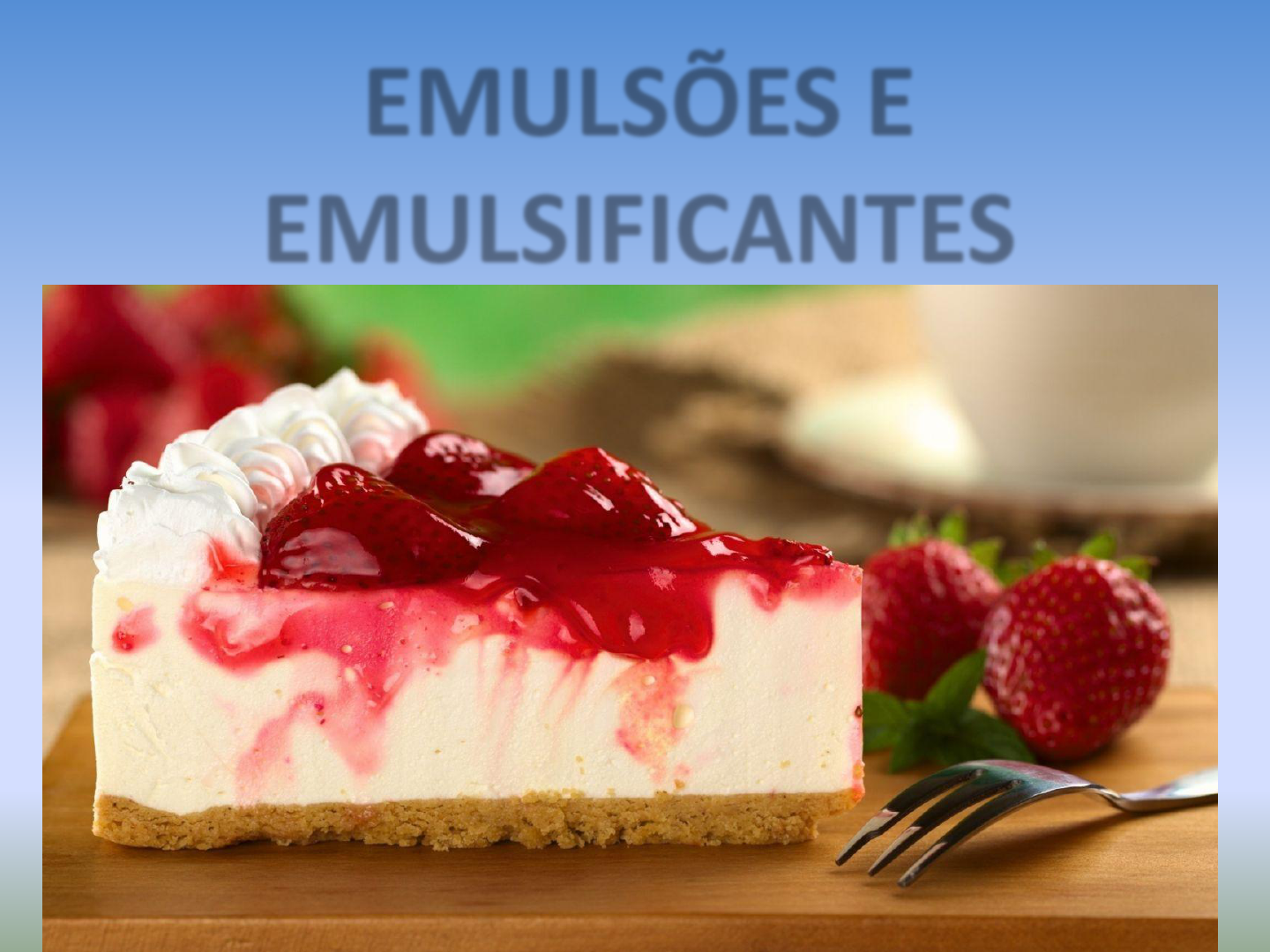 * * EMULSÕES E EMULSIFICANTES * * EMULSÃO Sistema heterogêneo de um liquido imiscível completamente difuso em outro, forma de gotículas (diâmetro superior a 0,1 micra). A formação emulsão requer energia para manter as gotículas dispersadas na fase continua = termodinamicamente desfavorável, com estabilidade mínima, que pode ser aumentada pela adição de agentes tensoativos de superfície (ARAÚJO, 1995). * * Tipos de Emulsões Alimentos Leite Manteiga * * Emulsificantes ou Surfactantes Molécula com propriedades hidrofílicas e outro segmento lipofílico Compatibilizar a mistura de água com óleos, fazendo pontes entre esses componentes, formando emulsões; “surfactantes” (do inglês surfactant), “tenso-ativos”, “hipotensores” ou “emulsificantes”. Alguns importantes agentes emulsificantes são os sabões, detergentes, goma arábica, saponinas, óleos sulfonados, lecitinas, proteínas entre outros (JAMIESON, 1932; BASF, 2004). * * Emulsificantes ou Surfactantes Moléculas ambifílicas Uma porção polar (solúvel em água) porção hidrofílica Uma porção apolar (insolúvel em água), porção lipofílica ou hidrofóbica. * * Tensão Interfacial A interface entre dois líquidos imiscíveis é um local de energia livre decorrentes de um desequilíbrio nas forças de coesão dos dois líquidos. Esta energia faz com que a interface se contraia para formar a menor área interfacial possível . Em uma emulsão a fase interna sempre tende a formar gotículas esféricas (que representa a menor área interfacial de líquido por unidade de volume). EMULSIFICAÇÃO * * Quanto maior a tensão interfacial mais difícil a formação de uma emulsão e menos estável ela será. Para que se consiga um emulsão estável é necessário reduzir a tensão interfacial entre os líquidos utilizando os chamados agentes emulsificantes. Tensão Interfacial EMULSIFICAÇÃO emulsificantes * * Figura - Esquema dos possíveis mecanismos de desestabilização da emulsão alimentícia. Fonte: ORDÓÑEZ, 2005 * * Figura - Tipos de emulsificantes de acordo com sua origem. FONTE: ARAÚJO, 1995. * * Emulsificantes iônicos Estabilizam emulsões do tipo óleo/água. Na interface, os grupos alquila interagem com as gotículas de óleo, enquanto os grupos finais carregados se projetam para a fase aquosa. O envolvimento de íons contrários forma uma camada dupla, que previne a agregação das gotículas do óleo Figura – Atividade do emulsificante iônico (emulsão O/A). Fonte: ARAÚJO, 1995. Os emulsificantes não iônicos são orientados na superfície das gotículas do óleo com a proporção polar projetada para a fase aquosa. Figura – Atividade do emulsificante não-iônico (emulsão A/O). Fonte: ARAÚJO, 1995. * * Principais tipos de emulsões em alimentos. Fonte: BOBBIO, BOBBIO, 1995 * * * * EMULSIFICAÇÃO * * Exemplo emulsificantes em alimentos industrializados Fonte: ARAÚJO, 1995 * * Expressão numérica que existe seus grupos hidrofílicos e lipofílicos Agente emulsificante pode ser selecionado para uma determinada aplicação, com base em seu balanço hidrofílico-lipofílico (BHL). EMULSIFICANTES E BHL Fig. - Relação do caráter emulsionante de acordo com o valor de BHL. Fonte: BOBBIO; BOBBIO, 1995. * * Os valores BHL podem ser determinada experimentalmente. Valores de BHL em agentes emulsificantes variam de 1-20. Valores de 3-6, promovem a formação de emulsões do tipo água em óleo (w/o), Valores de 8-18 favorecem a formação de emulsão do tipo óleo em água (o/w) . Agente Emulsificante EMULSIFICAÇÃO * * Valores de BHL de alguns emulsificantes Fonte: BOBBIO, BOBBIO, 1995 * * Biossurfactantes – Novos ingredientes Microrganismos produtores de surfactantes (biossurfactantes). Vantagens que possuem sobre os surfactantes químicos, tais como biodegradabilidade, baixa toxicidade, produção a partir de fontes renováveis, funcionalidade sob condições extremas de pH e temperatura, estabilidade, entre outros. Função: promover a estabilidade da emulsão, controlando a aglomeração de glóbulos de gordura e estabilizando sistemas aerados. * * Emulsificantes naturais Lecitina: Fosfolipídio que está presente na gema do ovo (aspecto cremoso da maionese). A maionese foi criada em 1756 pelo chef francês. Constituída por um molho feito de creme de ovos. Quando o chef percebeu que não havia mais creme na cozinha, improvisou, substituindo-o por óleo. Nascia, então, uma nova técnica culinária a 'mahonnaise‘. A maionese é uma emulsão de óleo vegetal na água do vinagre. A importância da gema de ovo na maionese se dá pelo fato da gema do ovo ser rica em lecitina. Após adição de emulsificantes e agitação forma-se uma dispersão do tipo água-óleo. A maionese apresenta uma fase interna que é composta de gotas de óleo dispersas e uma fase externa de vinagre, ovos e outros ingredientes. * * Utilização em alimentos Emulsificante em sorvetes: gomas (alginatos, a carboximetilcelulose e os carragenos) ou pectinas, gelatina (estabilizante protéico). As gomas mais utilizadas são os alginatos, a carboximetilcelulose e os carragenos. A quantidade utilizada varia de 0,2 a 0,4 % em peso do sorvete (RÉVILLION, 2002). * * Panificação: benefícios (maior facilidade de manipulação das massas até incrementos em volume e vida-de-prateleira dos produtos finais). Aeração e a manutenção da espuma, ganho de volume, incorporação de ar durante o processamento/agitação (emulsificante terá porção lipofílica para as bolhas de ar e a porção hidrofílica p/o meio contínuo que é a água). Emulsificante permitirá a estabilidade da espuma formada, maior aeração interna do produto. Por exemplo, uma mistura líquida para bolos com emulsificante terá uma aeração uniforme e com bolhas de ar de menor tamanho. Utilização em alimentos * * Exemplos de estabilizantes com função emulsificante em alimentos * * * * Como principio geral, o processo é realizado sub