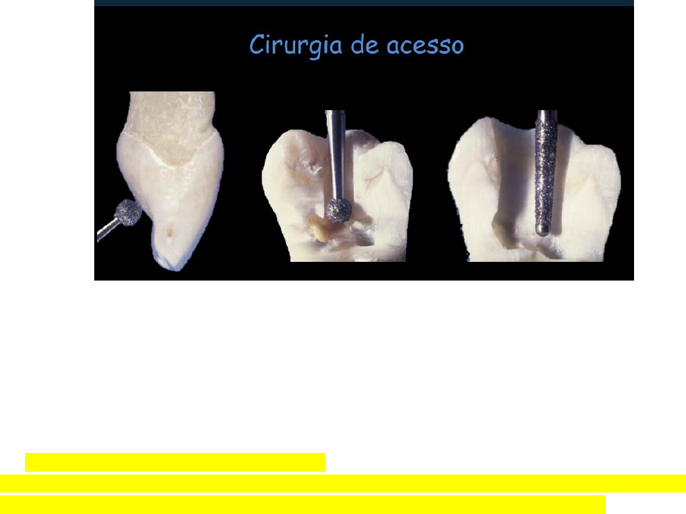 REVISÃO ENDODONTIA QUESTÃO 01 Assunto: Instrumental endodôntico e acesso à câmara pulpar A broca esférica (1012 ou 1012) e a broca 3082 (ponta inativa) são indicadas para as seguintes fases da cirurgia de acesso à câmara pulpar Ponto de eleição e forma de contorno Tanto a primeira perfuração do esmalte com a broca (ponto de eleição) tanto o desenho que é realizado com a forma da câmara pulpar (forma de contorno) é feito com a broca esférica Forma de contorno e forma de conveniência O desenho da câmara pulpar na dentina (forma de contorno) é feito com a broca esférica e a expulsividade das paredes (forma de conveniência) é feita com a broca 3082 ou endo Z (ponta embotada ou inativa) Forma de conveniência e expulsividade das paredes A forma de conveniência é a expulsividade das paredes Direção de trepanação e forma de contorno Tanto a direção de trepanação (inclinação da broca durante o acesso procurando a parte mais volumosa da câmara pulpar) quanto a forma de contorno (desenho) são feitas com a broca esférica Ponto de eleição e ponto de contato O ponto de contato é a forma da coroa que faz contato com o dente adjacente, não está relacionado com a cirurgia de acesso à câmara pulpar. QUESTÃO 2 Assunto: Anatomia Interna Pulpar O sistema de canais representa, além do canal principal, todos os canalículos que existem onde o instrumental endodôntico não tem acesso. A saída do canal principal e dos canalículos na superfície radicular se chamam, respectivamente: Forame principal e foraminas Canal colateral e cavo interradicular Delta apical e forame lateral Canal recorrente e corno pulpar Interconduto e acessório CANAL PRINCIPAL - é o canal calibroso onde é possível colocar o instrumento endodôntico. Podem existir um ou mais canais principais em uma mesma raiz CANAL COLATERAL - é um canal que passa paralelo ao canal principal e se abre em uma foramina vizinha ao forame principal CANAL LATERAL - é um canal que sai do canal principal e vai para o periodonto no meio da raiz CANAL SECUNDÁRIO - sai do canal principal e se abre ao lado do forame principal em uma foramina CANAL ACESSÓRIO - um canalículo que sai do canal secundário e se abre em uma foramina apical CANAL INTERCONDUTO - liga o canal principal a um colateral CANAL RECORRENTE - Canalículo que sai do canal principal e retorna a ele, sem se abrir ao ligamento periodontal DELTA APICAL - quando o canal principal se divide na região apical em vários canalículos que se abrem em várias foraminas CANAL INTER RADICULAR - canal que sai da câmara pulpar e vai para o periodonto na região da furca, mas não é possível colocar instrumento endodôntico QUESTÃO 3 Vale ressaltar que tal direção sempre é guiada para a região mais volumosa da polpa. Tal procedimento deverá ser realizado com brocas esféricas de pescoço longo, porém, esta deverá ser ter diâmetro compatível com a câmara pulpar do dente em questão sempre em alta rotação e refrigeração. Assunto: Instrumental endodôntico e acesso à câmara pulpar Essa descrição acima se refere a: Ponto de eleição - Primeira perfuração do dente com a broca, na região central do dente Forma de contorno Desenho da forma da câmara pulpar feita pela broca esférica na dentina Direção de trepanação - descrita pelo enunciado da questão Forma de conveniência Impulsividades das paredes feita com broca de ponta romba Toalete da cavidade Limpeza da cavidade feita na dentística, não realizado na endodontia QUESTÃO 4 As limas tipo K se apresentam com diversas numerações, e cada numeração representa o calibre de cada instrumento. Os diversos calibres devem ser escolhidos de acordo com o calibre do canal a ser tratado. Observe a imagem a seguir: Assunto: instrumental endodôntico Marque a resposta certa: A variação dos calibres do instrumento é de 0,05 A variação dos calibres dos instrumentos da segunda série (45 a 80) é de 0,05 A variação dos calibres dos instrumentos da terceira série (90 a 140) é de 0,05 Os instrumentos da série especial são menos calibrosos Os instrumentos da terceira série são menos calibrosos o calibre dos instrumentos variam de 0,0 a 0,10 (na ponta do instrumento ou D0 )para a série especial, com o aumento de 0,02 entre eles - instrumentos número 06, 08 e 10l; de 0,15 a 0,40 na primeira série com o aumento de 0,05 entre eles - instrumentos números 15, 20, 25, 30, 35 e 40; de 0,90 a 1,40 para a TERCEIRA série, com aumento de 0,1 entre eles - instrumentos de número 90, 100, 110, 120, 130 e 140; na SEGUNDA série, a variação do aumento é mista, sendo de 0,05 para os instrumentos 45, 50 e 55 de 0,1 para os instrumentos 60, 70 e 80. Como esse aumento do calibre é gradativo, os primeiros instrumentos que são da série especial são os instrumentos menos calibrosos. QUESTÃO 5 Algumas raízes podem apresentar um achatamento no sentido mésio distal. Esse achatamento pode levar a presença de dois canais em uma mesma raiz, desembocando no ápice radicular com um ou dois forames em cada raiz. Apresentam achatamento acentuado as raízes: Raiz palatina dos molares superiores Raiz palatina do incisivo lateral superior Dentes incisivos centrais inferiores Raiz Distal dos molares inferiores Caninos superiores A maioria dos dentes apresentam achatamento das raízes, menos, com raríssimas exceções os incisivos centrais e caninos superiores, raízes palatinas de molares superiores e raízes distais de molares inferiores. Alem disso, a ponta da Raiz (terço apical) pode apresentar uma curvatura principalmente para distal e palatina. as raízes que apresentam maior possibilidade de curvatura apical são os incisivos laterais superiores, raízes mesio vestibulares e palatinas dos molares superiores e raízes distais dos molares inferiores. Essa inclinação do ápice das raízes está relacionada com a inervação do Alveolar Superior e inferior, que vem da região distal e lingual 