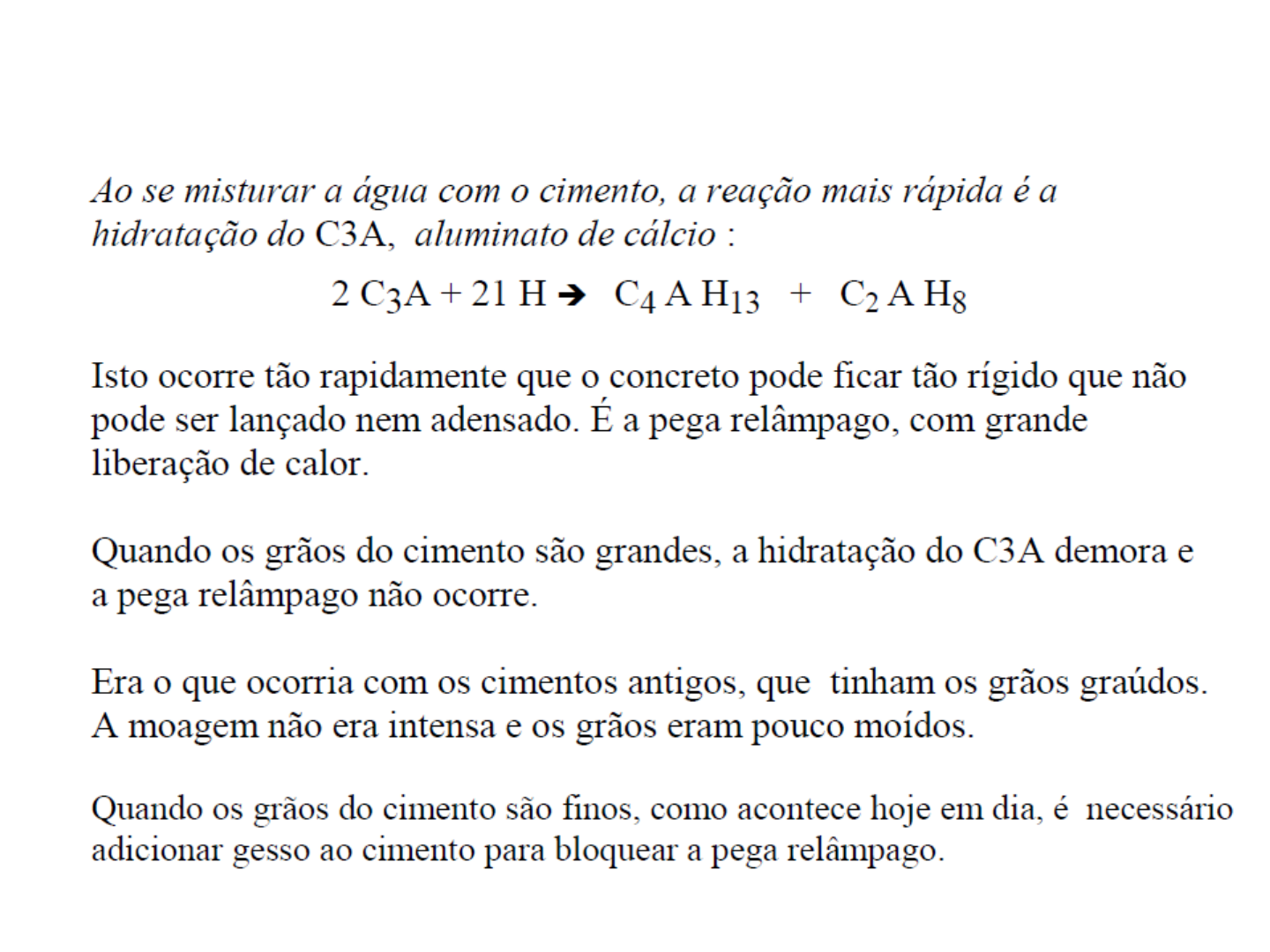 O que é calor de hidratação do cimento Portland. Questão 5Escolha uma opção: a. Ensaio para caracterização da finura do cimento b. Finura do cim...