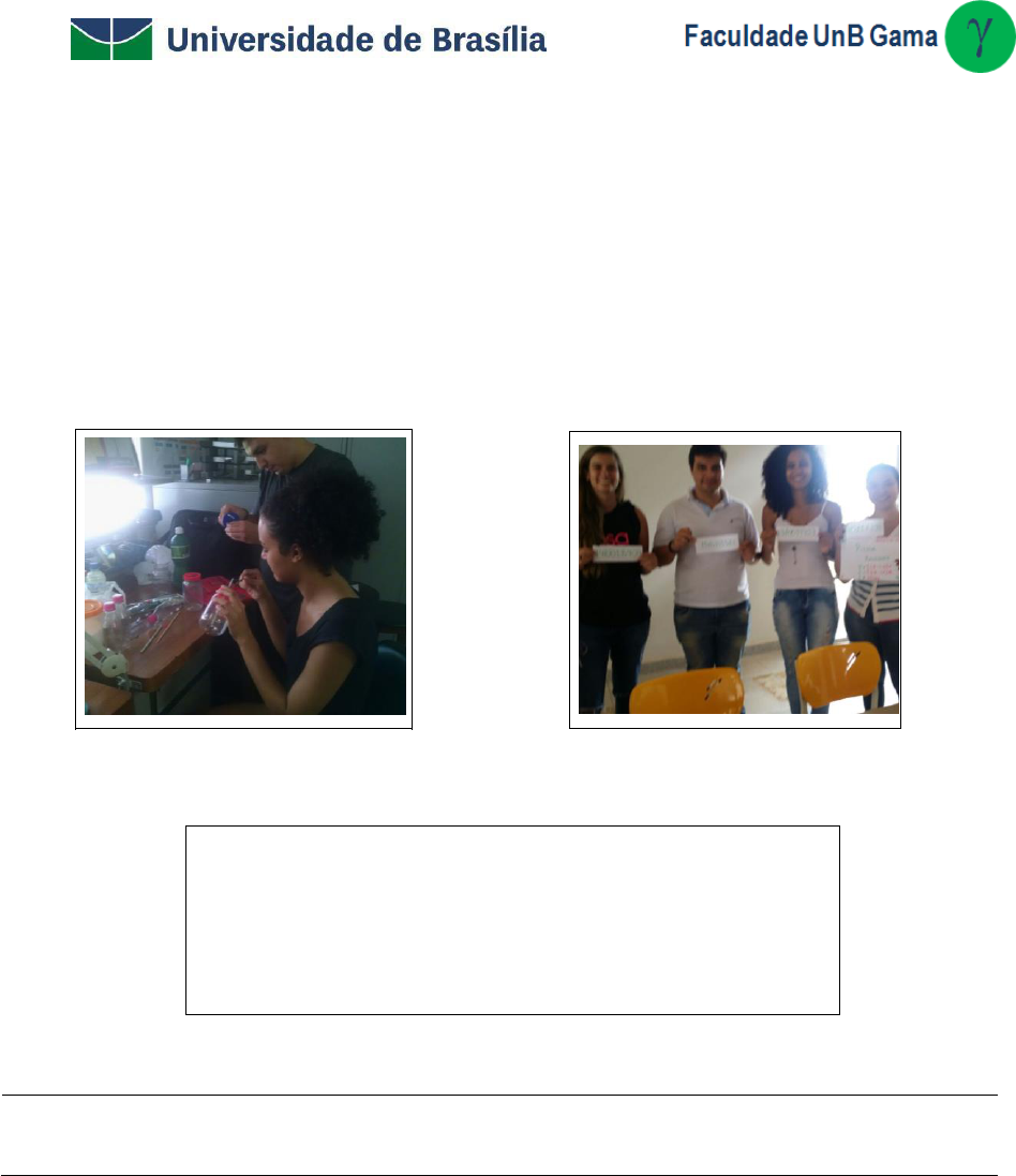 Laboratório da Teoria Eletromagnética EXPERIMENTO Nº 1 PILHAS ELETROQUÍMICAS Talyta Viana Cabral - 13/0037753 1 INTRODUÇÃO 1.1. Justificativa do Problema Pilhas ou célula voltaicas são dispositivos que transformam energia química em energia elétrica por meio de um sistema apropriado e montado para aproveitar o fluxo de elétrons provenientes de uma reação química de oxirredução. A pilha de Daniell é um exemplo deste sistema. É formado por uma placa de zinco mergulhada em uma solução de sulfato de zinco, e uma placa de cobre imersa em uma solução de sulfato de cobre. As duas placas (eletrodos) são conectadas por um fio metálico, que permite a passagem de elétrons de um eletrodo ao outro. As duas soluções são interligadas por uma ponte salina, um tubo de vidro recurvado que contém uma solução de um sal (sulfato de sódio, neste caso) e possui pedaços umedecidos de algodão nas extremidades. A ponte salina permite que haja o fluxo de íons de uma solução à outra. Tarefas realizadas pela cientista: 1. Pesquisa teórica; 2. Montagem da pilha; 3. Apresentação. As placas metálicas descritas são os eletrodos, ânodo e cátodo, locais onde ocorrerão as reações de oxidação e redução, respectivamente. Somando-se as reações de oxidação e de redução, denominadas semirreações, obtemos a reação global da pilha, que é a reação de oxirredução que dá origem a corrente elétrica. Adicionalmente, as soluções constituem-se meios para reagentes e produtos das reações. Imagem 1: Esquema da Pilha de Daniell. As semirreações da pilha podem ser identificadas na tabela de potenciais-padrão de redução. Como o cobre, vide tabela, possui maior tendência a reduzir (maior EoRed), o cobre será o elemento que sofrerá redução, no cátodo. No ânodo acontecerá a reação de oxidação do Zn. Cátodo (+): Cu2+(aq) + 2e− → Cu0(s) (eletrodo de Cu) Ânodo (-): Zn0(s)→ Zn2+(aq) + 2e− (eletrodo de Zn) 1.1.1. Funcionamento Ao longo da reação, os íons Cu2+ se depositam na superfície da placa de Cu (eletrodeposição) de acordo com a reação de redução do cobre e átomos de Zn saem da placa de Zn (corrosão) para a solução na forma de íons Zn2+. Desta forma, a solução de zinco se torna cada vez mais concentrada em íons Zn2+ e a solução de Cu se torna mais diluída de íons Cu2+(e mais concentrada de íons SO2−4). Assim, para manter a eletroneutralidade do sistema, íons SO2−4 e Na+ difundem-se pela ponte salina para as soluções com cargas opostas às suas. Adicionalmente, os elétrons saem do ânodo em direção ao cátodo. 1.1.2. Reação global Para obter a reação global, devem-se somar as semirreações. Porém, é necessário, antes, igualar o número de elétrons para que eles não apareçam na equação final. No caso em estudo, o número de elétrons já é igual, portanto, devemos apenas somá-las. Cu2+(aq)+/2e−→ Cu0(s) (semirreações) + Zn0(s) → Zn2+(aq)+/2e− ___________________________________________ Zn0(s)+Cu2+(aq)→ Cu0(s)+Zn2+(aq) (reação global) 1.1.3. Cálculo da força eletromotriz A força eletromotriz da pilha é calculada somando-se o potencial padrão de oxidação da semirreação de oxidação com o potencial padrão de redução da semirreação de redução. FEM = EoRed + E O Oxi = +0,34+(+0,76) = 1,1V 1.1.4. Representação de uma pilha De acordo com a IUPAC (União Internacional de Química Pura e Aplicada), a pilha deve ser representada da forma indicada abaixo: Zn(s)/Zn2+(aq)//Cu2+(aq)/Cu(s) Onde “//” representa a ponte salina que divide os eletrodos, “/” indica diferença de fase entre reagente e produto da semirreação. Na esquerda, representa-se o ânodo (oxidação) e, na direita, o cátodo (redução). 1.2. Objetivos Estudar e entender a eletroquímica como resultado da tendência das substâncias em receber ou doar elétrons, formando íons e culminando na criação de corrente e outros fenômenos elétricos. 2 PROCEDIMENTOS EXPERIMENTAIS 2.1. Materiais • 2 placas de cobre; • 2 placas de Alumínio; • 300 ml de Água sanitaria; • 600 ml de Água; • 350g de sal refinado; • Fogão elétrico (1 boca); • 2 recipientes de vidro; • Fita adesiva; • Fios; • 1 protoboard; • 5 Led’s; • 1 motorzinho; • 1 multímetro. 2.2. Procedimento Para a realização do experimento, primeiramente foram organizados na bancada os recipientes de vidro que serviram de base para a pilha, logo após foi feita a mistura de 300ml de água e 150ml da água sanitaria, que foram aquecidas ate aproxidamente 70 ºC utilizando o forno elétrico. O procedimento foi repetido duas vezes, pois foram montadas 2 células. Enquanto a mistura estava sendo aquecida, foi feita a montagem utilizando as placas de alumínio e cobre que foram posicionadas dentro dos recipientes de vidro, uma de cada lado, presas com fita adesiva para que não se encostassem. Os fios foram posicionados em série ligando as duas células e fios para conectar na placa.Na protoboard, foi montado um circuito simples com os Led’s e o motorzinho ligados a pilha. Após o esquema já montado, foi adicionada a mistura já aquecida dentro dos recipientes enquanto ia se adicionando sal aos poucos e observando com o multímetro a respectiva tensão e corrente, além do funcionamento dos Led’s e do motorzinho. 3 RESULTADOS Após o procedimento realizado, foi possível observar a montagem da pilha juntamente com os Led’s e motorzinho funcionando perfeitamente, como na imagem a seguir: Imagem 2: Pilha montada pelo grupo. O circuito alimentado pela pilha produzida, funcionou, sem falhas, em torno de quinze minutos. Os resultados encontrados de tensão e corrente, utilizando o multímetro, foram: Tensão (V) Corrente (A) 1.6 1.1 4 ANÁLISE DOS RESULTADOS No experimento realizado da pilha de Daniell, foi possível observar a transferência de elétrons do eletrodo de alumínio, que é o ânodo (terminal negativo), para o elet