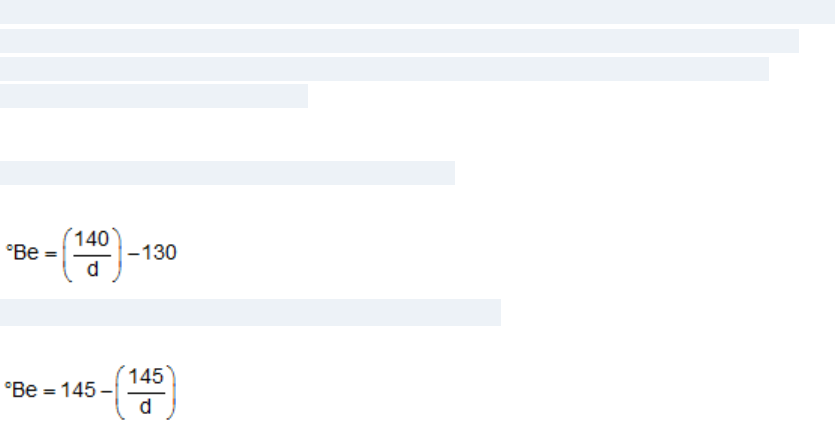 A escala Graus de Baumé foi criada pelo farmacêutico francês Antoine Baumé para medição de densidade de líquidos. Ele usou água pura e soluções de cloreto de sódio para definir os pontos da escala e a relação entre grau Baumé (ºBé) e densidade (d), assim definida: (a) para soluções menos densas que a água: (b) para soluções mais densas que a água: