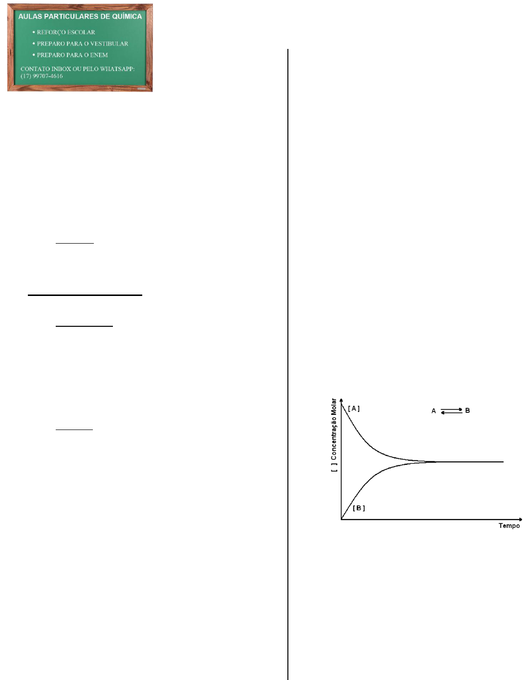 AULA 08 – EQUILÍBRIO QUÍMICO 3. Lei do equilíbrio químico EXPRESSÃO DA LEI DA AÇÃO DAS MASSAS Considere uma reação hipotética em fase gasosa: A(g) + B(g) C(g) + D(g) k = Em termos de pressão: k = Para a equação: E(g) + F(g) 2 G(g) k = 1. Escreva as expressões de Kc e Kp para os equilíbrios abaixo, respectivamente: I) N2(g) + 3H2(g) 2NH3(g) II) 2NO2(g) 2NO(g) + O2(g) III) 2NaHCO3(s) Na2CO3(s) + CO2(g) + H2O(g) A questão de número 2 refere-se ao seguinte sistema em equilíbrio químico a determinada temperatura T: 4 Fe(s) + 3 O2(g) ⇄ 2 Fe2O3(s) + 400 kcal 2. (UNICID) A expressão da constante Kc desse equilíbrio é dada por a) 3 [O2]. b) 1/[O2]3. c) 2 [Fe2O3] / 4 [Fe]. d) [Fe2O3]2 / [Fe]4. e) [Fe]4 [O2]3 / [Fe2O3]2. 3. (UNIRG TO) A figura a seguir descreve uma reação hipotética em equilíbrio químico. Sobre este processo reacional pode-se afirmar que: a) o composto A no ponto de equilíbrio foi totalmente consumido. b) o composto B no ponto de equilíbrio foi totalmente consumido. c) o composto B forma-se a partir do ponto de equilíbrio d) no ponto de equilíbrio não há alterações das concentrações do reagente ou produto. 4 (FAC. DE CIÊNCIAS DA SAÚDE DE BARRETOS) Uma das etapas de obtenção do enxofre pelo processo conhecido como “processo Claus” envolve o equilíbrio químico representado pela equação: 2 H2S (g) + SO2 (g) 3 S (l) + 2H2O (l) A expressão da constante Kc desse equilíbrio é dada por: a) [H2O].[S]3 b) c) d) [H2S]2[H2O]2 e) 5. (UFRGS RS) Abaixo estão mostradas duas reações em fase gasosa, com suas respectivas constantes de equilíbrio. CO (g) + H2O (g) CO2 (g) + H2 (g) K = 0,23 CH4 (g) + H2O (g) CO (g) + 3 H2 (g) K = 0,20 Pode-se concluir que, nessas mesmas condições, a constante de equilíbrio para a reação CH4 (g) + 2H2O (g) CO2 (g) + 4 H2 (g) é de: a) 0,030. b) 0,046. c) 0,230. d) 0,430. e) 1,150. 6. Uma mistura contendo inicialmente 0,070 mol/L de HCℓ (g) e 0,035 mol/L de O2(g), reage, atingindo o equilíbrio a 480ºC, de acordo com a equação. 4HCℓ (g) + O2(g) ⇄ 2Cℓ2(g) + 2H2O(g) No equilíbrio, a concentração de Cℓ2(g) é 0,030 mol/L. Qual o valor da constante de equilíbrio em termos de concentração em mol/L (Kc)? 4HCℓ(g) + O2(g) ⇄ 2Cℓ2(g) + 2H2O(g) INÍCIO R E F EQUILÍBRIO Leia o texto para responder a questão de número 7. O monóxido de nitrogênio, óxido nítrico, pode ser formado na atmosfera em decorrência de descarga elétrica, por fenômenos naturais, a partir da reação do gás nitrogênio e oxigênio. Por efeito antropogênico, a quantidade desse poluente vem aumentando nas últimas décadas, principalmente devido ao aumento da produção industrial e na queima de combustíveis fósseis. A reação descrita representa um sistema em equilíbrio: N2(g) + O2(g) ⇄ 2NO(g) ΔHo = + 180 kJ 7. (UNICASTELO) O sistema em equilíbrio foi submetido, separadamente, às seguintes etapas: I. aumento da temperatura; II. aumento da pressão; III. adição de gás oxigênio. Dentre as etapas acima, a formação do óxido nítrico é favorecida por a) I, II e III. b) II e III, apenas. c) I e III, apenas. d) I e II, apenas. e) III, apenas. 1 – 2 – B 3 – D 4 – C 5 – B 6 – 7 – C