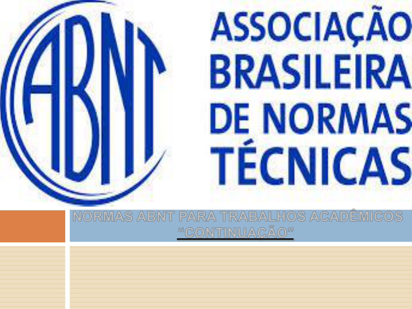 Prof. Ms. MÁXIMO ALESSANDRO MENDES OTTONI NORMAS ABNT PARA TRABALHOS ACADÊMICOS “CONTINUAÇÃO” Papel e fonte: Recomendada fonte 12 para o texto, incluindo títulos de capítulos e seções (em negrito), com utilização do tipo de letra Arial ou Time New Roman. Fonte 10 para citações de mais de três linhas (citação direta longa), notas de rodapé, paginação e legendas das ilustrações e das tabelas. Citação direta de mais de três linhas, observar o recuo de 4 cm da margem esquerda. Margem: esquerda e superior = 3cm. Direita e inferior = 2cm (figura ao lado). Espaçamento e parágrafo: Espaço 1,5 entre linhas para o texto; Títulos dos capítulos e seções alinhados à esquerda, separados por um espaço. Parágrafo: primeira linha a 1,25 cm da margem. TÍTULOS A QUÍMICA NO COTIDIANO (Fonte: arial black) 1 A QUÍMICA NO DIA A DIA 1.1 O QUE É QUÍMICA 1.1.1 Fundamentos da química 1.1.1.1 Para quê estudar química 1.1.1.1.1 Conhecimentos em química 2 A QUÍMICA NA ESCOLA 2.1 A ESCOLA DA QUÍMICA 2.2.1 Química em sala 2.2.1.1 Química no recreio 2.2.1.1.1 Conhecimentos em sala PAGINAÇÃO Todas as folhas do trabalho, a partir da folha de rosto, devem ser contadas sequencialmente, mas não numeradas. A numeração das páginas deve aparecer a partir da primeira página do Texto (introdução), em algarismos arábicos, no canto superior direito da folha, a 2 cm da borda superior, ficando o último algarismo a 2 cm da borda direita da folha. Havendo apêndice e anexo, as suas folhas devem ser numeradas de maneira contínua e sua paginação deve dar segmento à do texto principal. Cada capítulo deve ser iniciado em uma nova página. CITAÇÕES Citação: menção de uma informação extraída de outra fonte. A citação pode ser indicada no texto por um sistema numérico ou por autor-data (é a opção do Prisma). Citação indireta: texto baseado na obra do autor consultado. Ex.: Camarano (2004) argumenta que, devido às melhores condições de vida e de saúde, ao auxílio por intermédio da medicina avançada, bem como a ampliação da Seguridade Social, ser idoso, atualmente, é bem diferente de ser idoso há poucas décadas, pois doenças como as cardiovasculares aparecem mais tardiamente, bem como as dificuldades auditivas e as de locomoção. Diante disso, percebe-se que o idoso tem participado mais ativamente do mercado de trabalho, sentindo-se cada vez mais útil à sociedade. Obs.: Algumas revistas pedem também nº de página na citação indireta. CITAÇÕES Citação de citação: citação direta ou indireta de um texto, sendo que não se teve acesso ao original. Coloca-se a palavra latina, em sem nenhum destaque apud = citado por, conforme. Obs.: não se deve fazer muitas citações usando apud, pois essa palavra é utilizada para obras originais de difícil acesso, como: publicações antigas, obras raras ou textos em línguas dificilmente acessíveis. et al = outros. Citação curta: de até 03 linhas. É feita no próprio texto e entre aspas. Ex.: Segundo Ferreira (1987, p. 37), inconfidência é uma “falta de fidelidade para com alguém, particularmente para com o soberano ou Estado.” MACETE: Sobrenome fora do parêntese, coloca-se a 1ª letra maiúscula e o restante minúsculo. Sobrenome dentro do parêntese, coloca-se tudo maiúsculo. Ex.: Ottoni (2012). (OTTONI, 2012). CITAÇÕES Citação direta: transcrição textual de parte da obra de um autor consultado. Citação longa: parágrafo independente do texto, com recuo de 4 cm, sem aspas, fonte 10 e espaçamento simples. Para preencher a função de integração social do ordenamento jurídico e a pretensão de legitimidade do direito, os tribunais devem satisfazer simultaneamente duas condições – tomar decisões consistentes e assegurar a aceitabilidade racional de suas decisões. (HABERMAS, 1996, p. 198). Todas as obras citadas no texto devem conter sua referência correspondente na listagem bibliográfica no final do trabalho. Quando o autor da citação estiver inserido no texto, este deverá ser grafado em letras minúsculas e, quando estiver entre parênteses, em letras maiúsculas. 4 cm As alíneas devem ser alinhadas à esquerda e digitadas em espaço 1,5. Devem ser precedidas por dois pontos (:) e cada uma das subdivisões são designadas por letras: a), b), c) etc. e devem começar com letra minúscula e terminar em ponto e vírgula, exceto a última que termina com ponto. Para as subdivisões dentro das alíneas deve-se utilizar símbolos. Recomenda-se utilizar sempre os mesmos símbolos em todo o texto. ILUSTRAÇÕES Compreendem os desenhos, esquemas, fluxogramas, fotografias, gráficos, mapas, organogramas, plantas e outros. Devem ser inseridos próximo do texto a que se referem. Cada tipo de ilustração deve ter numeração sequencial em todo o texto e não por capítulo. Ex.: (Tabela 1, Tabela 2, Tabela 3 etc; Gráfico 1, Gráfico 2, etc.). As legendas devem aparecer na parte inferior das ilustrações, seguida de seu número em algarismos arábicos, título e fonte, digitados em fonte tamanho 10. Em todas as ilustrações deve-se informar a fonte consultada. As ilustrações devem estar centralizadas, dentro das margens. Caso não seja possível, pode-se: utilizar letras tamanho menor; imprimir a ilustração no sentido vertical; Imprimir em folha A3 ou superior e dobrá-la até atingir o tamanho da folha A4. TABELAS As tabelas caracterizam-se por apresentar dados numéricos e estatísticos. A (FUNDAÇÃO INSTITUTO BRASILEIRO DE GEOGRAFIA E ESTATÍSTICA, 1993) que prevê: a) a localização da tabela deve ser o próximo ao texto a que se refere; b) o título deve aparecer na parte superior, seguido de seu número em algarismos arábicos; c) fontes e notas devem ser colocadas na parte inferior da tabela, digitadas em tamanho 10; d) devem possuir traços horizontais separando o cabeçalho, sem linhas de separação de dados; e) podem possuir traços verticais separando as co