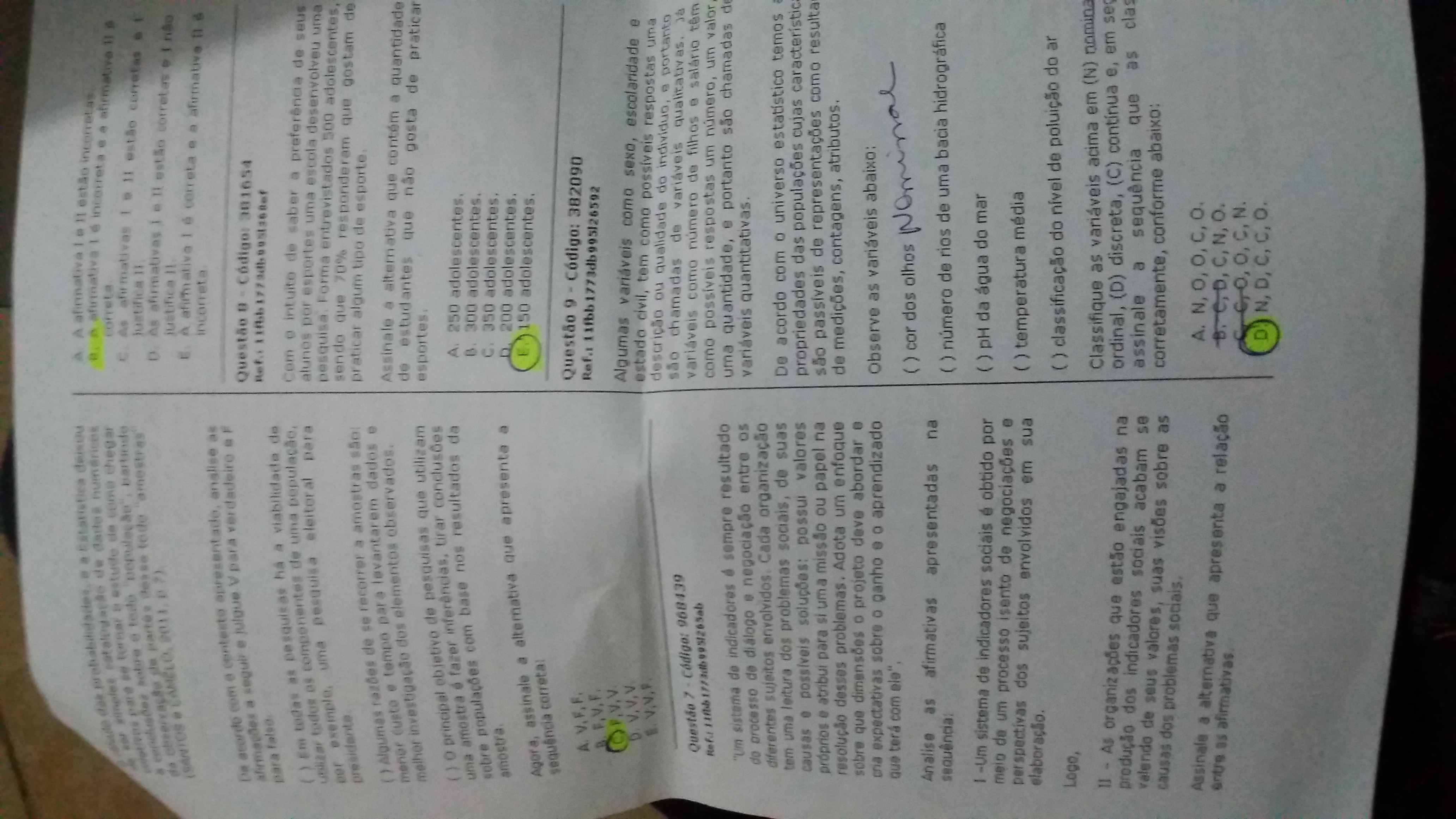 PROVA PRESENCIAL - 1 CHAMADA - ESTATÍSTICA E INDICADORES SOCIAIS