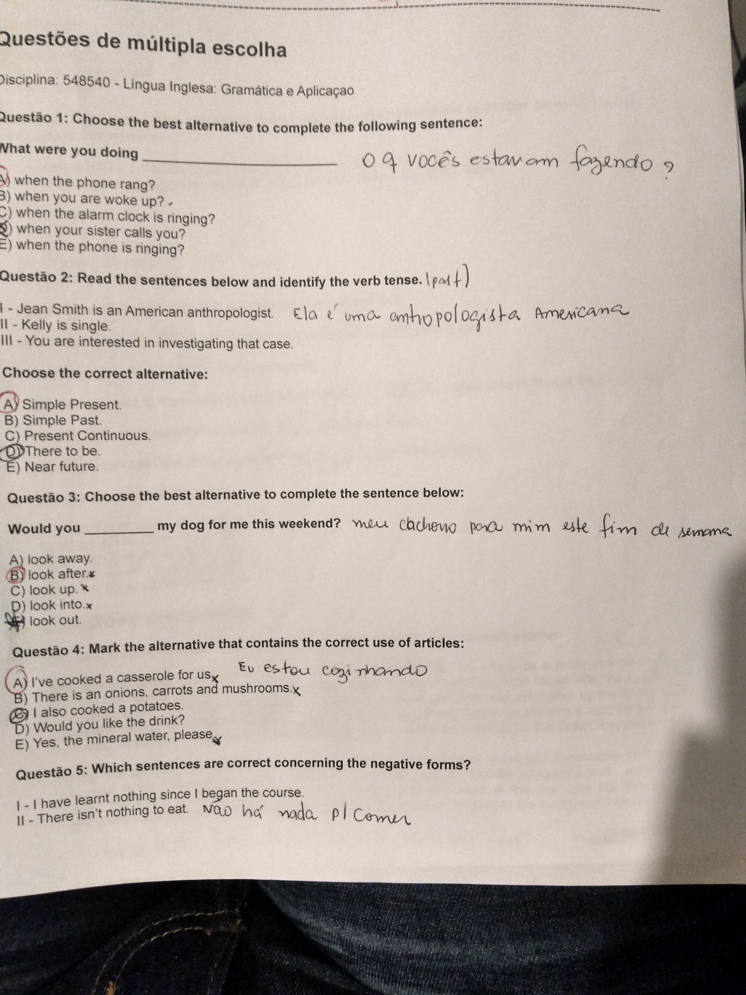 Prova Lingua Inglesa gramatica e aplicação
