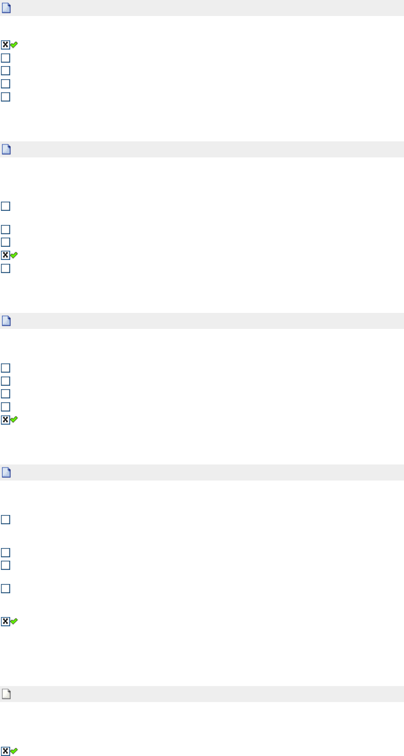 1a Questão (Ref.:201605028080) Pontos: 0,1 / 0,1 Fazem parte dos fatores propiciados ou potencializados pelos Sistemas de Informação, exceto: Relacionamento menos estreito com clientes e fornecedores. Excelência Operacional. Novos Produtos, Serviços e Modelos de Negócio. Melhor tomada de decisões. Vantagem competitiva 2a Questão (Ref.:201605028167) Pontos: 0,1 / 0,1 Os sistemas de informação dependem de recursos que coletam, transformam e disseminam informações em uma organização. Entre os componentes de um sistema de informação estão os recursos de software, que é constituído pelo banco de dados e base de conhecimento (experiência anterior da empresa) são compostos pelos meios de comunicação e suportes e redes são compostos por máquinas, equipamentos e mídia. são os programas e procedimentos. representam os usuários finais e especialistas em sistema de informação. 3a Questão (Ref.:201605028239) Pontos: 0,1 / 0,1 Marque a opção que indique o tipo de Comercio Eletrônico em que uma unidade governamental oferece seus serviços. C2C B2C m-commerce B2B G2C 4a Questão (Ref.:201605028207) Pontos: 0,1 / 0,1 Os sistemas de informação podem ser utilizados para obtenção de vantagem competitiva. A esse respeito, analise as afirmativas abaixo e assinale a resposta correta. A possibilidade de adequação de produtos às necessidades do consumidor, como no caso da Dell Computer, que vende seus produtos pela internet na configuração escolhida pelo cliente, é um exemplo de "Liderança em Custos". Nenhuma afirmativa acima está correta. Manter as prateleiras de um supermercado sempre abastecidas, usando um sistema moderno de controle de estoques é um exemplo de Foco em um nicho de mercado. O uso de sistemas de informação para estreitar laços por meio de envio de mensagens de aniversário ou reconhecimento dos mesmos ao retornarem a um site, são exemplos de "Diferenciação de produtos". Ao usar sistemas de informação para estreitar laços com clientes e fornecedores, seja por meio de envio de mensagens ou reconhecimento dos mesmos ao retornarem a um site, são exemplos de "Intimidade com o cliente". 5a Questão (Ref.:201605027612) Pontos: 0,1 / 0,1 É o sistema de informações desenvolvido para atender às necessidades do nível estratégico da corporação. ______________________ auxilia a direção da corporação a tomar decisões em um ambiente de rápidas mudanças que podem ocorrer, geralmente, ao longo de um único dia. O sistema de apoio à decisão O sistema de informações manuais O sistema de informações transacionais O sistema de telecomunicações O sistema de informações gerenciais
