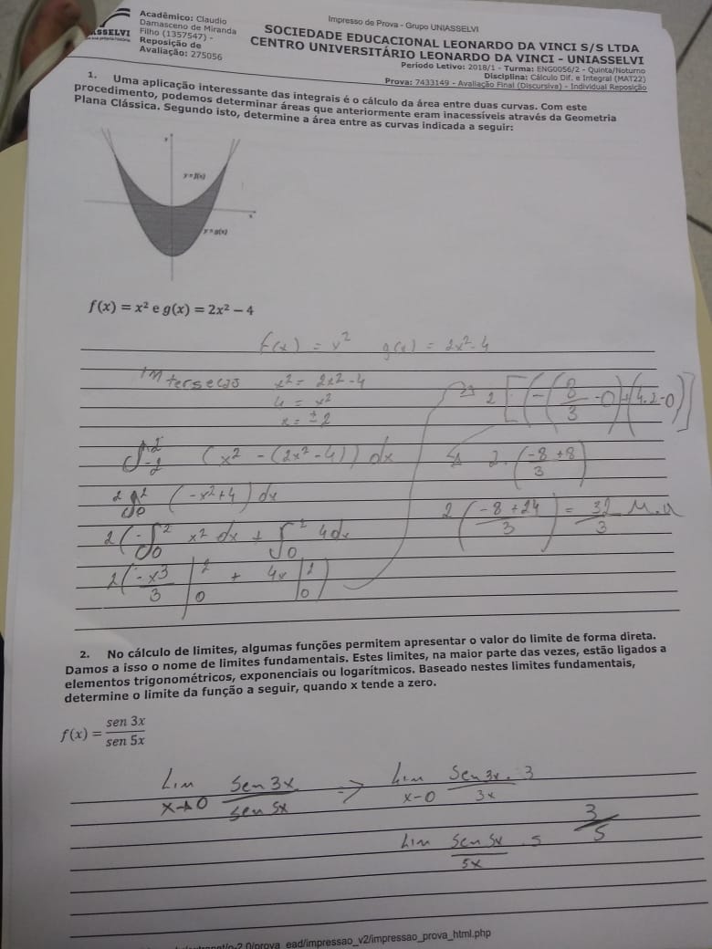avaliação 3 de calculo diferencial e integral
