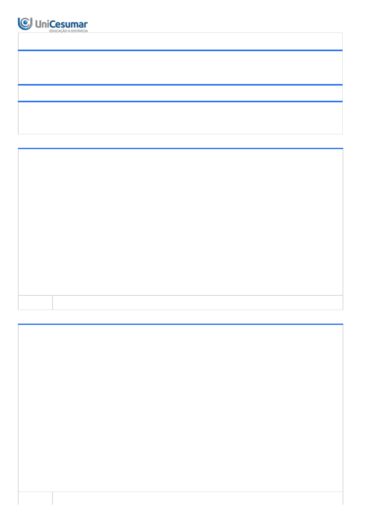 07/07/2018 Unicesumar - Ensino a Distância 1/4 Protocolo de Finalização Nº 000001278776 O aluno SOLANGE BATISTA DE SOUZA com RA 1634728-5 finalizou a a�vidade ATIVIDADE DE ESTUDO 2 - PED - DIDÁTICA - 2016C1 em 16/08/2016 22:20:04 ATIVIDADE DE ESTUDO 2 - PED - DIDÁTICA - 2016C1 Período:11/08/2016 22:30 a 18/08/2016 23:59 (Horário de Brasília) Data Final:19/08/2016 23:59 valendo 50% data nota! Status:ENCERRADO Nota máxima:0,50 Nota ob�da: 0,50 1ª QUESTÃO O ato de planejar uma aula é visto por Gadotti (2006) como "uma atividade consciente de previsão das ações docentes, fundamentadas em opções político-pedagógicas, e tendo como referência permanente as situações didáticas concretas, ou seja, os problemas sociais" (GADOTTI, 2006, p. 143). Neste prisma, Libâneo (2008) compreende que o planejamento assume um conjunto de funções. São elas: I - Assegura a racionalização, organização e coordenação do trabalho docente, de modo que a previsão das ações docentes possibilite ao professor a realização de ensino de qualidade. II - Atualiza os conteúdos do plano sempre que é revisto, adequando-o às condições de aprendizagem dos alunos, os métodos, técnicas e recursos de ensino. III - Facilita a vida do professor, visto que o ato de planejar possibilita uma economia do tempo hábil de aprendizagem, pois um planejamento bem organizado pode ser utilizado sem restrições em diversos anos diferentes. IV - Facilita a preparação das aulas, selecionando o material didático em tempo hábil. É importante deixar claro que tarefas professores e alunos devem executar. Está correto apenas o que se afirma em: RESPOSTA: I, II e IV. 2ª QUESTÃO … cada aula é uma situação didática específica, na qual objetivos e conteúdos se combinam com métodos e formas didáticas, visando fundamentalmente propiciar a assimilação ativa de conhecimentos e habilidades pelos alunos (LIBÂNEO, 2008, p.178). A citação acima destaca a concepção de aula na visão de Libâneo (2008), que deve ser entendida como uma ação conjunta entre alunos e professores em busca do objetivo principal que é a aprendizagem. Para alcançar esse objetivo, o autor afirma que as aulas devem cumprir algumas exigências, como: I – Reproduzir os conhecimentos de acordo com os livros e as apostilas. II - Selecionar e organizar atividades que desenvolvam nos alunos a autonomia de pensamento, criatividade e gosto pelo estudo. III - Desenvolvimento das possibilidades de aproveitamento escolar de todos os alunos, diferenciando e individualizando o ensino. IV – Apresentar aulas teóricas e de forma expositiva. Assinale a alternativa correta. RESPOSTA:Somente as afirma�vas II e III estão corretas. 07/07/2018 Unicesumar - Ensino a Distância 2/4 3ª QUESTÃO Sabemos que o aluno, ao ingressar na escola e ao longo de sua vida, agrega conhecimentos e aprendizagens construídas em suas relações sociais. A capacidade do professor em contextualizar os conteúdos a serem trabalhados em sala de aula com os saberes oriundos do cotidiano de vida dos alunos se torna fundamental . Com uma prática pedagógica contextualizadora o professor permitirá a ampliação dos conhecimentos científicos, desenvolvendo novas competências em seus alunos, para uma participação mais qualificada na sociedade. Por isso, é importante que ao planejar suas aulas os docentes sigam uma estrutura didática eficiente. Leia as assertivas e identifique quais correspondem ao caminho apontado por Libâneo (2008), em seguida assinale a alternativa correta: I – Primeiramente é importante selecionar quais conteúdos os alunos querem estudar e depois desenvolver de acordo com a improvisação. II – Selecionar os temas da matéria em uma sequência lógica, na forma de conceitos, problemas e ideias. Depois o professor estabelece os objetivos considerando os resultados esperados na aquisição de habilidades e conhecimentos. III – É importante no plano de aula o momento da avaliação que pode ser feita durante todas as atividades. Avaliar no início para saber o quanto os alunos já conhecem dos conteúdos e avaliar no final para verificar o rendimento dos educandos. IV – O plano de aula pode ser dividido em cinco momentos: diálogo, escrever o que foi conversado, desenhar, fazer colagem e aplicar um questionário para verificar a aprendizagem. RESPOSTA:Somente II e III estão corretas. 4ª QUESTÃO Segundo Pedro Demo (2007), no que concerne o ensino aliado à pesquisa, prioriza-se uma postura que busque superar a pesquisa de caráter reprodutivo. Desse modo, o autor apresenta meios que aproximem a teoria com a prática, para evitar a simples reprodução dos fatos. Assim, podemos compreender que: I - No primeiro nível, temos a Interpretação Reprodutiva, em que o objetivo se estabelece em se avaliar a percepção dos alunos e auxiliá-los na organização das informações de forma lógica. II - A Interpretação Própria expressa uma preocupação com a escrita do aluno, tendo como objetivo incentivá-lo a esta prática de forma livre. III - A Construção é a última fase que compreende em apresentar os resultados da pesquisa, encabeçados por professores e alunos. IV - A Criação e Descoberta são apresentadas como uma fase intermediária neste processo, em que os alunos demonstram sua criatividade e buscam meios exclusivos para desenvolver sua pesquisa. Assinale a alternativa que contempla as afirmativas corretas. RESPOSTA:Somente I e II estão corretas. 5ª QUESTÃO 07/07/2018 Unicesumar - Ensino a Distância 3/4 Na abordagem sistêmica o grande desafio é vencer o saber fragmentado, implantado nas escolas por meio da divisão das disciplinas. Na escola essa abordagem precisa superar a divisão do ensino e conceber o aluno como ser globalizado e o papel do professor é auxiliar na construção da relação holística, superando a visão individualizada dos educandos. Nesse sentido, Behrens (2009) destaca a import
