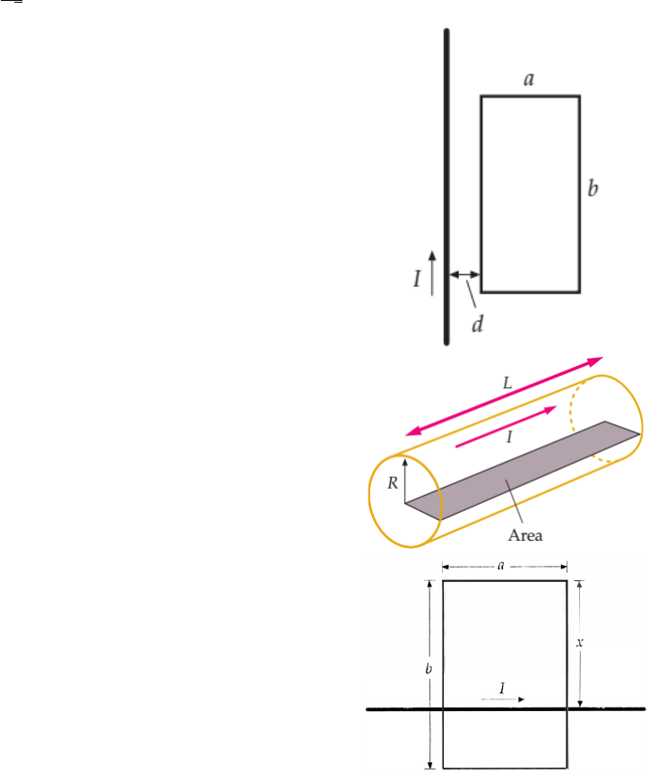 Lista de exercı´cios 8 – Capı´tulo 28 Tipler & Mosca 1. Um campo magne´tico de 1,2T e´ perpendicular a uma espira quadrada de 14 voltas. O comprimento de cada lado da espira e´ de 5cm. (a) Encontre o fluxo magne´tico atrave´s da espira. (b) Determine o fluxo magne´tico atrave´s da espira se o campo magne´tico faz um aˆngulo de 60◦ com a normal ao plano da espira. 2. Uma espira circular de 15 voltas e raio 4cm esta´ em um campo magne´tico de 0,4T na direc¸a˜o x positiva. Determine o fluxo atrave´s da espira quando o vetor unita´rio perpendicular ao plano da espira for (a) nˆ= iˆ, (b) nˆ= jˆ, (c) nˆ= 1√ 2 ( iˆ+ jˆ ) , (d) nˆ= kˆ, e (e) nˆ= 0,6iˆ+0,8 jˆ. 3. Um fio retilı´neo e longo transporta uma corrente I. Uma espira retangular com os lados maiores paralelos ao fio possui lados a e b, com seu lado mais pro´ximo a uma distaˆncia d do fio, como mostrado na figura. (a) Calcule o fluxo magne´tico atrave´s da espira (sugesta˜o: calcule o fluxo atrave´s da faixa de a´rea dA= bdx e integre de d ate´ d + a). (b) Avalie sua resposta para a= 5cm, b= 10cm, d = 2cm e I = 20A. 4. Um longo cilindro condutor de raio R transporta uma corrente I que esta´ uniformemente distribuı´da sobre sua a´rea de sec¸a˜o reta. Encontre o fluxo magne´tico atrave´s da a´rea indicada na figura abaixo (sugesta˜o: calcule o fluxo atrave´s da faixa de a´rea dA= Ldr e integre de 0 ate´ R). 5. Uma espira retangular no plano da pa´gina tem dimenso˜es a e b. Um longo fio que transporta uma corrente I e´ colocado dire- tamente sobre a espira, como mostrado na figura. (a) Obtenha uma expressa˜o para o fluxo magne´tico atrave´s da espira como uma func¸a˜o de x para 0 ≤ x ≤ 2b. (b) Para qual valor de x o fluxo atrave´s da espira e´ ma´ximo? Para qual valor de x o fluxo atrave´s da espira e´ mı´nimo? 6. Um campo magne´tico uniforme ~B e´ estabelecido perpendicularmente ao plano de um espira circular de raio 5cm, resisteˆncia de 0,4Ω e auto-indutaˆncia desprezı´vel. O mo´dulo de ~B esta´ aumentando a uma taxa de 40mT/s. Encontre (a) a fem induzida na espira, (b) a corrente induzida na espira, e (c) a taxa de aquecimento da espira em joules. 7. O fluxo atrae´s de uma espira e´ dado porΦm= ( t2−4t)×10−1Wb, onde t esta´ em segundos. (a) Encontre a fem induzida como func¸a˜o do tempo. (b) Determine Φm e Eind para t = 0s, t = 2s, t = 4s e t = 6s. 1 8. Considere o sistema mostrado na figura abaixo, em que um semi-cı´rculo de raio r = 20cm e treˆs sec¸o˜es retas. O semi-cı´rculo esta´ numa regia˜o de campo magne´tico uniforme orientado para fora da pa´gina; a magnitude do campo e´ dada por B = 4t2 + 2t+ 3, com Bem tesla e t em segundos. Uma bateria ideal com fem E = 2V e´ conectada ao circuito. A resisteˆncia do fio e´ 2Ω. (a) Qual e´ a magnitude da fem induzida pelo campo ~B em torno do circuito em t = 10s? (b) Qual e´ a magnitude e sentido da corrente no circuito em t = 10s? 9. Considere a espira retangular imersa numa regia˜o de campo magne´tico na˜o-uniforme e varia´vel, cuja orientac¸a˜o e´ para den- tro da pa´gina, como mostra a figura. A magnitude do campo e´ dada por B = 4t2x2, com B em tesla, t em segundos e x em metros. (Note que ela e´ uma func¸a˜o tanto do tempo como da posic¸a˜o.) O circuito tem as seguintes dimenso˜es: largura W = 3m e altura H = 2m. Quais sa˜o a magnitude e direc¸a˜o da fem induzida no circuito em t = 0,1s? 10. Como visto na figura abaixo, uma espira quadrada tem lados 2,0cm. Um campo magne´tico orientado para fora da pa´gina, sua magnitude e´ B = 4t2y com B em tesla, t em segundos e x em metros. Em t = 2,5s, quais sa˜o (a) magnitude da fem induzida e (b) o sentido da corrente induzida na espira? 11. Um soleno´ide de comprimento 25cm e raio de 0,8cm, com 400 voltas, esta´ em um campo magne´tico externo de 600G que faz um aˆngulo de 50◦com o eixo do soleno´ide. (a) Determine o fluxo magne´tico atrave´s do soleno´ide. (b) Determine o mo´dulo da fem induzida no soleno´ide se o campo magne´tico externo e´ reduzido para zero em 1,4s. 12. Um enrolamento circular de 100 voltas possui um diaˆmetro de 2cm e resisteˆncia 50Ω. O plano do enrolamento e´ perpendicular a um campo magne´tico uniforme de mo´dulo 1T . A direc¸a˜o do campo e´ subitamente invertida. (a) Determine a carga total que passa atrave´s do enrolamento. Se a reversa˜o leva 0,1s, encontre (b) a corrente me´dia no enrolamento e (c) a fem me´dia no enrolamento. 2 13. Um enrolamento circular de 300 voltas e raio de 5cm esta´ conectado com um integrador de corrente. A resisteˆncia total do circuito e´ 20Ω. O plano do enrolamento esta´ originalmente alinhado de modo perpendicular ao campo magne´tico da Terra em algum ponto. Quando o enrolamento e´ girado de 90◦, a carga que passa atrave´s do integrador de corrente e´ medida como sendo 9,4µC. Determine o mo´dulo do campo magne´tico da Terra naquele ponto. 14. A espira retangular mostrada na figura abaixo possui 80 vol- tas, tem largura a = 25cm e comprimento b = 30cm, e esta´ localizada em um campo magne´tico uniforme B = 1,4T dire- cionado para fora da pa´gina. A resisteˆncia da espira e´ de 24Ω. Determine o mo´dulo e sentido da corrente induzida se a espira e´ deslocada com uma velocidade de 2m/s (a) para a direita, (b) para cima, (c) para a esquerda, e (d) para baixo. 15. No sistema mostrado na figura abaixo, seja B = 0,8T , v = 10m/s, ` = 20cm e R = 2Ω. Determine (a) a fem induzida no circuito, (b) a corrente no circuito, e (c) a forc¸a necessa´ria para mover a haste com velocidade constante, assumindo um atrito desprezı´vel. Determine (d) a poteˆncia de etnrada devida a` forc¸a do item (c) e (e) a taxa de efeito Joule I2R. 16. No sistema mostrado na figura abaixo, a haste tem resisteˆncia R, os trilhos sa˜o horizontais e apresentam resisteˆncia des- prezı´vel. Uma bateria ideal de fem E esta´ conectada ent