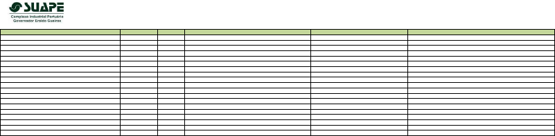 Operador CNPJ Telefone Endereço E-mail Atividades Portuárias AGÊNCIA MARÍTIMA AMAZÔNIA 04.223.673/0001-61 (81)3497-0281 RUA JORNALISTA EDSON REGIS AG_AMAZONIA@VELOXMAIL.COM.BR Estiva - Capatazia ao costado - Capatazia em recinto portuário ATLÂNTICO TERMINAIS S/A 04.538.449/0001-69 (81)3501-1009 AV. PORTUÁRIA S/N RICARDO.OSHIRO@LOCALFRIO.COM.BR Estiva - Capatazia ao costado - Capatazia em recinto portuário BRANDÃO FILHOS FORTSHIP (PE) AGÊNCIA MARÍTIMA LTDA 02.759.524/0001-96 (81)3049-9800 AV: DOMINGOS FERREIRA N°4371 AGRECIFE@BRANDAO.COM.BR Estiva - Capatazia ao costado - Capatazia em recinto portuário - Movimentação de Passageiros COMÉRCIO E NAVEGAÇÃO E. BATISTA LTDA. 10.894.681/0001-32 (81)3224-4144 RUA: VIGÁRIO TENÓRIO N°105 SALA - 701/703 EBATISTA@EBATISTA.COM.BR Estiva - Capatazia ao costado - Capatazia em recinto portuário - Outros NAVEGAÇÃO E COMÉRCIO GUARARAPES 09.122.847/0001-13 (81)3224-1876 RUA DA ASSEMBLEIA N°67 RSOHSTEN.GUARARAPES@GMAIL.COM Estiva - Capatazia ao costado SUATA SERVIÇOS UNIF. DE ARM. E TERM. ALFANDEGADO S/A 03.928.105/0001-1 (81)3501-1009 RUA 2 NORTE N°500 RICARDO.OSHIRO@LOCALFRIO.COM.BR Estiva - Capatazia ao costado - Capatazia em recinto portuário SUPERSERVICE INSPEÇÕES E OPERAÇÕES PORTUÁRIAS LTDA 70.239.454/0001-03 (81)3224-0915 PRAÇA DO ARSENAL DE MARINHA SERVICER@TERRA.COM.BR Estiva - Capatazia ao costado - Capatazia em recinto portuário - Sacaria TERMINAL QUÍMICO DE ARATU S\A - TEQUIMAR 14.688.220/0005-98 (81)3527-5332 AVENIDA PORTUÁRIA S\N - COMPLEXO INDUSTRIAL PORTUÁRIO DE SUAPE VALDEMIRO.JUNIOR@ULTRACARGO.COM.BR Estiva - Capatazia ao costado DECAL BRASIL LTDA 03.973.894/0001-94 (81)3311-5950 AVENIDA PORTUÁRIA S\N - COMPLEXO INDUSTRIAL PORTUÁRIO DE SUAPE DECAL@DECALBRASIL.COM TERMINAL E OPERAÇÃO DE NAVIO TECON SUAPE SOCIEDADE ANÔNIMA 04.471.564/0001-63 (81)3527-5200 AVENIDA PORTUÁRIA S\N - COMPLEXO INDUSTRIAL PORTUÁRIO DE SUAPE TECON@TECON.COM TERMINAL DE CONTEINERES E CARGA GERAL E OPERAÇÃO DE NAVIO M&G - POLÍMEROS BRASIL S/A 07.079.511/0001-90 (81)3311-8600 AVENIDA PORTUÁRIA S/N - COMPLEXO INDUSTRIAL PORTUÁRIO DE SUAPE VICENTE.RUSSO@GRUPOMG.COM.BR FABRICAÇÃO DE RESINAS TERMOPLÁSTICAS (PET) TEMAPE TERMINAIS MARITIMOS DE PERNAMBUCO S/A 02.639.582/0001-86 (81)3527-1048 AVENIDA PORTUÁRIA S/N - COMPLEXO INDUSTRIAL PORTUÁRIO DE SUAPE TEMAPE@PETROVIATEMAPE.COM.BR ARMAZENAGEM E DISTRIBUIÇÃO DE COMBUSTIVRIS DERIVADOS DE PETRÓLEO, ÁLCOOL PANDENOR IMPORTAÇÃO E EXPORTAÇÃO LTDA 00.499.730/0001-89 (81)3527-1292 AVENIDA PORTUÁRIA S/N - COMPLEXO INDUSTRIAL PORTUÁRIO DE SUAPE PANDENOR@PANDENOR.COM.BR ARMAZENAGEM DE GRANÉIS LIQUIDOS WINDROSE SERVIÇOS MARÍTIMOS E REPRESENTAÇÕES LTDA 10.646.750/0001-99 (81)2119-7171 TDR SUL, S/N, QUADRA A, LOTE E4 MARCOS@WINDROSE.COM.BR Estiva - Capatazia ao costado - Capatazia em recinto portuário START NAVEGAÇÃO LTDA 36.419.638/0002-20 (81)3424-1520 RUA MANZ E BARROS N°91 - SALAS 201 E 202 COMMERCIAL@STARTREC.COM.BR Estiva - Capatazia ao costado - Capatazia em recinto portuário TRC TERMINAL RETROPORTUÁRIO DE CONTEINERS E LOGISTICA LTD 07.523.790/0002-10 (81)3527-4001 HILDA COSTA MONTEIRO N°255 - 1°ANDAR - SALA 04 ODETE.KBG@KOMBOOGIE.COM.BR Capatazia ao costado TEGMA GESTÃO LOGÍSTICA S/A 02.351.144/00029-19 (11)4397-9600 HILDA COSTA MONTEIRO N°8 COMERCIAL.DW@TEGMA.COM.BR Movimentação de veículos POLO OPERADORES PORTUÁRIOS 08.030.539/0002-86 (81)3038-7523 R. MARANHÃO N°54 SALA 1001 ALEXANDRE.FALCAO@POLOOPERADORES.COM.BR Estiva - Capatazia ao costado - Capatazia em recinto portuário KOMBOOGIE BRASIL LOGÍSTICA LTDA 12.594.040/0002-79 (81)3527-4001 RUA DA AURORA, ED. EBANO N°325 CONJUNTO 1017 ODETE.KBG@KOMBOOGIE.COM.BR Capatazia ao costado