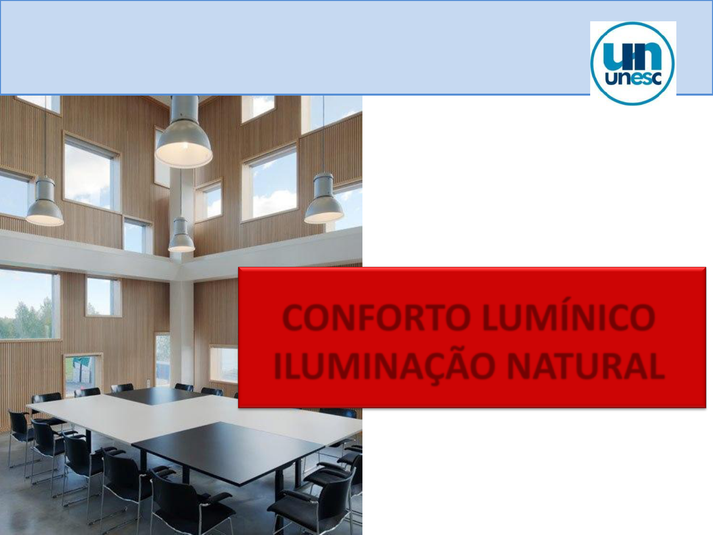 CONFORTO LUMÍNICO ILUMINAÇÃO NATURAL Centro Universitário do Espírito Santo Campus Colatina-ES Prof.: Marco Flávio Siqueira Colatina, 2014 ILUMINAÇÃO NATURAL CONFORTO LUMÍNICO Para desenvolvermos determinadas atividades visuais, nosso olho necessita de condições específicas e que dependem muito das atividades que o usuário realiza. Para alcançar o conforto deve-se levar em consideração: • a quantidade de luz; • a correta distribuição de luz no ambiente; • a ausência de contrastes excessivos. Quanto melhores as condições do ambiente, menor será o esforço físico para se adaptar às condições ambientais e desenvolver bem a atividade em questão, aumentando a sensação de conforto. ILUMINAÇÃO NATURAL ILUMINAÇÃO NATURAL É a iluminação obtida com a luz proveniente do sol e pelos raios solares diretos e/ou raios indiretos. É uma luz dita de espectro total e que apresenta a melhor resposta visual humana com a melhor reprodução de cores dentre as fontes existentes. ILUMINAÇÃO NATURAL ILUMINAÇÃO Propriedades ópticas da luz São três as propriedades básicas: Reflexão Absorção Transmissão - Refração Materiais Transparentes ou Translúcidos Materiais Opacos ILUMINAÇÃO NATURAL É a medida da quantidade de luz incidente numa superfície por unidade de área, cuja unidade é: lux = lumen/m² E = Φ A Onde: E = Iluminância (lx) Φ = Fluxo Luminoso (lm) A = Área Projetada (m²) ILUMINAÇÃO Algumas Grandezas ILUMINÂNCIA ILUMINAÇÃO Algumas Grandezas ILUMINÂNCIA ILUMINAÇÃO NATURAL NBR 5413:1992 ILUMINAÇÃO NATURAL Quando parte da luz incidente numa superfície é refletida, esta superfície é observada como uma fonte de luz. Luminância é a medida do brilho de uma superfície. ILUMINAÇÃO Algumas Grandezas LUMINÂNCIA ILUMINAÇÃO NATURAL ILUMINAÇÃO Algumas Grandezas LUMINÂNCIA É determinada pela equação: L = I A. cos α Onde: L = Luminância (cd/m²) I = Intensidade Luminosa (cd) A = Área Projetada (m²) α = Ângulo (Graus) ILUMINAÇÃO NATURAL ILUMINAÇÃO Algumas Grandezas LUMINÂNCIA ILUMINAÇÃO NATURAL ILUMINAÇÃO NATURAL Vantagens: • Melhor adaptação do usuário e maior sensação de conforto, consequentemente, redução da fadiga visual; • aumento da produtividade, diminuição de erros e defeitos nos produtos; • redução do consumo de energia contribuindo com a sustentabilidade. Priorizar a utilização da luz natural, se este sistema não for suficiente adotar o sistema artificial que tenha bom desempenho e seja eficiente. ILUMINAÇÃO NATURAL ILUMINAÇÃO NATURAL Desvantagens: • Se mal dimensionada, a iluminação natural torna-se exagerada, ocasionando ofuscamento e aumento da carga térmica; • as tarefas devem ser setorizadas - para melhor aproveitamento da luz natural as tarefas com maiores exigências visuais devem estar próximas as janelas. ILUMINAÇÃO NATURAL A iluminação natural é uma das mais eficientes formas de iluminação. Nas lâmpadas incandescentes apenas 10% da energia consumida é emitida na forma de luz, o resto é transformado em calor; Nas lâmpadas fluorescentes, de 20 a 35% da energia é emitida como luz; Já na luz natural, 55% da energia está dentro do espectro visível. ILUMINAÇÃO NATURAL A iluminação natural é uma das mais eficientes formas de iluminação. Em termos de produção de luz, significa dizer que a eficiência luminosa é igual: Lâmpada incandescente 10 lm/W Lâmpada fluorescente 60 - 70 lm/W Luz solar 100 - 130 lm/W Abóbada celeste 90 – 115 lm/W ILUMINAÇÃO NATURAL CONCEITO DE ABERTURA: “todas as áreas da envoltória do edifício, com fechamento translúcido ou transparente (que permite a entrada da luz), incluindo janelas, painéis plásticos, clarabóias, portas de vidro (com mais da metade da área de vidro) e paredes de blocos de vidro” Qualquer que seja o tipo de abertura, sua orientação será um fator dominante na qualidade e quantidade de luz natural recebida. O principal elemento da edificação em relação a iluminação natural é a ABERTURA ILUMINAÇÃO NATURAL Assim, um bom projeto de iluminação irá englobar: • Dimensionamento e forma das aberturas para melhor aproveitamento dos sistemas de iluminação natural; • uso do sistema de iluminação artificial como complemento para obter níveis adequados de iluminação de acordo com a atividade realizada (Iluminância – NBR 5413:1992); • conservação de energia elétrica; • diminuição do ganho de calor tanto pelo sistema de iluminação natural, quanto pelo sistema de iluminação artificial. ILUMINAÇÃO NATURAL O conforto visual depende também da luminância no campo visual: 100.000 lux pode ser bastante agradável em uma paisagem verde escura (ρ = 0,3), mas pode ser intoleravelmente ofuscante em uma areia de praia branca (ρ = 0,9). *Luminância é a medida do brilho (reflexão) de uma superfície. ILUMINAÇÃO NATURAL Logo, a luz do Sol é intensa demais para ser usada como iluminação de tarefa. Assim, para que sua utilização em ambientes internos seja viável pode-se usar recursos para torná-la uma fonte de luz refletida o que faria com que os bons níveis de iluminação sejam menores do que os obtidos pelos raios solares diretos porém, seja mais uniformemente distribuído pelo ambiente. ILUMINAÇÃO NATURAL FERRAMENTAS E METODOLOGIAS PARA DIMENSIONAMENTO DE ABERTURAS: Especificações das legislações, normas e regulamentos em vigor. • Normas brasileiras: NBR 15575:2013; • Códigos de obras municipais; • Regulamentação PROCEL/EDIFICA. ILUMINAÇÃO NATURAL FERRAMENTAS E METODOLOGIAS PARA DIMENSIONAMENTO DE ABERTURAS: Especificações das legislações, normas e regulamentos em vigor. NBR 15575-1 (ABNT, 2013) – Desempenho para edifícios habitacionais de até 5 pavimentos. Premissas de projeto: “Os requisitos de iluminância natural podem ser atendidos mediante adequada disposição dos cômodos (arquitetura), correta orientação geográfica d