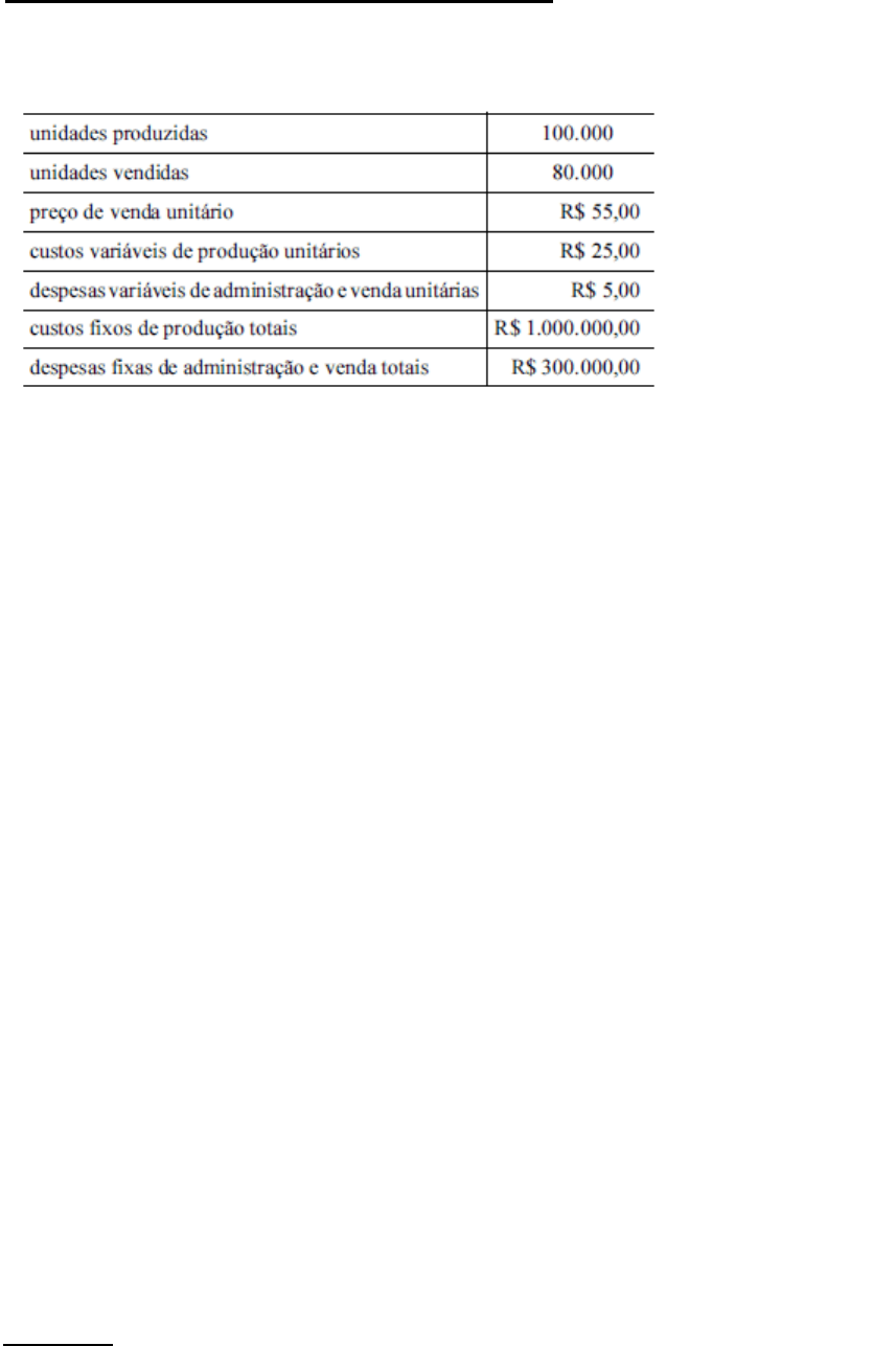 LISTA DE EXERCÍCIOS - MÉTODOS DE CUSTEIO Profª Vanessa 1 - A tabela a seguir apresenta informações relativas ao sistema de custos, produção e despesas de uma empresa que fabrica um único produto. PEDE-SE PARA CALCULAR o Resultado do período, utilizando: a) Custeio por Absorção; b) Custeio Variável; c) Explicar a diferença do resultado pelos dois métodos. 2 – A Fábrica de Tapetes Pé Sujo produziu 500 unidades de seu único tipo de tapete no mês de abril. Não havia estoque inicial e, no final de abril, ficaram 50 unidades não vendidas. Os custos desse mês foram: Matéria-prima direta R$ 25.000,00 Mão de Obra direta R$ 29.000,00 Custos indiretos variáveis R$ 12.800,00 Custos indiretos fixos R$ 15.000,00 Pede-se: a) Resultado do mês pelo Custeio por Absorção e pelo Custeio Variável; b) Estoque final pelo Custeio por Absorção e pelo Custeio Variável; 3 – A Companhia Diadema S/A fabrica biscoitos e doces, vendidos nas regiões Norte e Nordeste. Alguns dados extraídos das demonstrações financeiras da empresa são: Exercício 2013 Unidades Produzidas 4.000 Unidades Vendidas 2.000 Preço unitário de Venda R$ 10,00 Custos e Despesas Matéria Prima consumida R$ 2,00 / unidade Mão de Obra Direta R$ 3,00 / unidade Custos indiretos Variável R$ 1,00 / unidade Custos indiretos Fixo R$ 12.000,00 / ano Despesas Fixas R$ 2.000,00 / ano PEDE-SE: a) Calcular o Resultado Líquido pelo Custeio por Absorção e pelo Custeio Variável; b) Explicar a diferença do resultado pelos dois métodos.