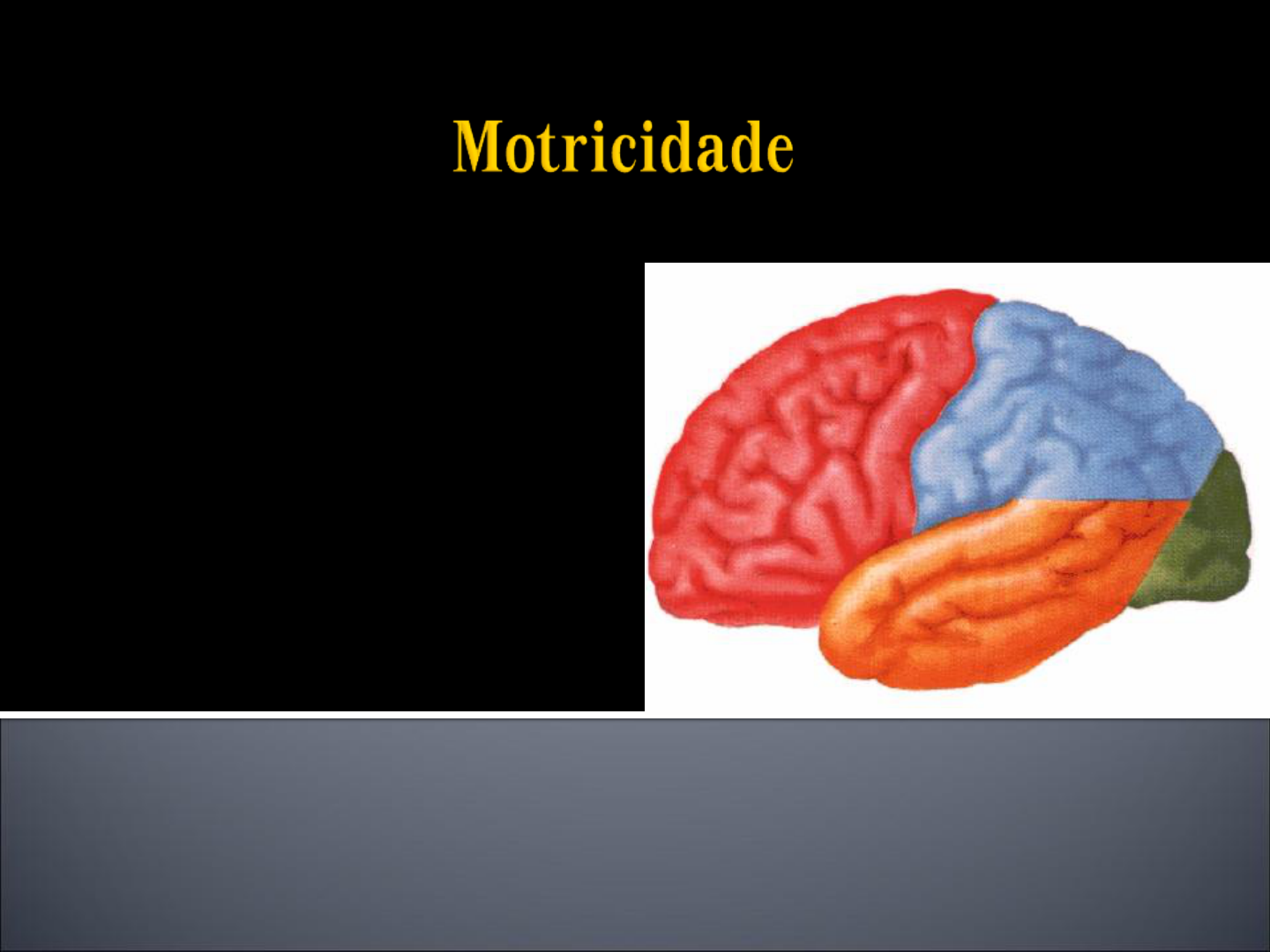 Motricidade Sistema Nervoso Motor Lobo Frontal Lobo Parietal Lobo Temporal Lobo Occipital Profa. Dra. Luciana Pietro Classificação Funcional do Córtex Córtex Áreas de projeção Áreas de associação recebem ou dão origem a fibras relacionadas diretamente com a sensibilidade e a motricidade estão relacionadas a funções psíquicas complexas Áreas motoras Área sensitiva Secundárias (unimodais) Terciárias (supremodais) Lobo frontal Demais lobos Enquanto o sistema nervoso sensorial nos proporciona uma representação do mundo exterior e do estado interno do corpo, o processamento motor começa com uma “imagem” de um movimento desejado e, finalmente, sua expressão na forma de comportamento. A principal função da motricidade é guiar a expressão motora na forma de várias posturas e combinações de movimentos do corpo e partes do corpo. Ao contrário do sistema sensorial que transforma os sinais físicos e químicos do ambiente em sinais neurais, o sistema motor faz o inverso: processa os sinais neurais em comandos ordenados que irão determinar no músculo a força contrátil que deverá ser utilizada para realizar um determinado movimento. Assim como a nossa capacidade perceptual reside em detectar, analisar e estimar o significado dos estímulos ambientais, a nossa habilidade e performance motora refletem a capacidade do sistema motor planejar, coordenar e executar os movimentos. Enquanto o SISTEMA NERVOSO SENSORIAL... Transdução dos sinais físicos e químicos Representação do mundo exterior e do estado interno do corpo Percepção: detectar, analisar e estimar o significado dos estímulos ambientais O SISTEMA NERVOSO MOTOR SOMÁTICO Transdução dos sinais neurais em força contrátil que se manifestam na forma de movimentos e posturas do corpo (comportamento) MOVIMENTOS REFLEXOS (baixa complexidade) - Evocados por estímulos específicos - Utiliza algumas unidades de trabalho da motricidade - Estereotipados e Inatos - Podem ser condicionados MOVIMENTOS VOLUNTÁRIOS (alta complexidade) - Planejamento e estratégia - Amplamente modulado pela aprendizagem Utiliza todas as unidades de trabalho da motricidade Expressão Motora Voluntária São movimentos complexos, amplamente aprendidos e intencionais como os de escrever, tocar piano, falar, cantar, etc. Uma vez aprendido, repetido e incorporado ao nosso repertório, os mecanismos de aprendizagem motora garantem que, ao evocarmos a tarefa voluntariamente, as sequencias de movimentos são realizadas automaticamente. Andar de bicicleta é uma tarefa complexa e amplamente aprendida. Mas depois que aprendeu, nunca mais é esquecida mesmo que passem anos sem praticá-la. Não confundir: uma resposta reflexa é automática, mas de natureza inata; já as tarefas voluntárias se tornam automáticas depois de terem sido aprendidas. SISTEMA MOTOR: todos os elementos (fibras musculares e neurônios) envolvidos com a motricidade (somática e visceral). As atividades motoras somáticas permitem ao organismo relacionar-se com o ambiente: Manter-se em posição, apesar da gravidade tender a aproximá-lo do chão; Locomover-se; Reagir a estímulos sensoriais específicos; Manipular objetos; Realizar comunicação (linguagem e expressão facial). Motricidade Voluntária ou Somática O sistema motor requer unidades de trabalho que operem em harmonia para a expressão do comportamento. Essas unidades podem ser resumidas em: Unidade de planejamento e comando: idealização do movimento (córtex motor) Unidades de controle: detectam os erros entre o movimento programado e o que está sendo executado (cerebelo e núcleos da base) Unidade de ordenação: enviam aos músculos comandos finais (motoneurônios da medula e do tronco encefálico) Unidade de execução: realização do movimento (músculos) Realização do Movimento O CÓRTEX MOTOR Córtex Motor Primário - Área Pré-Motora Área Motora suplementar Córtex cingulado Associação (planejamento) Projeção (iniciação) Unidade de Planejamento e Comando Unidade motora ou ordenação: o motoneurônio e as fibras musculares por ele inervadas. Um músculo é controlado por mais de um motoneurônio; possui várias unidades musculares. Unidade motora: uma unidade funcional onde há trocas de fatores tróficos. Quando um deles morre o outro sofre atrofia. PA no axônio Fibra muscular EVENTOS DA NEUROTRANSMISSÃO Chegada do PA nos terminais Liberação de Acetilcolina Complexo receptor nicotinico-Ach Abertura de canais Na pós-sinápticos Potencial pós-sináptico (Potencial de Placa) Abertura de Canais Na e K voltagem dependentes no sarcolema Geração e propagação do PA pelo sarcolema As fibras musculares são células excitáveis como os neurônios: geram PEPS (potencial de placa) e PA. Forma rápida de transmitir os comandos neurais. Músculo Estriado Músculo Estriado Músculo Liso Músculo Cardíaco Músculo Esquelético Músculo Liso Controle Involuntário Controle Voluntário SISTEMA MOTOR SOMÁTICO SISTEMA MOTOR VISCERAL Unidade de Execução “ O goleiro parece nervoso”; “ O sol está contra ele” “A sua postura indica que vai cair pro lado esquerdo” “ Vou chutar no canto direito, forte, com efeito e com pé esquerdo!” Os movimentos voluntários são organizados em nível cortical e suas ações se sobrepõem aos arcos reflexos. Como uma idéia ou intenção de movimento se transformam em uma sequencia organizada de contrações musculares? Como o movimento voluntário é organizado? “ O goleiro parece nervoso”; “ O sol está contra ele” “A sua postura indica que vai cair pro lado esquerdo” “ Vou chutar no canto direito, forte, com efeito e com pé esquerdo!” Córtex pré-frontal Neurônio Motor Superior São todos aqueles neurônios do SNC que influenciam no funcionamento do neurônio motor inferior São divididos em 3 subgrupos O neurônio motor superior começa no cérebro mas emite axônio longo que percorre a medula espinhal para fazer sina