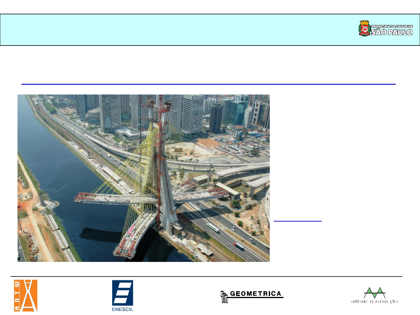 Ponte Estaiada Octavio Frias de Oliveira (Complexo Real Parque) Ponte dupla estaiada com mastro em “X” sobre o rio Pinheiros Palestrante: Catão F. Ribeiro Sócio Diretor Enescil Engenharia de Projetos Ltda Ponte Estaiada Octavio Frias de Oliveira (Complexo Real Parque) Conteúdo: Concepção da estrutura Projeto Executivo Projeto Básico Projeto Executivo (Duas pontes independentes) (Uma única obra) Projeto inovador Dois tabuleiros curvos sobrepostos Mastro único Estrelaçamento dos estais Ponte Estaiada Octavio Frias de Oliveira (Complexo Real Parque) Projeto básico: Duas pontes independentes - O Cruzamento entre as duas pontes ocorre próximo a Av. Jornalista Roberto marinho. - Cada tabuleiro estaiado é suportado por um mastro. Ponte Estaiada Octavio Frias de Oliveira (Complexo Real Parque) Mastro de estaiamento Interferências locais (fundação) - Cada torre possui 105m acima do tabuleiro. Tabuleiro - 2 faixas de 3,50m ; 1 acostamento de 2,00m. - 2 faixas de segurança de 0,60m. - 2 passeios de emergência de 1,00m. Ponte Estaiada Octavio Frias de Oliveira (Complexo Real Parque) Estaiamento - 2 vãos simétricos de 143,0m de comprimento. - 2x22 estais em cada vão. - Estais espaçados longitudinalmente a cada 6,0m. Apoios extremos - Travessa circular. - Ligação monolítica com o tabuleiro. Ponte Estaiada Octavio Frias de Oliveira (Complexo Real Parque) Arquitetura alternativa: Participação de dois novos profissionais: Eng. Guy Fremont (Jean Muller International) Arq. Charles Lavigne (Charles Lavigne Architecte) Projeto básico para licitação já se encontrava adiantado Não havia tempo para mudanças Propósito de alteração da arquitetura para o projeto executivo. Apresentação na EMURB Impossibilidade de adiamento Ponte Estaiada Octavio Frias de Oliveira (Complexo Real Parque) Projeto arquitetônico de Charles Lavigne 08/04/03 Charles Lavigne 08/04/03 Charles Lavigne Ponte Estaiada Octavio Frias de Oliveira (Complexo Real Parque) Projeto arquitetônico de Charles Lavigne Charles Lavigne 08/04/03 Charles Lavigne 08/04/03 Ponte Estaiada Octavio Frias de Oliveira (Complexo Real Parque) Projeto arquitetônico de Charles Lavigne Jean Muller International Charles Lavigne 08/04/03 Guy Fremont Ponte Estaiada Octavio Frias de Oliveira (Complexo Real Parque) Uniao Européia: Ponte Estaiada Octavio Frias de Oliveira (Complexo Real Parque) Hong Kong: Ponte Estaiada Octavio Frias de Oliveira (Complexo Real Parque) Macao: Ponte Estaiada Octavio Frias de Oliveira (Complexo Real Parque) Macao: Ponte Estaiada Octavio Frias de Oliveira (Complexo Real Parque) Macao: Ponte Estaiada Octavio Frias de Oliveira (Complexo Real Parque) Projeto executivo: Uma única obra - O Cruzamento entre as duas pontes ocorre no mastro (margem do rio Pinheiros). - Ambos os tabuleiros estaiados são suportados por um único mastro. Ponte Estaiada Octavio Frias de Oliveira (Complexo Real Parque) O mastro em “X” nasceu da necessidade estrutural e não arquitetônica !!! PONT DE TERENEZ CHARLES LAVIGNE Ponte Estaiada Octavio Frias de Oliveira (Complexo Real Parque) O mastro em “X” nasceu da necessidade estrutural e não arquitetônica !!! - Cada tabuleiro curvo necessita de um mastro inclinado para ser equilibrado. Ponte Estaiada Octavio Frias de Oliveira (Complexo Real Parque) O mastro em “X” nasceu da necessidade estrutural e não arquitetônica !!! - Como o cruzamento entre os tabuleiros ocorre junto ao mastro, as torres inclinadas se interceptam, contraventando-se entre si. Ponte Estaiada Octavio Frias de Oliveira (Complexo Real Parque) A sobreposição dos tabuleiros nasceu da necessidade geométrica e não arquitetônica !!! Ponte Estaiada Octavio Frias de Oliveira (Complexo Real Parque) Fundação: Interferências locais - 28 estacões f130cm - 10 estacas raiz f 41cm - Linha de transmissão - Canal de adução - Rio Pinheiros - CPTM - Marginal Pinheiros (Av. Nações Unidas) Ponte Estaiada Octavio Frias de Oliveira (Complexo Real Parque) Mastro: Altura: 138,0m - Altura elevada quando comparada com outras pontes de mesmo vão, porém necessária para assegurar o gabarito mínimo de 6,0m. Ponte Estaiada Octavio Frias de Oliveira (Complexo Real Parque) 12m Mastro: N<12,0m Ponte Estaiada Octavio Frias de Oliveira (Complexo Real Parque) Mastro: N=12,0m (1o travamento) - Pilares ligados transversalmente por 3 vigas armadas e uma laje. - Pilares ligados longitudinalmente por 2 vigas protendidas. Ponte Estaiada Octavio Frias de Oliveira (Complexo Real Parque) Mastro: 12,0m < N < 23,4m 23,4m 12,0m - Torres inclinadas com seção variável. - Paredes com espessura de 40cm e 60cm. Ponte Estaiada Octavio Frias de Oliveira (Complexo Real Parque) Mastro: N=23,4m (2o travamento) - Pilares ligados longitudinalmente por duas vigas armadas. Ponte Estaiada Octavio Frias de Oliveira (Complexo Real Parque) 81,0m 23,4m Mastro: 23,4m < N < 81,0m - Duas torres inclinadas (1:3) com seção variável. - As extremidades das torres convergem para um mesmo ponto. - Parede com espessura de 40cm. Ponte Estaiada Octavio Frias de Oliveira (Complexo Real Parque) 81,0m 90,0m Mastro: 81,0m < N < 90,0m - Ligação entre as torres feita através de uma seção celular de 9,0m de altura. Ponte Estaiada Octavio Frias de Oliveira (Complexo Real Parque) 132,0m 90,0m Mastro: 90,0m < N < 132,0m - Duas torres inclinadas (1:4,5) com seção variável. - Inclinação necessária para minimizar efeitos de torção devido cargas permanentes e assegurar gabarito de 6,0m. - Espessura da parede igual a 40cm e 80cm. Ponte Estaiada Octavio Frias de Oliveira (Complexo Real Parque) Mastro: 90,0m < N < 132,0m Ponte Estaiada Octavio Frias de Oliveira (Complexo Real Parque) Posição dos ressaltos (Av. Marginal Pinheiros) Posição dos ressaltos (Av. Jornalista Roberto Marinho) Mastro: 90,0m < N < 132,0m Ponte Estaiada Octavio Frias de Oliveira (Complexo Real Parque) Apoio extremo: Ponte Estaiada Octavio Frias de Oliveira (Complexo Real Parque) Es