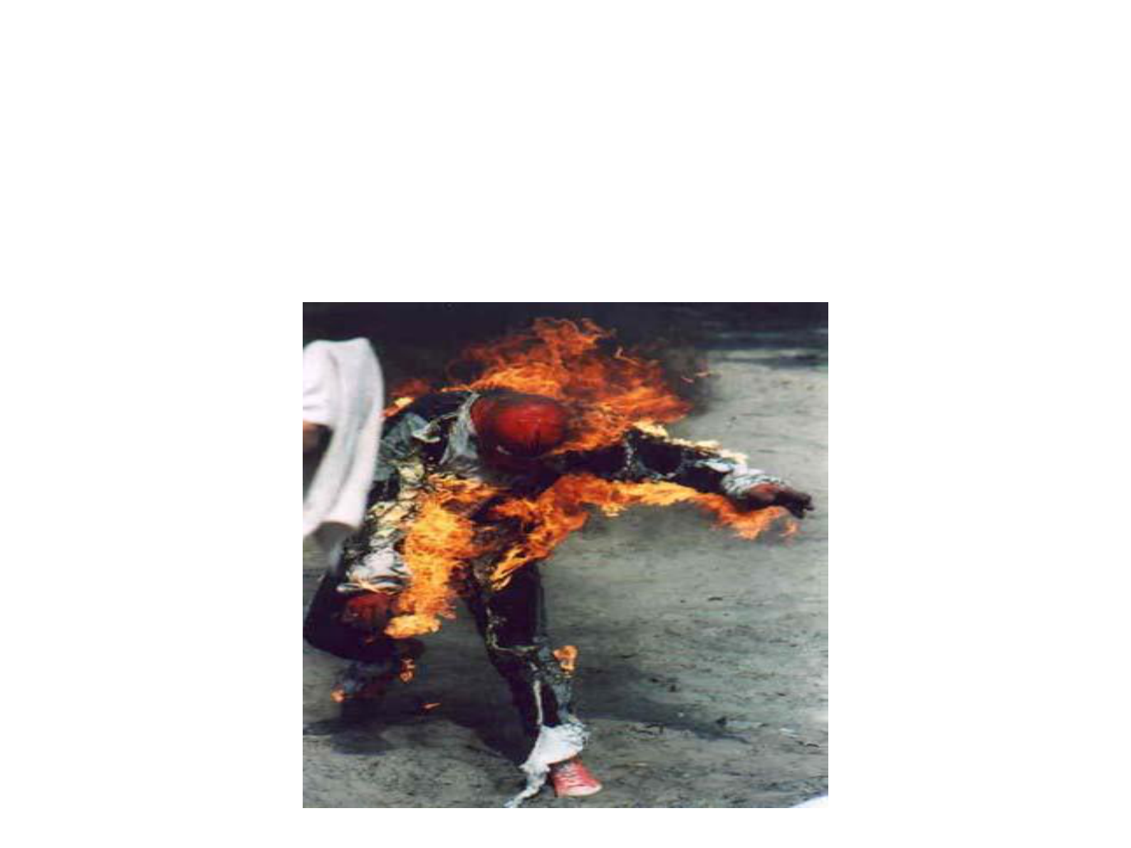 * ATENDIMENTO PRIMÁRIO DE QUEIMADOS * QUEIMADURAS. SÃO LESÕES CAUSADAS NOS TECIDOS CUTÂNEO, PROVOCADOS PELA AÇÃO DIRETA OU INDIRETA DE ALTA TEMPERATURA. PODEM SER ORIGINADAS POR AGENTES QUÍMICOS, TÉRMICOS OU ELÉTRICOS (METAIS, FOGO, ÁCIDOS, CONTATO ELÉTRICO, PROXIMIDADES DE FORNOS INDUSTRIAIS, RADIAÇÕES, RAIOS SOLARES, FRIO, PLANTAS). MUITAS PESSOAS QUANDO PENSAM EM QUEIMADURAS, FOCALIZAM SOMENTE DANOS Á PELE. AS QUEIMADURAS LESIONAM MUITO MAIS DO QUE A SUPERFÍCIE DA PELE. CONFORME O GRAU,AS QUEIMADURAS PODEM CAUSAR LESÕES ÀS ESTRUTURAS ABAIXO DA PELE, INCLUINDO MÚSCULOS, NERVOS, VASOS SANGÜÍNEOS, E ATÉ OSSOS. * ANATOMIA DA PELE A PELE É MAIS COMPLEXA DO QUE APARENTA. SUA FUNÇÃO PRINCIPAL É PROTEGER O ORGANISMO DE AMEAÇAS FÍSICAS EXTERNAS. TAMBÉM TEM A FUNÇÃO DE DEFESA IMUNOLÓGICA E É O PRINCIPAL ÓRGÃO REGULADOR DA TEMPERATURA DE NOSSO CORPO CONTRA A DESIDRATAÇÃO. TEM AINDA FUNÇÕES NERVOSAS, CONSTITUINDO O SENTIDO DO TATO. * EPIDEMIOLOGIA SÃO LESÕES FREQUENTES NOS ACIDENTES, E A QUARTA CAUSA DE ÓBITOS POR TRAUMAS. NO BRASIL, ESTIMA-SE QUE HÀ : 1.000.000- DE ACIDENTES POR ANO. 100.000 -DESTES PROCURAM ATENDIMENTO HOSPITALAR. 2.500-EVOLUEM P/ÓBITO 2/3%- DESTES ACONTECE EM CASA ATINGINDO GERALMENTE CRIANÇAS. * SINAIS E SINTOMAS. DOR FÍSICA, EMOCIONAL, SOCIAL, ESPIRITUAL PROBLEMAS PSICOLÓGICOS * CLASSIFICAÇÕES QUANTO AO AGENTE CAUSAL FÍSICOS: TEMPERATURA: VAPOR, OBJETOS AQUECIDOS, ÁGUA QUENTE, CHAMA, ETC.ELETRICIDADE : CORRENTE ELÉTRICA, RAIO, ETC. RADIAÇÃO : SOL, APARELHOS DE RAIOS X, RAIOS ULTRA-VIOLETAS, NUCLEARES, ETC. QUÍMICOS: PRODUTOS QUÍMICOS: ÁCIDOS, BASES, ÁLCOOL, GASOLINA, ETC. BIOLÓGICOS: ANIMAIS: LAGARTA-DE-FOGO, ÁGUA-VIVA, MEDUSA, ETC. E VEGETAIS : O LÁTEX DE CERTAS PLANTAS, URTIGA, ETC. * CLASSIFICAÇÃO AGENTE CAUSADOR, PROFUNDIDADE, EXTENSÃO, LOCALIZAÇÃO, GRAVIDADE. * PROFUNDIDADE. 1º GRAU, 2º GRAU, 3º GRAU * CLASSIFICAÇÃO Quanto a profundidade da lesão 1º Grau Não sangra , geralmente seca Rosa e toda inervada Não passam da Epiderme Queimadura de Sol(exemplo) Hiperemia(Vermelhidão) Dolorosa Obs:Normalmente não chega na emergência * CLASSIFICAÇÃO (1ºGRAU) * CLASSIFICAÇÃO Quanto a profundidade da lesão 2º Grau Atinge a derme Úmida Presença de Flictenas (Bolhas) Retirar ou não? Rosa, Hiperemia (Vermelhidão) Dolorosa Cura espontânea mais lenta, com possibilidade de formação de cicatriz * CLASSIFICAÇÃO (2ºGRAU) * CLASSIFICAÇÃO Quanto a profundidade da lesão 3º Grau Atinge todos os apêndices da pele Ossos , músculos, nervos , vasos Pouca ou nenhuma dor Úmida Cor Branca, Amarela ou Marrom Não cicatriza espontaneamente, necessita de enxerto * CLASSIFICAÇÃO (3ºGRAU) * CLASSIFICAÇÃO (3ºGRAU) * FISIOPATOLOGIA O PROCESSO DE EDEMA, PERDA DE LÍQUIDOS E APC(AUMENTO DA PERMEABILIDADE CAPILAR) GERAM DOIS RISCOS AO PACIENTE QUEIMADO. 1º Risco – Choque Hipovolêmico 2º Risco – Perda de Eletrólitos * EXTENSÃO DA QUEIMADURA. È A PORCENTAGEM DA ÁREA SUPERFÍCIAL DO CORPO OU PELE QUEIMADA. * EXTENSÃO. CRIANÇAS: CABEÇA=18% AS DEMAIS PARTES DO CORPO MESMO QUE ADULTO. * LOCALIZAÇÃO ÁREA CRÍTICA= FACE,MÃOS,VIAS ÁEREAS,GENITAIS. SEMI-CRÍTICA= TODAS AS DEMAIS ÁREAS CORPÓREAS. * A GRAVIDADE DEPENDE DA: PROFUNDIDADE, EXTENSÃO, ENVOLVIMENTO DE ÁREAS CRÍTICAS IDADE > DE 55 ANOS E > DE 10 ANOS. PRESENÇA DE LESÕES, (PULMONAR,ORGÃOS,FRATURAS) DOENÇAS DE BASE (DM,HAS,ICC,ETC) * CUIDADOS PRÉ-HOSPITALAR. A-B-C-D-E DAS VÍTIMAS DE QUEIMADAS, A= QUEIMADURAS QUE ENVOLVAM VIAS ÁEREAS,FACE,EDMAS DE FARINGE E OROFARINGE. B= SE HOUVE INALAÇÃO DE FUMAÇA,CONFUSÃO MENTAL. C= AVALIAR TAMANHO DA QUEIMADURA E SINAIS DE CHOQUE. D= AVALIAR NÍVEL DE CONSCIÊNCIA. E= PROCEDER AO CURATIVO. * CUIDADOS PRÉ-HOSPITALAR. CASO VÍTIMA ESTEJA INSTÁVEL, SEGUIR PARA HOSPITAL IMEDIATAMENTE,JÁ CONTINUANDO O EXAME NA AMBULÂNCIA. SE ESTÁVEL PODE-SE PROCEDER OS PRÓXIMOS PASSOS NO PRÓPRIO LOCAL A ESPERA DE SOCORRO. VERIFICAÇÃO DE SINAIS VITAIS MONITORIZAÇÀO ANAMNESE (SINTOMAS, PATOLOGIAS PREGRESSAS, ALERGIAS, ETC) ACESSO VENOSO E HIDRATAÇÃO RÁPIDA * CUIDADOS PRÉ-HOSPITALAR. AFASTAR VÍTIMA DO AGENTE CAUSADOR. SE VÍTIMA ESTIVER EM CHAMAS ENVOLVÊ-LA NUM COBERTOR OU MANDAR ROLAR NO CHÃO. RESFRIAR A ÁREA COM ÁGUA. (PELE) RETIRAR ADORNOS DA VÍTIMA. * CUIDADOS PRÉ-HOSPITALAR. RETIRAR AS ROUPAS. OFERECER MUITA ÁGUA. LAVAR ÁREA AFETADA COM ÁGUA. DESLIGAR CHAVE GERAL DE ENERGIA. PROVIDÊNCIAR TRANSFERÊNCIA DE VÍTIMA. * CUIDADOS PRÉ-HOSPITALAR. EXAME SECUNDÁRIO RESFRIAMENTO DAS ÁRES QUEIMADAS BUSCA DE SINAIS E SINTOMAS DE TRAUMAS ASSOCIADOS ESTIMATIVA DA ÁREA QUEIMADA E PROFUNDIDADE AVALIE NÍVEL DE CONSCIÊNCIA (ALERTA, RESPONDE À ESTÍMULOS VERBAIS, RESPONDE A ESTÍMULOS DE DOR OU ESTÁ INCONSCIENTE). CHAME AJUDA!!!!!! * CUIDADOS INTRA-HOSPITALAR. MANTER MATERIÁL DE ENTUBAÇÃO FÁCIL ACESSO VERIFICAR ESTADO NUTRICIONAL. VERIFICAR ESTADO DE HIDRATAÇÃO. ATENTAR PARA AS CRISES DE DOR. * CUIDADOS e CURATIVOS DEVEM SER PRESCRITOS POR MÉDICO OU ENFERMEIRO, CONFORME PROTOCOLO DA INSTITUIÇÃO E PRODUTOS DE MERCADO. PROCEDIMENTOS CIRURGICOS. DESBRIDAMENTOS. ROUPAS DE COMPRESSÃO. CAMA DE CLINITRON. FISOTERAPIAS CURATIVOS ESPECIAIS. * IMERSÃO – EM AR FLUIDIFICADO EM QUE O AR É FORÇADO ATRAVÉS DE UM LÍQUIDO AUMENTANDO A IMERSÃO DO PACIENTE, AGUA, GEL * * * REFERÊNCIAS http://www.queimados.com.pt http://www.misodor.com http://forumenfermagem.org/feridas/2010/04 http://www.propedia.com.br/diversos.asp Luiz Fernando e Julho Primeiro Socorros/ SP/2010 ed.Martinari http://www.diariodasaude.com.br * * * * * * * * * * * * * * * * * * * * * * * * * * * * * * *