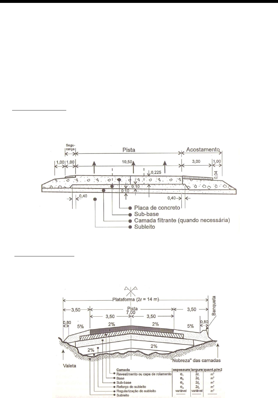 Capítulo 6 – Projeto de Pavimentação 6.1 Pavimentos 6.1.1 Definição É a estrutura construída sobre a terraplenagem e destinada, técnica e economicamente, a resistir aos esforços verticais oriundos do tráfego; melhorar as condições de rolamento quanto ao conforto e segurança; e resistir aos esforços horizontais (desgastes), tornando mais durável a superfície de rolamento. 6.1.2 Classificação O pavimento é uma estrutura constituída de diversas camadas e pode ser classificado em: a) Pavimento rígido: é constituído basicamente por uma placa de concreto (de cimento Portland, que pode ser simples, armado ou protendido) que praticamente absorve toda a solicitação, transmitindo-a tão somente ao subleito (sua fundação) de forma amortecida (por efeito de um grande espalhamento). b) Pavimento flexível: é composto por várias camadas que devem trabalhar em conjunto, cada uma delas absorvendo parte das solicitações impostas e transmitindo o restante às localizadas em níveis inferiores. Sendo o seu revestimento normalmente de misturas betuminosas. Pode-se, ainda, classificar os pavimentos quanto ao seu uso: Pavimento Rodoviário Urbano Aeroportuário As cargas que atuam sobre um pavimento urbano são da mesma ordem de grandeza das que atuam sobre um pavimento rodoviário. A carga máxima é da ordem de P = 5 Tf / roda dupla, com uma pressão variando entre 4 e 7 Kgf / cm2. Entretanto, um pavimento urbano está mais sujeito aos esforços tangenciais (acelerações positivas e negativas), principalmente nos locais de sinais de tráfego, e sofre mais a ação de águas superficiais. Os pavimentos de aeroportos estão sujeitos a uma maior “carga por roda”, a uma maior “pressão” e a uma menor “repetição de cargas” do que os pavimentos de estradas. Por exemplo: o avião Viscount apresenta P = 13 Tf / roda dupla e uma pressão de 7 Kgf / cm2; os pequenos caças a jato (F-30, F-100, etc) apresentam pressões de 14 Kgf / cm2. Embora os projetos de pavimentos, de estradas ou de aeroportos, sigam os mesmos princípios gerais, é conveniente que se estude separadamente o projeto de pavimentos de estradas que pode ser estudado simultaneamente com o projeto de pavimentos urbanos. 6.2 Camadas Para o pavimento rígido: a) Laje: cuja espessura depende fundamentalmente da resistência do concreto; b) Sub-base: é a camada que garante o apoio da laje, sendo um solo selecionado, brita, solo-cimento, etc.; c) Subleito: é o terreno de fundação do pavimento, que pode ou não necessitar de regularização. Para o pavimento flexível: a) Subleito: é o terreno de fundação do pavimento; b) Regularização: é a camada de espessura irregular, constituída sobre o subleito, tendo como objetivo o seu nivelamento, transversal e longitudinal, com o projeto; c) Reforço do subleito: é a camada de espessura constante, construída se necessário, acima da regularização, com características técnicas inferiores ao material usado na camada que lhe é superior, porém de melhor qualidade do que o material do subleito; d) Sub-base: é a camada complementar à base, quando por circunstâncias técnicas e econômicas não for aconselhável construir a base diretamente sobre a regularização ou reforço do subleito; e) Base: é a camada destinada a receber e distribuir os esforços oriundos do tráfego e sobre a qual se constrói o revestimento; f) Revestimento: é a camada, tanto quanto possível impermeável, que recebe diretamente a ação do tráfego, sendo destinada a melhorar a superfície de rolamento quanto às condições de conforto e segurança. 6.2.1 Bases rígidas a) Concreto Cimento: é uma mistura convenientemente dosada e uniformizada de agregados, areia, cimento e água nas dimensões previstas em projeto. É a base que mais se caracteriza como rígida, podendo ou não ser armada com barras metálicas. Uma placa de concreto de cimento exerce conjuntamente as funções de base e revestimento. b) Macadame de Cimento: é uma base construída com agregado graúdo – diâmetro máximo entre 50 e 90 mm – cujos vazios são preenchidos por um material de granulometria mais fina, o material de enchimento, misturado com cimento, garante além do travamento das pedras, uma razoável ligação entre elas. c) Solo Cimento: é a mistura de solo escolhido, cimento e água, em proporções convenientes e previamente determinadas. Essa mistura é uniformizada e compactada satisfazendo assim as condições exigidas para funcionar como base do pavimento. 6.2.2 Bases flexíveis a) Base de solo estabilizado: é uma camada construída com solo, satisfazendo determinadas especificações – granulometria, limite de liquidez e índice de plasticidade – cuja estabilização pode ser conseguida de forma natural ou artificial. ESTADO SÓLIDO ESTADO PLÁSTICO ESTADO LÍQUIDO Umidade (W) LP LL IP = LL - LP Quando a estabilização decorre da própria distribuição granulométrica dos grãos, permitindo a obtenção de uma base densa e relativamente impermeável, recebe o nome de base estabilizada granulometricamente. Quando a granulometria ideal é conseguida por meio de adição de pedra britada para suprir a ausência de material graúdo, a camada recebe o nome de solo brita. Essa adição e mistura do material graúdo é feita geralmente em usina. A estabilização pode ser obtida, finalmente, pela adição de um aglutinante, como o asfalto, por exemplo, recebendo o nome de solo asfalto ou solo betume. b) Base de macadame hidráulico: o macadame hidráulico é uma variante do macadame original. Trata-se de uma base ou sub-base constituída de uma ou mais camadas de pedra britada, de fragmentos entrosados entre si e material de enchimento. Este último tem a função principal de travar o agregado graúdo e a função secundária de agir eventualmente como aglutinante. A introdução do material de enchimento nos vazios de agregado graúdo é feita com auxílio de água, justificando 