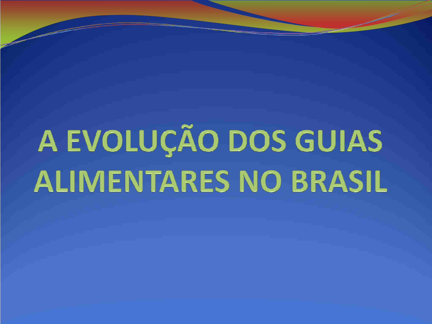 Faculdades Objetivo Curso de Graduação em Nutrição Profa Dra Ana Paula dos Santos Rodrigues Agosto, 2018 Guias alimentares... O que são? � Instrumentos que definem as diretrizes utilizadas nas escolhas alimentares saudáveis da população � Instrumentos de orientação e informação à população visando promover saúde e hábitos alimentares saudáveisvisando promover saúde e hábitos alimentares saudáveis O início � 1894 – Atwater � Publicação de tabelas de composição de alimentos e padrões dietéticos para a população norte-americana � Bases científicas para estabelecer relações entre a composição dos alimentos, consumo e saúde dos indivíduos Welsh et al. (1992) Década de 40 EUAEUA Welsh et al. (1992) No Brasil – até a década de 80 “TENHA UMA ALIMENTAÇÃO SAUDÁVEL, COMENDO UM ALIMENTO DE CADA GRUPO, EM CADA REFEIÇÃO” Oliveira e Marchini (2008) Em 1974 � Instituto de Saúde - Secretaria de Saúde do Estado de São Paulo � Publicação de documento que recomendava, ao invés da “roda de alimentos”, a representação dos alimentos em grupos � Adoção dos seis grupos para programas de orientação nutricional: � 1) leites, queijos, coalhada, iogurtes � 2) carnes, ovos, leguminosas � 3) hortaliças � 4) cereais e feculentos � 5) frutas � 6) açúcares e gorduras Philippi et al. (1999) 1992 – Departamento de Agricultura dos Estados Unidos (USDA) - Pirâmide Alimentar para a população americana 1996 – Pirâmide alimentar brasileira adaptada Dietas padrão 1.600 kcal 2.200 kcal 2.800 kcal Anexo – porções e Anexo – porções e medidas caseiras Em 2001 � Contestação da Pirâmide Alimentar Americana de 1992 - Dr. Walter Willett, presidente do Departamento de Nutrição da Harvard School of Public Health � Publicação “Coma, Beba e Seja Saudável - O Guia da Alimentação Saudável da Escola de Medicina de Harvard” � Desenho da Pirâmide usada desde 1992 – baseado em padrões científicos duvidosos e contribui para a obesidade, a saúde deficiente e mortes precoces Em 2005, USDA reformula a Pirâmide Alimentar e substituiu pela MyPyramid 2005 – A Nova Pirâmide Alimentar Philippi (2015) de 35 para 70 kcal 2006 – Guia Alimentar para a População Brasileira • Referencial teórico • Atributos da alimentação saudávelsaudável • Princípios • Diretrizes Ministério da Saúde (2006) 2006 – Guia Alimentar para a População Brasileira � Diretriz 1 - Os alimentos saudáveis e as refeições � Diretriz 2 - Cereais, tubérculos e raízes � Diretriz 3 - Frutas, legumes e verduras � Diretriz 4 - Feijões e outros alimentos vegetais ricos em proteínas� Diretriz 4 - Feijões e outros alimentos vegetais ricos em proteínas � Diretriz 5 - Leite e derivados, carnes e ovos � Diretriz 6 - Gorduras, açúcares e sal � Diretriz 7 - Água � Diretriz Especial 1 - Atividade física � Diretriz Especial 2 - Qualidade sanitária dos alimentos � Utilizando o rótulo dos alimentos Ministério da Saúde (2006) 2013 – Redesenho da Pirâmide Alimentar Azeite Maior visibilidade Inclusão de folhas Destaque para peixes, cortes mais magros e grelhados Chocolate Oleaginosas: castanha do Brasil e de caju Frutas regionais Alimentos integrais, aveia, inclusão da quinoa e cereal matinal Inclusão de folhas verde-escuras, repolho, abobrinha, etc de caju Philippi (2015) 2014 – Novo Guia Alimentar para a População Brasileira Ministério da Saúde (2014) 2014 – Novo Guia Alimentar para a População Brasileira � Parte da estrutura similar ao guia de 2006 – referencial teórico, princípios � Novas abordagens� Novas abordagens � Alimentos x nutrientes � Atitudes/comportamentos e ambiente � Sustentabilidade � Valorização do regionalismo e da culinária � Grau de processamento dos alimentos Ministério da Saúde (2014) 2014 – Novo Guia Alimentar para a População Brasileira Ministério da Saúde (2014) Atividade para próxima aula � Fazer um resumo da aula em 4 pontos principais (tópicos) sobre a evolução dos Guias Alimentares brasileiros no estilo take home message: � Informações chaves, frases sucintas� Informações chaves, frases sucintas � Exemplo: � Ponto 1 � Ponto 2 � Ponto 3 � Ponto 4 REFERÊNCIAS � BRASIL. MINISTÉRIO DA SAÚDE. Guia alimentar para a população brasileira: promovendo a alimentação saudável. 2006. � BRASIL. MINISTÉRIO DA SAÚDE. Guia alimentar para a população brasileira. 2014. � OLIVEIRA, J. E.; MARCHINI, J. S. Ciências nutricionais. São Paulo: � OLIVEIRA, J. E.; MARCHINI, J. S. Ciências nutricionais. São Paulo: Sarvier, 1998. � PHILIPPI, S. T., LATTERZA, A. R., CRUZ, A. T. R., & RIBEIRO, L. C. Pirâmide alimentar adaptada: guia para escolha dos alimentos. Revista de Nutrição, v. 12, n. 1, 65-80, 1999. � PHILIPPI, S. T. Pirâmide dos alimentos: fundamentos básicos da nutrição. São Paulo: Manole, 2015. � WELSH, S., DAVIS, C., SHAW, A. A brief history of food guides in the United States. Nutrition Today, Annapolis, v.27, n.6, p.6-11, 1992.