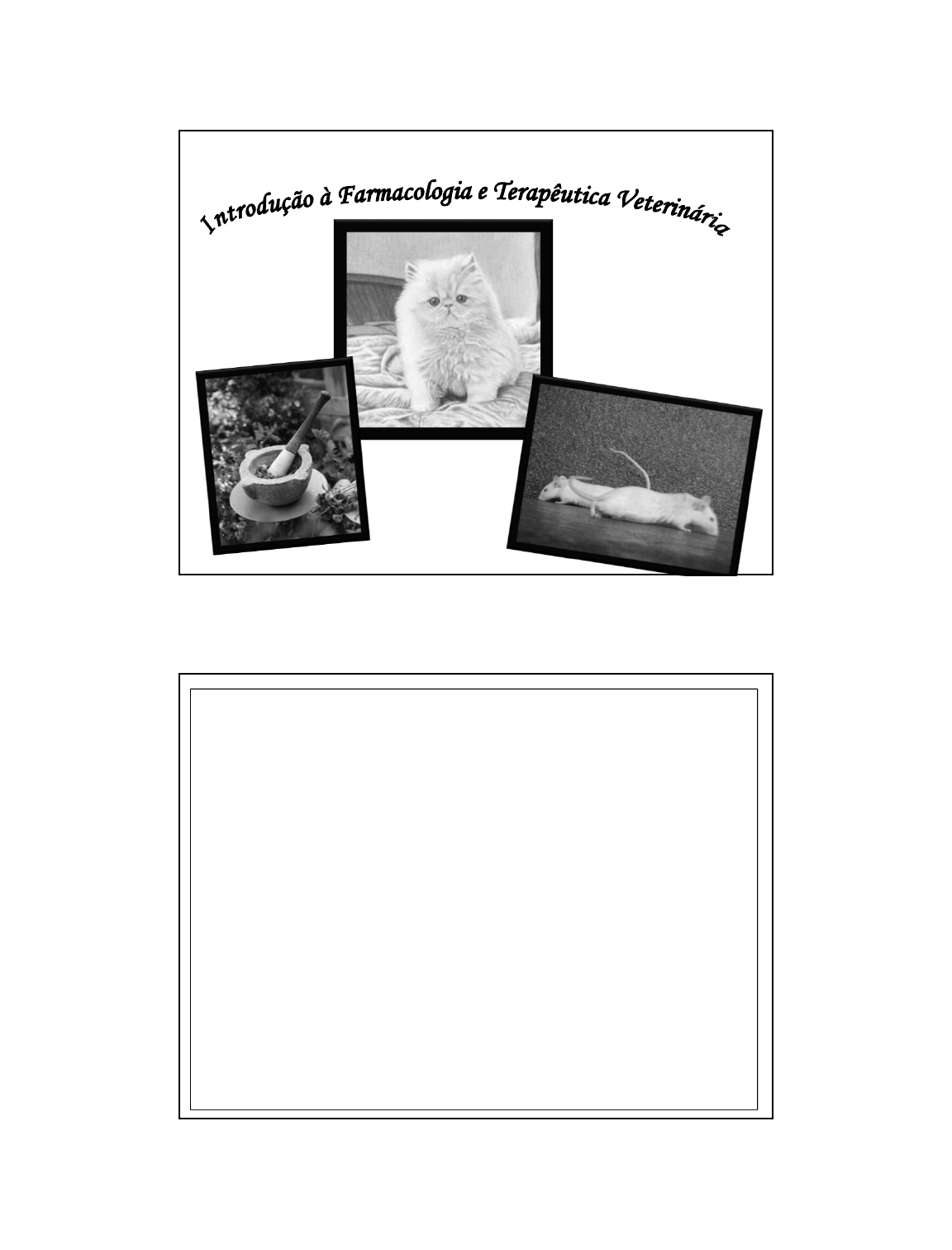 Introdução à Farmacologia Veterinária 1 1 2 Plano de aula Título: Introdução à Farmacologia e Terapêutica Veterinária Tema: Introdução à Farmacologia Veterinária Objetivos: Conhecer a história da Farmacologia Veterinária e os principais conceitos estruturantes da Farmacologia Veterinária. Conteúdo programáticos: 1. Histórico 2. Conceito 3. Conhecimentos envolvidos 4. Áreas da Farmacologia Bibliografia básica ADAMS. H.R. Farmacologia e Terapêutica em Veterinária. Ed. Guanabara Koogan. Rio de Janeiro, BR. RANG, H.P., DALE, M.M., RITTER, J.M. Farmacologia. Ed. Guanabara Koogan. Rio de Janeiro, BR. SPINOSA, H.S., GÓRNIAK,S.L., BERNARDI, M.M. Farmacologia Aplicada à Medicina Veterinária. Ed. Guanabara Koogan. Rio de Janeiro, BR. Bibliografia complementar MADDISON, J.E.; PAGE, S.W.; CHURCH. Farmacologia Clínica de Pequenos Animais. Ed. Elsevier. Rio de Janeiro. BR WEBSTER,C.R.L, Farmacologia Clínica em Medicina Veterinária. Ed. Roca. São Paulo, BR.: Roca, 2004. Introdução à Farmacologia Veterinária 2 O que é farmacologia? Por que estudar farmacologia? 3 Terapêutica Ciência ou arte de tratar os indivíduos doentes, independentemente da espécie, com o objetivo de aliviar seu sofrimento em quando possível, curá-lo definitivamente. 4 Introdução à Farmacologia Veterinária 3 Histórico 1500 A.C. - Papiro de Ebers Início da Farmacologia e da Toxicologia 800 ingredientes ativos 120-63 A.C. – Mitridates IV, O Grande 1o. Farmacólogo Mithridaticum ou Theriacum 5 40-90 - Discorides Pai da Farmácia 600 plantas medicinais 131-201 - Galeno Pai da Fisiologia Experimental 400 tratados sobre medicina Padronização de extratos Histórico 6 Introdução à Farmacologia Veterinária 4 Histórico Séculos XVII e XVIII – Evolução lenta 980-1037 – Avicena (Abu Ali Husain ibn Abdullah ibn Sina) Mecanismo de ação dos venenos Pedra de bezoar – antídoto e preventivo de doenças Introdução da cânfora e da noz- vômica 7 Histórico1493 - Paracelso Combate ao Galenismo Introduziu novos medicamentos Poucos ingredientes nas formulações 1755-1843 – Samuel Hahnemann Criador da homeopatia Semelhantes curam semelhantes 8 Introdução à Farmacologia Veterinária 5 Histórico 1783-1855 – François Magendie Médico e Fisiologista experimental Descrição dos mecanismos de ação da estricnina e emetina 1813-1878 – Claude Bernard Fisiologia Normal e Patológica Curare 9 Histórico 1854-1915 – Paul Ehrlich Toxicodinâmica e Farmacodinâmica Teoria dos receptores 1776 – Frederick Accum Detecção de contaminantes em alimentos e preparações farmacêuticas Química Analítica 10 Introdução à Farmacologia Veterinária 6 Histórico Século XX Síntese química Produtos farmacêuticos, alimentares e agrícolas 1937 - Sulfanilamida Intoxicação causada pelo solvente dietilenoglicol 11 Histórico Década de 50 Talidomida Teratogenicidade 1988 – Resolução 1/88 do Conselho Nacional de Saúde Ensaios pré-Clínicos e Clínicos Ensaios toxicológicos 12 Introdução à Farmacologia Veterinária 7 Conceitos pharmakon = substância química ou droga logos = estudo ou conhecimento farmacologia = estudo ou conhecimento das substâncias químicas ou drogas 13 Definição atual Farmacologia É um dos ramos das ciências biológicas que estuda a inter-relação entre as substâncias químicas com os seres vivos. 14 Introdução à Farmacologia Veterinária 8 Conceitos Farmacologia É a ciência que estuda a ação de substâncias químicas num organismo vivo. 15 ConceitosDroga Qualquer substância química (que não atue como alimento) que, em quantidade suficiente possa agir sobre o organismo vivo, produzindo alterações. Estas alterações podem ser tanto maléficas como benéficas. Ressalte-se que uma droga não cria funções, apenas modifica aquelas existentes. 16 Introdução à Farmacologia Veterinária 9 ConceitosMedicamento Qualquer substância química empregada num organismo vivo, visando obter-se efeitos benéficos. São substâncias químicas destinadas a curar, diminuir, prevenir e/ou diagnosticar as enfermidades. Ressalte-se que todo medicamento é uma droga, porém nem toda droga é um medicamento. 17 Conceitos Fármaco Substância de estrutura química definida capaz de modificar um sistema fisiológico ou patológico, utilizada com a intenção de benefício para o organismo receptor. 18 Introdução à Farmacologia Veterinária 10 Conhecimentos envolvidos História e Origem das drogas Suas propriedades químicas e físicas Farmacocinética Mecanismos de ação Efeitos farmacológicos Efeitos adversos, colaterais e tóxicos Usos terapêuticos Interações com outros produtos Condições de saúde do paciente 19 Áreas da farmacologia Farmacodinâmica Estuda os mecanismos de ação dos medicamentos 20 Introdução à Farmacologia Veterinária 11 Áreas da farmacologia Farmacocinética Estuda o caminho percorrido pelo medicamento no organismo animal; atualmente é dada ênfase na relação entre dose e mudanças de concentração dos medicamentos nos vários tecidos do organismo, em função do tempo decorrido após sua administração. 21 Áreas da farmacologia Farmacotécnica Estuda o preparo, a purificação e conservação dos medicamentos, visando conseguir melhor aproveitamento dos seus efeitos no organismo. 22 Introdução à Farmacologia Veterinária 12 Áreas da farmacologia Farmacognosia Trata da obtenção, identificação e isolamento de princípios ativos, isto é, matérias-primas naturais encontradas nos reinos mineral, vegetal ou animal passíveis de uso terapêutico. 23 Áreas da farmacologia Farmacologia Clínica Compatibiliza as informações obtidas no laboratório, avaliadas em animais saudáveis, com aquelas obtidas no animal alvo enfermo. 24 Introdução à Farmacologia Veterinária 13 Áreas da farmacologia Farmacoterapêutica Se refere ao uso de medicamento para o tratamento das enfermidades. 25 O que é farmacologia? Por que