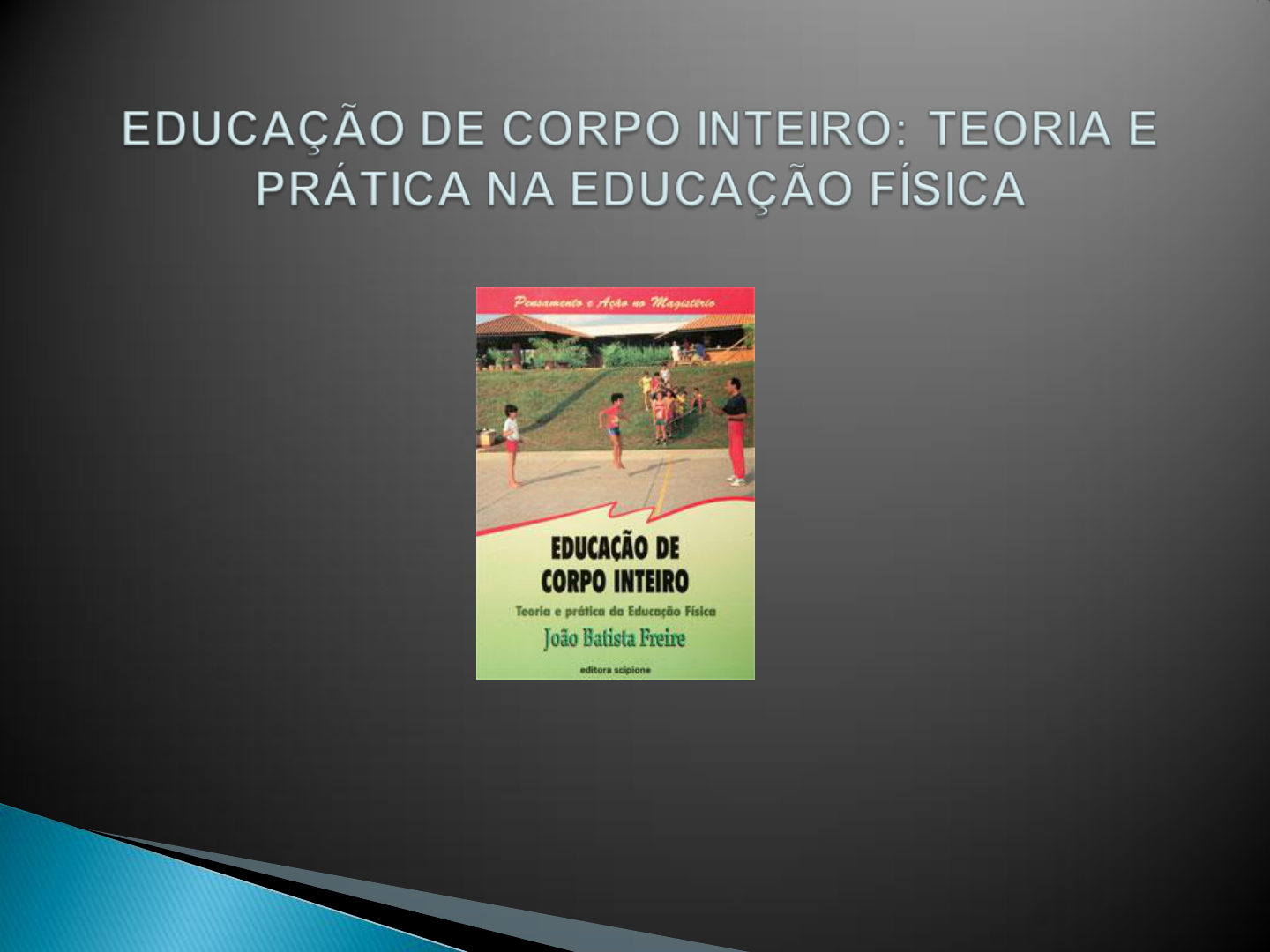 João Batista Freire EDUCAÇÃO DE CORPO INTEIRO: TEORIA E PRÁTICA NA EDUCAÇÃO FÍSICA 1 Autor: João Batista Freire da Silva Nascido em 1948; Faculdade de Educação Física de Santo André (1973); Escola de Educação Física da USP (1982); Instituto de Psicologia da USP (1991); Docente Unicamp EDUCAÇÃO DE CORPO INTEIRO: TEORIA E PRÁTICA NA EDUCAÇÃO FÍSICA Primeiro trabalho: Prefeitura de São Bernardo do Campo (1971); Crianças carentes - período de Ditadura; Forte influência em toda sua produção bibliográfica. EDUCAÇÃO DE CORPO INTEIRO: TEORIA E PRÁTICA NA EDUCAÇÃO FÍSICA Produção Bibliográfica Vasta produção; Caderno de Educação Física: A Primeira Infância (1985); Educação do corpo inteiro: teoria e prática na educação física (1989); Indicação de leitura: “A Escola Desobediente”. Revista da Fundação Esporte e Turismo (1989). EDUCAÇÃO DE CORPO INTEIRO: TEORIA E PRÁTICA NA EDUCAÇÃO FÍSICA Obra Série “Pensamento e Ação no Magistério”; Educação Física Escolar, Pedagogia do Movimento e Formação Específica para Educação Infantil; A educação física como matéria semelhante às outras, em que o professor é, acima de tudo, um educador. Corpo e mente como um só organismo. Importância do movimento (jogos e brinquedos) no desenvolvimento da criança. EDUCAÇÃO DE CORPO INTEIRO: TEORIA E PRÁTICA NA EDUCAÇÃO FÍSICA 12 CAPÍTULOS: Pedagogia do movimento na primeira infância. Pedagogia do movimento na segunda infância. Como começar, por onde ir? A respeito do jogo. Cognição. Motricidade. A questão da competição. EDUCAÇÃO DE CORPO INTEIRO: TEORIA E PRÁTICA NA EDUCAÇÃO FÍSICA Socialização. Afetividade. As relações entre a educação física e as outras disciplinas da escola. A avaliação em educação física. Aspectos da legislação brasileira sobre Educação Física. EDUCAÇÃO DE CORPO INTEIRO: TEORIA E PRÁTICA NA EDUCAÇÃO FÍSICA Temática e crítica Publicada em 1989 (pós ditadura/redemocratização); Crítica ao imobilismo do ensino escolar; Propõe que além da mente, o corpo também seja matriculado no início de cada ano letivo. EDUCAÇÃO DE CORPO INTEIRO: TEORIA E PRÁTICA NA EDUCAÇÃO FÍSICA Abordagem Movimento Renovador. Abordagem construtivista, de caráter pedagógico e social; Influências da psicologia (Jean Piaget e Jean Chateau) e psicomotricidade (Jean Le Boulch); Conhecimento construído através da interação com o meio; Uso de instrumentos pedagógicos (jogos e brinquedos) para o desenvolvimento individual motor, cognitivo, afetivo e social. EDUCAÇÃO DE CORPO INTEIRO: TEORIA E PRÁTICA NA EDUCAÇÃO FÍSICA Conclusão do autor Obra inconclusa, não há solução acabada para o problema em questão; Mudanças gradativas através das pequenas contribuições de todos. EDUCAÇÃO DE CORPO INTEIRO: TEORIA E PRÁTICA NA EDUCAÇÃO FÍSICA Opinião do grupo Falta de especificidade/Valorização Profissional; Desenvolvimento individual e social; Papel de Educador buscando desenvolvimento de corpo inteiro; Obra referência na área para o ensino no ambiente escolar. EDUCAÇÃO DE CORPO INTEIRO: TEORIA E PRÁTICA NA EDUCAÇÃO FÍSICA 11 O que essa imagem se refere ao legado de Freire? REFERÊNCIAS BIBLIOGRÁFICAS Currículo Lattes (Plataforma Lattes - CNPq). João Batista Freire da Silva. http://lattes.cnpq.br/8503911954257694 Silva , J. B. F. A Escola Desobediente. REVISTA DA FUNDAÇÃO ESPORTE E TURISMO, v.1, n.3, p.11-18, 1989. Daólio, J. Educação Física Brasileira: Autores e Atores da Década de 1980. Campinas, SP: Papirus, 1998. Ramos, B. A. A Abordagem Construtivista nas Aulas de Educação Física: Limites e Possibilidades para sua Inserção no Ambiente Escolar. http://www.artigonal.com/educacao-artigos/a-abordagem-construtivista-nas-aulas-de-educacao-fisica-limites-e-possibilidades-para-sua-insercao-no-ambiente-escolar-6021999.html EDUCAÇÃO DE CORPO INTEIRO: TEORIA E PRÁTICA NA EDUCAÇÃO FÍSICA