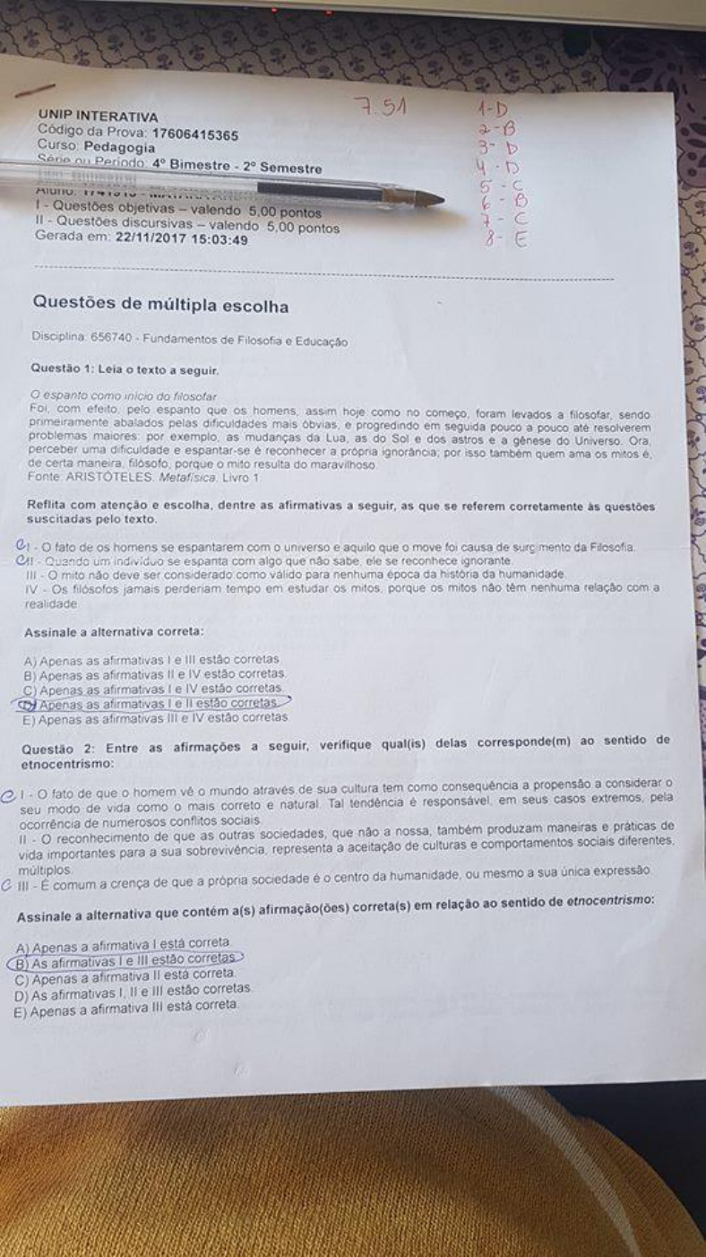 Fundamentos de Filosofia e Educação - Prova Corrigida UNIP