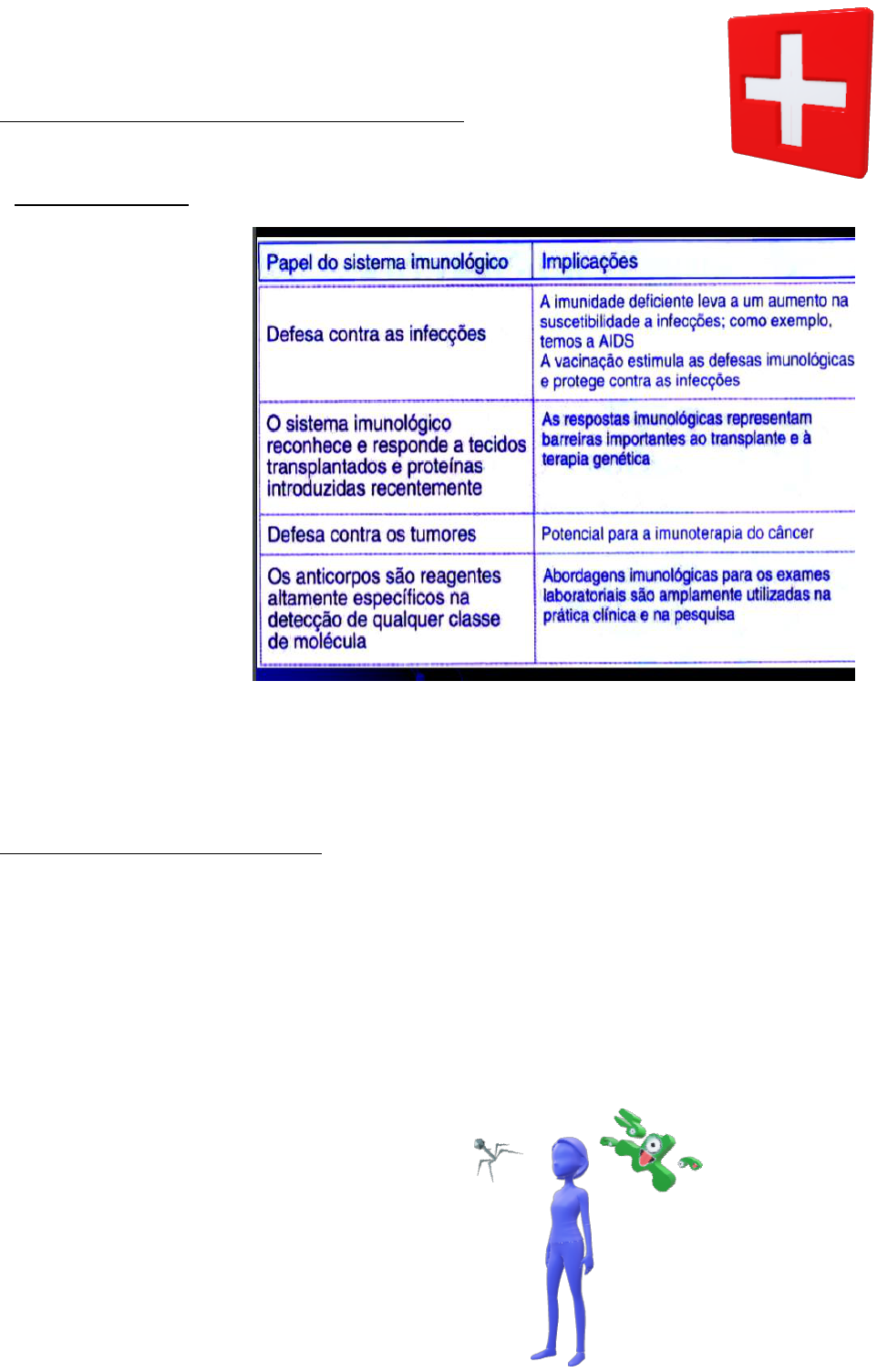 IMUNOLOGIA Igor Gabriel de Souza brito Sistema imunológico Defende com infecçoes e elimina com infecçoes pré estabeleciadas Defende contra células alteras ( tumosas ) Disfunções hipersensibilidade ( alergias) Doenças Autoimunes Reconhece células e tecidos estranhos (transplantes ) Todas áreas da medicina deve saber essa área da imunologia Metodos imunológicos de diagnósticos Principais Funções do Sistema Imune ➢ Reconhecimento e Eliminação de Moléculas Alteradas e Células Lesadas e/ou Mortas do próprio organismo. ➢ Reconhecimento e Eliminação de Agentes Infecciosos (Vírus, Bactérias, Fungos, Protozoários, Helmintos) ➢ Reconhecimento e Eliminação de Células Tumorais (Vigilância Imunológica no Câncer). ➢ Reconhecimento e Eliminação de Células, Tecidos e/ou Órgãos de Origem Genética Diferente (Alo ou Xeno-Enxertos ou Transplantes). Timo : Regiao mais interna – Linfocitos Externa – Macrofagos •As células do sistema imune são produzidas diariamente pela medula óssea (MO). •Os linfócitos T tornam-se maduros no timo. Timo : Regiao mais interna – Linfocitos Externa – Macrofagos • A MO e o timo são órgãos linfóides primários. Composição : Tecidos e órgão -Geradores : Medula óssea e Timo ( com a idade vai degenerando ) -Periféricos : sangue , tecido linfático e linfonodos ( tonsilas e adenoides ) -Baço , Apêndice , placas de peyer. Células : Leucócitos-Globulos brancos ( linfócitos , neutrófilos , basófilos eosinófilos e monócitos ) **Monócitos origina os macrófagos** •Função: defesa do organismo contra infecções ⚫ Produzidos a partir de células da medula óssea e podem migrar do sangue para outras regiões ⚫ 5 tipos: Linfócito, Neutrófilo, Eosinófilo, Basófilo, Monócito (Macrófago) OBS: Macrofagos : APCs Células apresentadoras de antígenos ( são células capazes de fagocitar e mostrar ao linfócitos T , que há invasores ) . E dentro desses APCs há os , Macrofagos e células dendríticas ( fica restrita ao Sistema nervoso ) . •Os leucócitos- são classificados, de acordo com a sua estrutura vista em microscópio óptico, em granulosos e agranulosos. Existem três tipos de leucócitos granulosos: os neutrófilos, os eosinófilos e os basófilos; enquanto os leucócitos agranulosos podem ser de dois tipos: os monócitos e os linfócitos. Os neutrófilos se originam das células-tronco mieloides e representam aproximadamente de 60% a 70% dos leucócitos do sangue humano. Essas células têm como principal função fagocitar bactérias e outros microrganismos que invadem o nosso corpo. Por terem grande mobilidade, essas células saem com extrema facilidade dos vasos sanguíneos e entram nos tecidos infeccionados para fagocitar microrganismos e outras partículas estranhas. O pus que observamos em alguns ferimentos é constituído principalmente por neutrófilos. eosinófilos, também chamados de acidófilos, representam cerca de 2% a 4% dos leucócitos do sangue humano. Têm como principal função combater invasores de grande tamanho, como vermes parasitas. Eles combatem esses vermes liberando proteínas tóxicas, íons peróxidos e enzimas, com o objetivo de destruir esses organismos. basófilos representam de 0,5% a 1% dos leucócitos do sangue humano. Apesar de liberarem histamina, ainda não se sabe ao certo a sua real função. A histamina é uma substância que desempenha papel muito importante nas inflamações e respostas alérgicas, facilitando a saída de anticorpos e neutrófilos para locais onde há invasores. Essa substância é a responsável pela vermelhidão, inchaço e coceira nos ferimentos, além de promover o aumento da coriza e a contração da musculatura dos brônquios. Outra substância produzida pelos basófilos é chamada de heparina, que tem propriedades anticoagulantes. monócitos são células sanguíneas grandes e representam de 3% a 8% dos leucócitos do sangue humano. Assim que são produzidos na medula óssea, os monócitos migram para os tecidos onde se transformam em macrófagos, fagocitando microrganismos e células mortas. LINFOCITO -Os linfócitos são um tipo de células brancas do sangue (leucócitos), produzidos na medula óssea vermelha. - Linfócito T - possuem a função de fabricar os anticorpos do sangue, atuando também na imunidade celular. - Linfócito B - são responsáveis pelo reconhecimento dos antígenos (corpos estranhos que entram no corpo humano). Produzem os anticorpos contra os antígenos. - Células NK (Natural Killers) - totalizam cerca de 10% dos linfócitos presentes no sangue. Possuem a capacidade de atacar e destruir células hostis ao corpo humano. Moléculas : Anticorpos ou Imunoglobulinas ( IgG , IgA , IgM , IgE , IgD ) com a função de reconhecer, neutralizar e marcar (opsonizar) antígenos para que eles sejam eliminados ou fagocitados pelos macrófagos. Os anticorpos são produzidos pelos linfócitos B e têm a capacidade de se combinar especificamente com substâncias estranhas ao corpo, inativando-as. Produzidas por linfócitos B Citocinas : são proteínas sinalizadoras , dependendo o tipo dela vai mandar sinal pra uma célula que vai produzir uma resposta voltada pra imunologia . Ex : Interferon e Interleucina . Sistema complemento : Proteinas que atuam em cascata , uma vai ativando a outra dando uma resposta final . → Imunoglobulina A (IgA): é o tipo de imunoglobulina predominante em secreções como saliva, lágrima, leite, mucosas do trato gastrintestinal, trato respiratório e geniturinário. → Imunoglobulina D (IgD): esse tipo de imunoglobulina é encontrado no sangue em concentrações baixas e a sua função ainda não está bem definida pelos cientistas. → Imunoglobulina E (IgE): presente em baixas concentrações, esse tipo de imunoglobulina é encontrado na superfície dos mastócitos, eosinófilos e basófilos, sendo muito importante no combate a parasitas helmintos e também às reações alérgicas