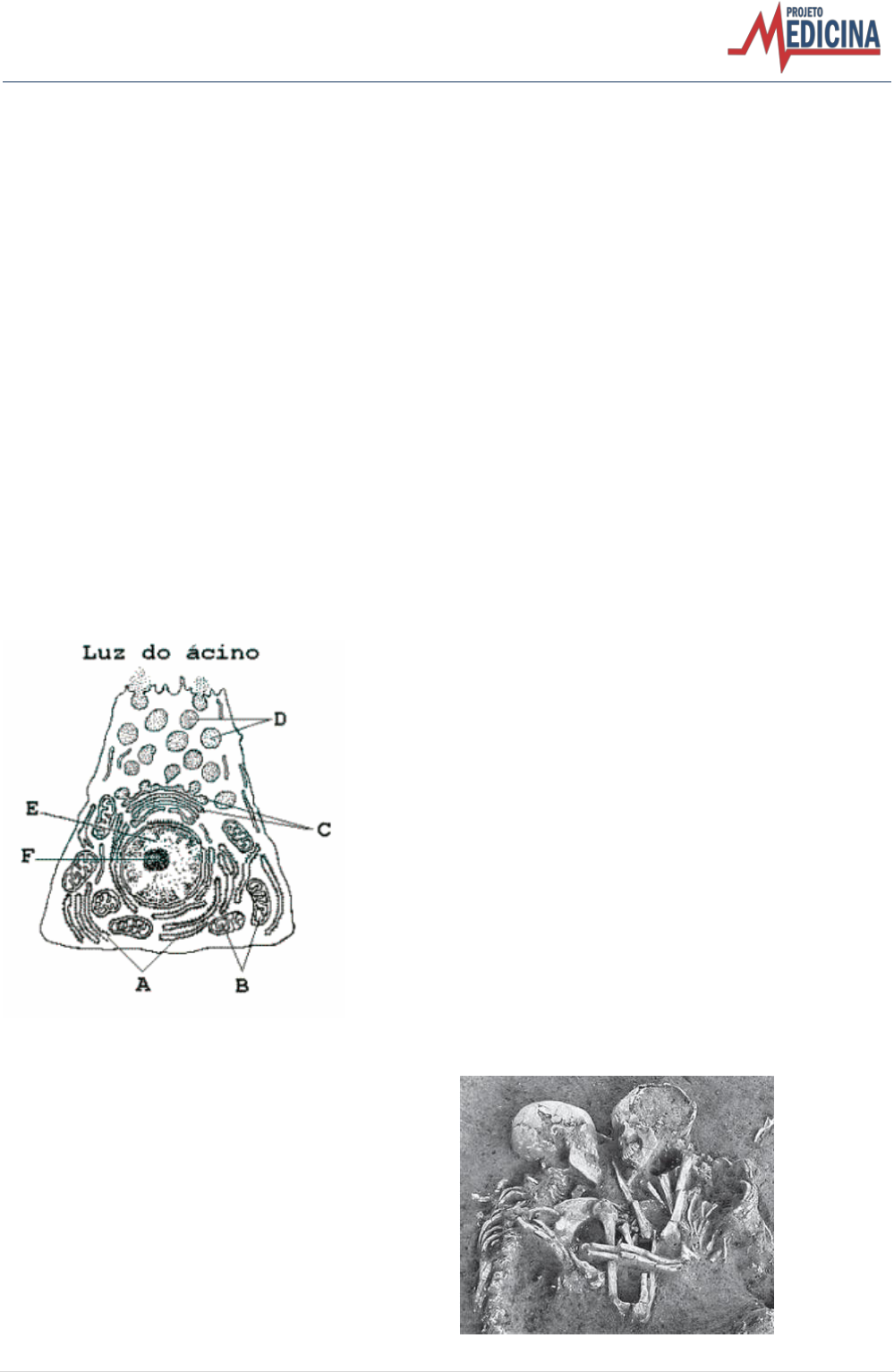 1 | Projeto Medicina – www.projetomedicina.com.br Exercícios sobre Organelas Citoplasmáticas com Gabarito 1) (Vunesp-1999) Os açúcares complexos, resultantes da união de muitos monossacarídeos, são denominados polissacarídeos. a) Cite dois polissacarídeos de reserva energética, sendo um de origem animal e outro de origem vegetal. b) Indique um órgão animal e um órgão vegetal, onde cada um destes açúcares pode ser encontrado. 2) (UFV-1996) As mitocôndrias, organelas celulares relacionadas com a produção de energia (ATP), estão presentes em: a) células animais e vegetais. b) eucariotos e procariotos. c) células animais apenas. d) células vegetais apenas. e) procariotos. 3) (Fuvest-1999) O esquema representa um corte de célula acinosa do pâncreas, observado ao microscópio eletrônico de transmissão. a) Identifique as estruturas apontadas pelas setas A, B, e C, e indique suas respectivas funções no metabolismo celular. b) Por meio da ordenação das letras indicadoras das estruturas celulares, mostre o caminho percorrido pelas enzimas componentes do suco pancreático desde seu local de síntese até sua secreção pela célula acinosa. 4) (PUC-RS-2000) Sabe-se que os mitocôndrios representam a célula importantes locais de utilização do oxigênio. Porém, além deles, temos outras organelas que também utilizam o oxigênio de maneira igualmente importante à vida celular, não formando, no entanto, ATP O texto acima se refere aos a) lisossomos. b) microtúbulos. c) peroxissomos. d) microfilamentos. e) fagossomos. 5) (UEL-1994) A produção de ATP numa célula animal ocorre, fundamentalmente: a) nos golgiossomos. b) nos cromossomos. c) nos lisossomos. d) nos ribossomos. e) nas mitocôndrias. 6) (Unitau-1995) O retículo endoplasmático rugoso é responsável pela síntese e transporte de proteínas. No entanto, a síntese protéica é realizada por grânulos, que estão aderidos a ele, denominados de: a) mitocôndrias. b) ribossomos. c) lisossomos. d) cloroplastos. e) fagossomos. 7) (UECE-2007) Certas organelas produzem moléculas de ATP e outras utilizam o ATP produzido, pelas primeiras, para a síntese orgânica a partir do dióxido de carbono. Estamos falando, respectivamente, de a) lisossomos e cloroplastos. b) mitocôndrias e complexo de Golgi. c) mitocôndrias e cloroplastos. d) lisossomos e mitocôndrias. 8) (ETEs-2007) Um par de esqueletos humanos, datados pelos arqueólogos como sendo do período Neolítico (com 5 ou 6 mil anos), foi encontrado perto de Mantova, Itália, num eterno abraço. 2 | Projeto Medicina – www.projetomedicina.com.br (Disponível em: <http://opelourinho.blogspot.com/search/ label/arqueologia> acessado em: fev. 2007.) O DNA mitocondrial, presente no citoplasma das células, é de herança materna, posto que o citoplasma do zigoto provém do óvulo. Esse DNA sofre poucas modificações e, por essa razão, vem sendo utilizado em muitos estudos antropológicos. Se, no caso do achado arqueológico na Itália, for constatado que o DNA das mitocôndrias dos dois esqueletos são diferentes, pode-se concluir que se trata de a) mãe e filho. b) mãe e filha. c) irmão e irmã. d) gêmeos fraternos. e) filhos de mães diferentes. 9) (UFSCar-2008) Em uma célula vegetal o material genético concentra-se no interior do núcleo, o qual é delimitado por uma membrana. Além dessa região, material genético também é encontrado no interior do a) retículo endoplasmático e complexo Golgiense. b) complexo Golgiense e cloroplasto. c) lisossomo e retículo endoplasmático. d) lisossomo e mitocôndria. e) cloroplasto e mitocôndria. 10) (Vunesp-2000) Observe o esquema. Um biólogo, ao analisar esse esquema hipotético, observou que as mitocôndrias e cloroplastos originaram- se de um ancestral procarionte e se associaram a determinados tipos de células. As mitocôndrias estão presentes no citoplasma de células animais, células vegetais e nos fungos, enquanto os cloroplastos são encontrados em células fotossintetizantes, estabelecendo-se entre eles relações harmônicas de mutualismo. Tendo-se como referência estas informações e o esquema, responda. a) Que vantagens as mitocôndrias oferecem às células hospedeiras e o que elas proporcionam às organelas? b) Quais as vantagens proporcionadas ao meio ambiente pelos cloroplastos? 11) (Vunesp-2002) Analise a figura. O organóide mencionado é o vacúolo contrátil, presente em alguns seres protistas. a) Quais as principais funções desta organela citoplasmática, e em que grupo de protistas ela está presente? b) Em quais condições ambientais esta organela entra em atividade? 12) (PUC-RS-1999) Um biologista, estudando a estrutura de uma célula bacteriana, iria encontrar, como uma organela deste tipo celular, o a) cloroplasto. b) retículo endoplasmático liso. c) centríolo. d) ribossomo. e) retículo endoplasmático rugoso. 13) (Fatec-1996) "A silicose é uma doença muito comum em trabalhadores que lidam com amianto. Um dos componentes do amianto é a sílica, uma substância inorgânica que forma minúsculos cristais que podem se acumular nos pulmões. As células dos alvéolos pulmonares afetadas por estes cristais acabam sofrendo autólise". Essa doença está relacionada com organóides citoplasmáticos denominados: a) plastos. b) lisossomos. c) dictiossomos. d) mitocôndrias. e) centríolos. 14) (Mack-1997) Células musculares, células glandulares e células de um microorganismo de água doce, deverão ter bem desenvolvidas as seguintes organelas, respectivamente: a) cloroplastos, mitocôndrias e centríolos. b) complexo de Golgi, retículo endoplasmático liso e lisossomos. c) mitocôndrias, complexo de Golgi e vacúolo contrátil. d) retículo endoplasmático rugoso, mitocôndrias e complexo de Golgi. e) centríolos, vacúolo contrátil e lisossomos. 15) (FEI-1995) As enzimas contidas nos lisossomos são sintetizadas pela célula à partir do: a) complexo de Golgi b) R.E.L