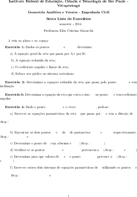 e) Determinar para que valores de m e n o ponto F (m, 5, n) pertence a r. (Resp.: m = 1