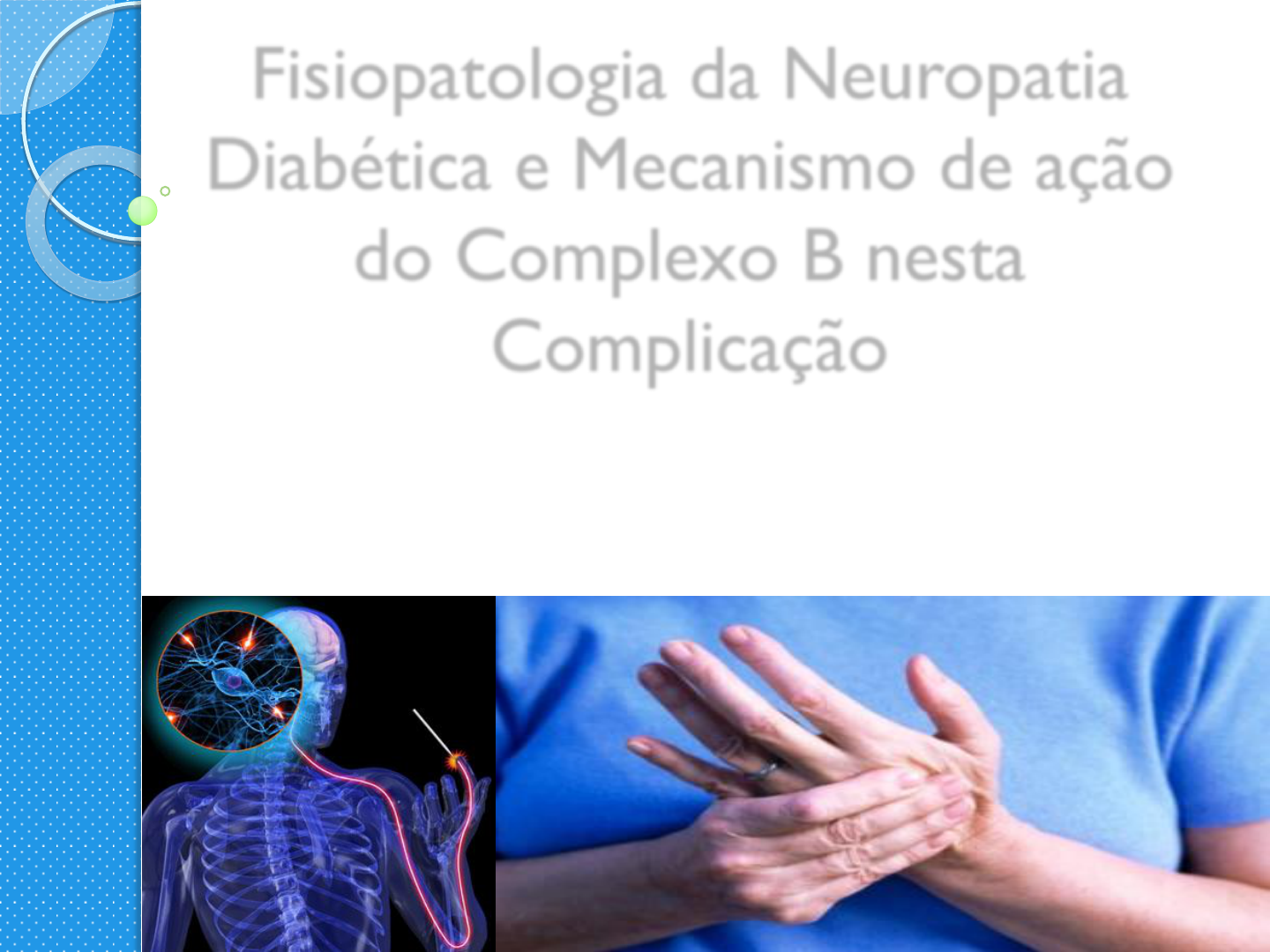 Fisiopatologia da Neuropatia Diabética e Mecanismo de ação do Complexo B nesta Complicação Aluna: Karina Gislene de Matos Profª: Márcia Clélia Leite Marcellino (imagens: Google) Neuropatia Diabética Complicação crônica afeta mais de 50% dos pacientes DM I, DMII Sistema nervoso Periférico Somático e Autonômico perda da qualidade de vida exclusão de outras causas (Schmid, Helena 2007) Polineuropatia generalizada simétrica Forma mais comum início duvidoso relacionado à descompensação metabólica do diabetes pode estar presente na época do diagnóstico do diabetes mellitus tipo 2 mais de 10% dos pacientes decorrência DM2 permanecer assintomático por longos períodos; ocorrência de neuropatia em pacientes com intolerância à glicose ainda sem critérios laboratoriais para diagnóstico de DM2 (Schmid, Helena 2007) TIPOS Neuropatia sensitivo-motora crônica maioria assintomática porém, cerca de 10% apresentam sintomas sensitivos incapacitantes requer tratamento específico quase invariavelmente acompanhado de disfunção autonômica sequelas tardias: úlceras podais, em muitos casos necessidade de amputações e outras. (Schmid, Helena 2007) (imagem: Google) Fisiopatologia Atrofia e a perda de fibras mielinizadas e não-mielinizadas Degeneração Walleriana Desmielinização paranodal e segmentar Fraca resposta regenerativa Diminuição na velocidade de condução nervosa (DIAS, R. J. S. & CARNEIRO, A. P. 2000) (imagens: Google) Sintomas Sensação de queimação, dormência, formigamento fadiga e câimbra redução na sensibilidade de membros em relação à temperatura extrema sensibilidade ao toque dor ao caminhar, e outros (NASCIMENTO ,L. T, R., LOPES, B. C. Et all, 2015.) Estresse oxidativo mediador do dano hiperglicêmico aos tecidos aumento na formação de radicais livres tanto pela via poliol , quanto pelos produtos finais da glicosilação avançada e metabolismo prostanóides formação da microangiopatia alteração no potencial transmembrana (DIAS, R. J. S. & CARNEIRO, A. P. 2000) Via Vascular Redução no fluxo sangüíneo nervoso aumento de resistência vascular alterações vasculares: edema, agregação plaquetária e oclusões de vasos perda de fibras mielinizadas característica do diabetes mellitus: dano secundário à isquemia e hipóxia (SCHMID, Helena 2007) (imagem: Google) Dislipidemia (NASCIMENTO O.J, PUPE C.C e CAVALCANTI E.B, 2016) Dano à célula de Schawnn cofator Citocinas pró inflamatórias Stress Oxidativo (imagens: Google) Tratamento Antioxidantes Suplementação de mioinositol Reposição intensiva de Insulina Inibidores da Aldose redutase Controle dos sintomas com fármacos como: Antidepressivos tricíclicos, analgésicos, analgésicos opióides, anticonvulsivantes, fenitoína, complexo B. Tópico: Capsaicina (Moment®) (imagens: Google) Complexo B pertencem ao grupo das vitaminas hidrossolúveis compostas pela tiamina(B1) , riboflavina(B2), niacinamida(B3), piridoxina(B6), cianocobalamina (B12) , ácido fólico(B9), ácido pantotênico,(B5) biotina(B7), colina, inositol e ácido para-aminobenzóico (PABA). no tratamento da dor estão principalmente as vitaminas B1 (tiamina), B6 (piridoxina) e B12 (cianocobalamina) (GAZONI M. F. , MALEZAN, Et. All 2016) (Imagem: www.conquistesuavida.com.br ) Vitamina B1 - Tiamina (RUA, Ana Sofia dos Santos 2013) Benfotiamina → Vitamina B1 Enzima → Transcetolase ( Frutose → Pentose ↓ Frutose ↓ Via das hexosaminas, NF-KB proteína cinase C e AGE ↓ Produção AGE ↓ STRESS OXIDATIVO PREVENÇÃO DA DISFUNÇÃO DO ENDOTÉLIO VASCULAR Redução dos Sintomas neuropáticos Melhora na função motora Redução da dor neuropática Melhoria da função sensitiva e da percepção de vibração Possíveis mecanismos analgésicos e anti-neurálgicos (GAZONI M. F. , MALEZAN, Et. All 2016) Via descendente Inibitória da dor + Seratonina + Noradrenalina disponibilidade e efetividade B1, B12 - regeneração parcial de fibras de nervos danificados; - estabilização da excitabilidade elétrica dos nervos inibindo descargas ectópicas - e melhoria no transporte axonal, aumentando a velocidade de condução nervosa Referências DIAS, Rafael José Soares ; Carneiro, Armando Pereira. Neuropatia diabética: fisiopatologia, clínica e eletroneuromiografia. Acta Fisiátr. 2000;7(1):35-44 Disponível em < http://www.actafisiatrica.org.br/detalhe_artigo.asp?id=332> Acesso 09 Mar. 2017. GAZONI, Fernanda Martins; MALEZAN, William Rafael; SANTOS, Fânia Cristina. O uso de vitaminas do complexo B em terapêutica analgésica. Rev. dor, São Paulo , v. 17, n. 1, p. 52-56, Mar. 2016 Disponível em <http://www.scielo.br/scielo.php?script=sci_arttext&pid=S1806- 00132016000100052&lng=en&nrm=iso>. Acesso 09 Mar. 2017. NASCIMENTO, Osvaldo José Moreira do; PUPE, Camila Castelo Branco; CAVALCANTI, Eduardo Boiteux Uchôa. Neuropatia diabética. Rev. dor, São Paulo , v. 17, supl. 1, p. 46- 51, 2016 . Disponível em <http://www.scielo.br/scielo.php?script=sci_arttext&pid=S1806- 00132016000500046&lng=en&nrm=iso>. Acesso 09 Mar. 2017. PEDROSA, Hermelinda; Neuropatia diabética periférica. Diabetes.org.br. Disponível em < http://www.diabetes.org.br/ebook/component/k2/item/39-neuropatia-diabetica-periferica> Acesso 09 Mar. 2017. RUA, Ana Sofia dos Santos. Tratamento da Neuropatia Periférica – Fármacos Modificadores de Doença Porto, 2013 . Disponível em https://repositorio- aberto.up.pt/bitstream/10216/71789/2/30665.pdf Acesso em 09 Mar. 2017. SCHMID, Helena. Impacto cardiovascular da neuropatia autonômica do diabetes mellitus. Arq Bras Endocrinol Metab, São Paulo , v. 51, n. 2, p. 232-243, Mar. 2007 . Disponível em <http://www.scielo.br/scielo.php?script=sci_arttext&pid=S0004- 27302007000200012&lng=en&nrm=iso>. Acesso em 09 Mar. 2017.