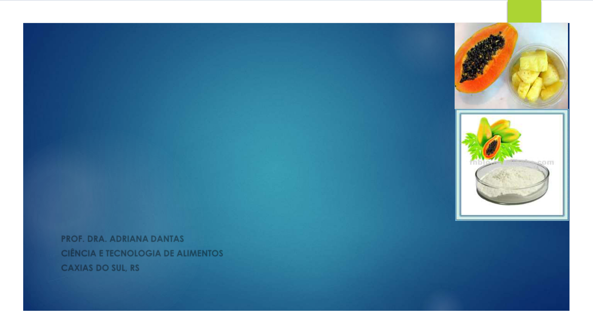 Bioquímica de Alimentos Proteases PROF. DRA. ADRIANA DANTAS CIÊNCIA E TECNOLOGIA DE ALIMENTOS CAXIAS DO SUL, RS Introdução Proteinases Principal função é a hidrólise de proteínas; Envolvidas no processo de digestão, ativação de enzimas e no transporte de proteínas pelas membranas; A posição da ligação da cadeia polipetidica e o tamanho da cadeia influenciam na sua atividade; Apresentam grau de especificidade em relação aos aminoácidos envolvidos na ligação e na sua posição na molécula. As enzimas são proteínas, cadeias de aminoácidos. Enzimas que catalisam a quebra das ligações peptídicas em proteínas através da utilização de água são chamadas hidrolases. Hidrólise das proteína Favorece a digestão e absorção pelo organismo Formação de compostos responsáveis pelo aroma e textura especificos; Proteases (EC 3.4) são enzimas que pertencem ao grupo das hidrolases Catalisam a reação de hidrólise das ligações peptídicas das proteínas Atividades também nas ligações éster e amida. Especificidade das Proteases Diferentes proteases resultam em diferentes produtos de hidrolises Enzimas proteases produzidas em escala comercial 75% são hidrolases; Destas, 60% são proteases 25% proteases alcalinas 10% quimiosina 3% tripsina 21% outras; Modo de ação As proteases são classificadas pelo modo de ação pelo seu sítio catalítico: Exopeptidases atuam nas extremidade da cadeia polipeptidica Endopeptidases agem nas ligações no interior da cadeia proteica Exopeptidases 1. Aminopeptidases Proteases que agem na extremidade N-terminal da cadeia polietitidaica Liberam aminoacidos livres, dipeptidios ou tripepetidios Geralmente são metalo- proteases Exopeptidases 2. Carboxipeptidases Proteases que agem na extremidade C-terminal da cadeia polipeptidica Liberam aminoacidos livres ou dipeptidios; São as serina-proteases, metalo-proteases ou cisteina-proteases Classificadas pela natureza quimica de seu sitio ativo. Carboxipeptidase A carboxipeptidase é uma enzima digestiva. A hidrólise completa de uma proteína leva à separação dos resíduos dos aminoácidos componentes dessa proteína. Serina-proteases (EC 3.4.21) Presença do aminoácido serina no sitio ativo Inibidas irreversivelmente: 3,4-dicloroiscocumarina (3,4-DCI) Disopropilfluorofosfato (DFP) Fluoreto de fenilmetilsulfonila (PMSF) Serina-proteases Ativas em pH neutro e alcalino. Principais exemplos: tripsina, quimiotripsina e subtilisina. Classe Exemplo Aminoácidos do Sítio Ativo Serina-Protease Quimitripsina Substilisina His57, Asp102, Ser195 His32, His64 Ser221 Histidina, Ácido aspártico, Serina. Cisteína-proteases ou proteases sulfidrilicas (EC 3.4.22) Apresentam em seu sitio ativo cisteina conjugada com histidine Mais ativas em meios de pH neutron do que ácido Ativadas na presença de agentes oxidantes e substância reagem com grupo sulfidril, p-cloromercuriobenzoato (PCMB) Bromelina, ficina e papaina são as principais cisteina-proteases Classe Exemplo Aminoácidos do Sítio Ativo Cisteína-Protease Papaína Cys25, His159,Asp158 Císteina, Histidina, Ácido aspártico Proteases aspárticas ou acidas (EC 3.4.23) Contém ácido aspartico em seu sitio ativo; Inibidas por 1,2-epoxy-3-p-nitrofenoxipropano (EPNP) na presencça de íons cobre; Maior atividade em valores de pH ácido e maior afinidade por ligações que envolvem aminoacidos apolares e aromáticos Pepsina e a renina Proteases microbianas fungicas gêneros Aspergillus, Penicillium, Rhizopus, Neurospora, Endothia e Rhizomucor Classe Exemplo Aminoácidos do Sítio Ativo Protease aspártica Pepsina de Peniciluim sp. Asp33 , Asp213 O mecanismo geral de base-ácido para a hidrólise do polipeptidio catalisado por proteases aspárticas (Figura), Requer um resíduo Asp, a fim de ser protonado, enquanto o segundo não é ionizado; Os dois aspartatos compartilhar um protões a um pH fisiológico; A ligação amida sofre ataque por uma molécula de água que é ativado pelo resíduo de ácido aspártico catalítico desprotonado. Metalo-Proteases Dependem de íons metálicos divalentes para sua atividade; Inibidas por agentes quelantes, como ácido etilinodiaminotetracético (EDTA) Classe Exemplo Aminoácidos do Sítio Ativo Metalo-protease Carboxipeptidase Zn , Glu270, Try248 Neutras: colagenases de Costridium bystoliticum elastases de Pseudomonas aeruginosa Termolisina - protease neutra comercial de alta termoresistência Alcalinas: gêneros Serratia e Myxobacter, com atividade pH 7,0 a 9,0 Proteases Vegetais Mais empregadas na indústria de alimentos Consideradas seguras para consumo humano Papaina, bromelina e ficina Papaina (EC. 3.4.22.2) É uma cisteína-protease extraída do látex dos frutos do mamoeiro (Carica papaya) Comercializada a forma de extrato bruto que contem: Papainas (QP-A) Quimopapaina (QP-B) Apresenta atividade proteolítica em valores de pH 5,0 a 9,0 Enzima permanece estável até 90º C Apresenta atividade sobre ligação éster e amida e boa atuação na síntese de peptídeos Bromelina (EC. 3.4.22.4) É uma cisteina-protease extraída do pendúnculo do fruto do abacaxizeiro (Ananas comusus) Atividade ótima pH 6,0 a 8,0 Perda atividade > 70º C Ficina Extraída do látex de diversas espécies do gênero Ficus Apresenta maior atividade: pH 6,0 a 8,0 Temperatura estável até 60º C Baixa especificidade de substrato e hidrolisa ligações que envolve diversos aminoácidos Proteases microbianas São excelentes fontes de enzimas em razão da grande diversidade e produção em escala Representam 40% do total utilizado no mercado de enzimas Origem bacterianas Gênero Bacillus e Geobacillus Proteases neutras: Ativas pH 5,0 a 8,0 Baixa estabilidade térmica Preferência ligações hidrofóbicas Proteases alcalinas: pH 8,0 a 11,0 – temperatura 50 a 60º C Baixa especificidade de substrato mais utilizadas na indústria de detergentes Origem fúngica Aspergillus oryzae produz três proteases extracelulares Extrato 