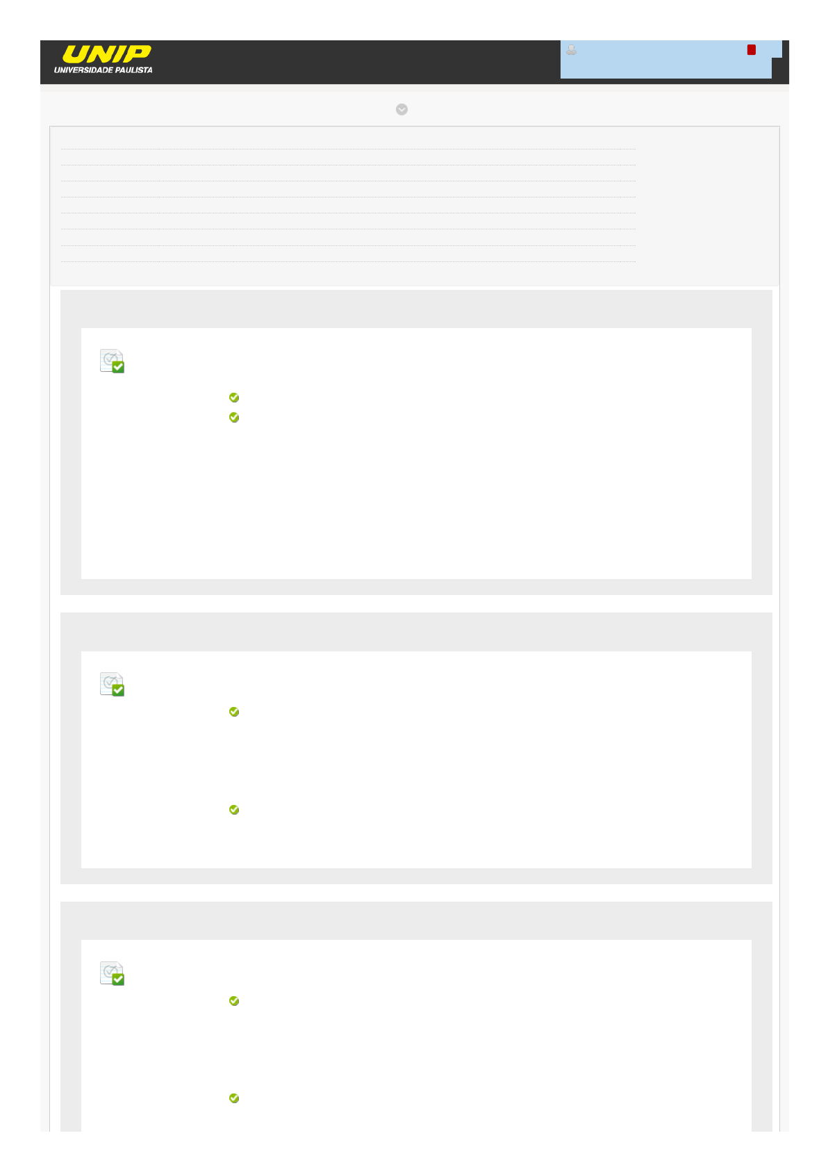 27/08/2018 Revisar envio do teste: QUESTIONÁRIO UNIDADE I – 5467-20... https://ava.ead.unip.br/webapps/assessment/review/review.jsp?attempt_id=_6716265_1&course_id=_18390_1&content_id=_287049_1&return_content=1&step= 1/8 Revisar envio do teste: QUESTIONÁRIO UNIDADE IPrática de Ensino: Vivência no Ambiente Educativo 5467-20_59625_R_20182 CONTEÚDO Usuário lucimara.araujo @unipinterativa.edu.br Curso Prática de Ensino: Vivência no Ambiente Educativo Teste QUESTIONÁRIO UNIDADE I Iniciado 27/08/18 13:21 Enviado 27/08/18 13:22 Status Completada Resultado da tentativa 10 em 10 pontos Tempo decorrido 0 minuto Resultados exibidos Todas as respostas, Respostas enviadas, Respostas corretas, Comentários, Perguntas respondidas incorretamente Pergunta 1 Resposta Selecionada: a. Respostas: a. b. c. d. e. Feedback da resposta: Nos cursos de licenciaturas, as disciplinas diretamente relacionadas com a formação como professores são denominadas de: didático-pedagógicas. didático-pedagógicas. didáticas. práticas de ensino. pedagógicas. estágio curricular supervisionado. Resposta correta: A O conjunto das disciplinas diretamente relacionadas com a formação de professores recebe o nome de didático-pedagógicas. Envolve as práticas de ensino, didáticas, Psicologia do Desenvolvimento e da Aprendizagem, Estrutura e Funcionamento da Educação Básica e Planejamento e Políticas Públicas da Educação. Pergunta 2 Resposta Selecionada: e. Respostas: a. b. c. d. e. Feedback da resposta: Complete a frase: “A ______________ é o título acadêmico oferecido nos cursos de licenciatura, que depende do ______________ como uma das condições para esta obtenção”. licença; estágio. colação de grau; aluno estagiário. licença; histórico escolar. carga horária; estágio. colação de grau; histórico escolar. licença; estágio. Resposta correta: E Esta questão visa �xar a ideia de que o estágio é condição para a obtenção da licença, obrigatoriamente. Pergunta 3 Resposta Selecionada: e. Respostas: a. b. c. d. e. Feedback Complete a frase: “Em termos de método a ser adotado, a prática deve ser desenvolvida com ênfase na ______________ e na ______________ de acordo com a Resolução CNE/CP 1/2002. observação; re�exão. teoria; prática. compreensão; análise. re�exão; avaliação. análise; síntese. observação; re�exão. Resposta correta: E CONTEÚDOS ACADÊMICOS BIBLIOTECAS MURAL DO ALUNO TUTORIAIS lucimara.araujo @unipinterativa.edu.br 1 UNIP EAD 1 em 1 pontos 1 em 1 pontos 1 em 1 pontos 27/08/2018 Revisar envio do teste: QUESTIONÁRIO UNIDADE I – 5467-20... https://ava.ead.unip.br/webapps/assessment/review/review.jsp?attempt_id=_6716265_1&course_id=_18390_1&content_id=_287049_1&return_content=1&step= 2/8 da resposta: Dentre essas alternativas, “observação” e “re�exão” são as requeridas dos alunos pela legislação citada. Por isso, inclusive, estes termos foram incluídos na nomenclatura de algumas das disciplinas da dimensão prática do curso (PE: “Observação e projeto” e PE: “Re�exões”). Pergunta 4 Resposta Selecionada: d. Respostas: a. b. c. d. e. Feedback da resposta: Complete a lacuna: “Esta disciplina (Prática de Ensino: Vivência no Ambiente Educativo) e o estágio a ela relacionado visam capacitá-lo a interpretar a realidade do contexto educacional das escolas ______________”. de Educação Básica no país e na sua região. de Ensino Médio no país. de Educação Infantil na sua região. de Ensino Fundamental no país e na sua região. de Educação Básica no país e na sua região. de Ensino Pro�ssionalizante no país e na sua região. Resposta correta: D No contexto geral, integrando-se o conhecimento adquirido nas disciplinas da dimensão prática do curso, o aspecto a ser reforçado por esta disciplina especi�camente é a vivência da realidade do seu futuro ambiente de trabalho (escolas de educação básica), tanto no contexto regional quanto no nacional. Pergunta 5 Resposta Selecionada: d. Respostas: a. b. c. d. e. Feedback da resposta: Dentre as atividades que você deverá realizar na escola concedente de estágio, qual a mais importante? Observação em sala de aula. Observação do ambiente físico. Participação em reuniões e eventos. Regência. Observação em sala de aula. Participação em reuniões pedagógicas. Resposta correta: D A sala de aula é o principal campo de formação e atuação do professor, independentemente do nível de ensino e do seu devido conteúdo. Assim, observar os atores envolvidos direta e indiretamente no cotidiano e as relações que estão presentes na sala de aula é algo primordial. Pergunta 6 Resposta Selecionada: b. Respostas: a. b. c. d. e. Feedback da resposta: No âmbito desta disciplina, há a possibilidade de aplicação de um projeto elaborado anteriormente em seu curso, inclusive com a dedicação de carga horária. Qual é o tema deste projeto? A articulação escola X comunidade. A observação de ambientes educativos escolares. A articulação escola X comunidade. A observação de ambientes educativos não escolares. A observação, participação e regência do aluno. A articulação aluno X professor da escola concedente de estágio. Resposta correta: B A articulação da escola com a comunidade onde se insere é tão importante para a educação que é estimulada de várias maneiras neste curso. Dentre elas, com a aplicação de horas de estágio para aplicar o projeto elaborado em PE:ES, visando promovê-la. Pergunta 7 O que seria manejo? 1 em 1 pontos 1 em 1 pontos 1 em 1 pontos 1 em 1 pontos 27/08/2018 Revisar envio do teste: QUESTIONÁRIO UNIDADE I – 5467-20... https://ava.ead.unip.br/webapps/assessment/review/review.jsp?attempt_id=_6716265_1&course_id=_18390_1&content_id=_287049_1&return_content=1&step= 3/8 Resposta Selecionada: d. Respostas: a. b. c. d. e. Feedback da resposta: Direcionar e gerir a construção do conhecimento em sa