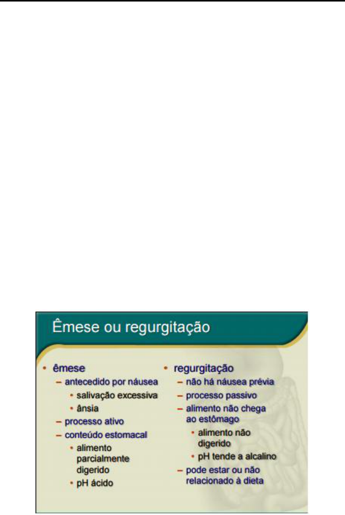 Aula 4 – Clínica de Pequenos Animais Sistema Digestório Importante saber o aspecto do vômito. Ex: Vômito Fecalóide vai para cirurgia de emergência. Quando ocorre o vômito pode pensar que seja uma toxina no sangue (que estimula a zona quimiorreceptora de disparo) ou alguma irritação no estômago que estimula o vômito. Ex: Álcool irrita a mucosa do estômago por isso causa vômito. Vômito de Cinetose: Relacionado ao movimento, quando está dentro de ônibus, curvas, ... Um cachorro pode vomitar por estresse. Centro do vômito - mediada pela via histaminérgica e colinérgica muscarínica. O fato do alimento não estar digerido, não significa que é regurgitação, pode ser vômito. Regurgitação - Alimento está no esôfago, anda não chegou ao estômago. Vômito – Alimento vem do estômago e até mesmo do intestino. Estômago – Ácido clorídrico é quase virtual, só irá ser acionado após comer, não é “piscina” como em desenhos. Tem que tratar animais com êmese, diarreias, primeiros sintomas e depois pesquisar a causa deles e tratar por completo. Antiemético – Para animal parar de vomitar, pois a mucosa do esôfago não é preparada para receber ácido clorídrico advindo do estômago através do vômito. Exemplo: Ondansetrona. Maropitant (Cerenia) – É um anti emético mais efetivo, em casos refratários, ou seja, que não respondem o tratamento com ondansetrona, porem tem um alto valor. O vômito só pode ser provocado se o animal estiver consciente, se a substância não for irritante e se ele ingeriu em curto espaço de tempo. Caso seja para eliminar algo tóxico, será um único vômito (dar água oxigenada via oral para provocar vômito), e se a substância for irritante, o animal será anestesiado, e fará abertura no estômago para uma limpeza. Se a substância tóxica for um metal aplica um quelante. Diarreia – Deixa o animal ter, e vai repondo líquidos realizando uma fluido. Produção do ácido clorídrico Produzido fora das células parentais, porque senão seria um “suicídio celular”, juntar dentro dela Hidrogênio + Cloreto = Ácido Clorídrico. Troca o Potássio pelos íons Hidrogênio, então joga o hidrogênio dentro da luz do estômago e o cloreto já estava lá. Bomba de prótons é estimulada pelo HORMÔNIO GASTRINA para estimular ácido clorídrico nas células parentais. Ela é ativada quando se alimenta, e o pH do estômago muda ficando mais alcalino. A gastrina ela faz a produção do ácido clorídrico diretamente pela célula parental ou indiretamente pela via muscarínica. Ranitidina e Omeprazol são antiácidos – protetores de mucosas. Cloridrato de Ranitidina – Antagonista H2. É menos potente comparado ao Omeprazol, porque mesmo inibindo antagonista, terá outra via para ser produzido o ácido clorídrico. Omeprazol/ Nexium – Inibidor de Bomba de prótons. É o mais potente, porque o ácido clorídrico não conseguira ser produzido. Nexium é mais potente de todas, em casos de gastrites fortes. Ação em 1 hora. As vezes faz associação de Omeprazol com Ranitidina, porque o pico de ação máximo do Omeprazol demora de 3 a 5 dias. Para gastrites a Ranitidina não serve de nada. Omeprazol (tomar pela manhã e em jejum, potencializa o efeito). Quando com inflamações, como gastrite, não se deve tomar leite, porque tem cálcio, e o mesmo produz mais a produção de ácido clorídrico. Mucosas cicatrizam rapidamente, desde que tenha nutrientes e oxigênio, ambos via circulação sanguínea. Úlceras já perderam a mucosa, submucosa e está inflamando a muscular. ATB para sistema digestório – METRONIDAZOL porque pega bactérias anaeróbias. Ajuda a pegar GIÁRDIA e tem mecanismos que auxiliam a desinflamar o intestino. Doenças do Sistema Digestório Gatos são animais que param de comer por qualquer motivo. Examinar sempre a cavidade oral deles quando o mesmo parar de comer. Pode ter estomatite (como se fosse afta) – que é uma doença secundária a calicivirose (doença do trato respiratório felino), granuloma eosinofilico (doença a doença imunomediada, com formação de placas com infiltrado eosinofilico) ou neoplasias (malignas ou benignas). Esofagite - Inflamação da parede esofágica pode ocorre de tanto vomitar. Animal apresenta perda de apetite, sialorreia, vômito. Tem que fazer uma boa anamnese para saber de seu histórico, porque esofagite em si não se diagnostica. Vômitos crônicos não são normais, indicio de esofagite. Etiologia – Refluxo gastroesofágico, ingestão de substâncias irritantes. Diagnóstico: Raios-X ou US não diagnosticam a esofagite, e sim a endoscopia. Tratamento para esofagite: Anti - emético (ondansetrona), antiácido (ranitidina e omeprazol), protetor de mucosa (sucralfato). Megaesôfago/ Dilatação Esofágica – Acomete animais adultos jovens. É uma dilatação total ou parcial do esôfago, geralmente decorrente de alteração de sua motilidade esofágica (esôfago não contrai mais e a comida volta e ocorre regurgitação) ou doença esofágica obstrutiva. Regurgitação ocorre com muita frequência. Diagnostico: Radiografia simples ou contrastada. Sintomas: Anorexia ou apetite voraz, regurgitação, emagrecimento, fraqueza muscular que pioram com exercícios e tosse produtiva e secreção nasal em caso de pneumonia aspirativa. Tratamento: Alimentação pastosa em posição bipedal, porem tem que manter animal nessa posição de 20-30 minutos, senão causa pneumonia aspirativa, devido a ele engolir saliva. Em casos de pneumonia aspirativa, realizar antibioticoterapia, correção cirúrgica e ATB em casos envolvendo pneumonia. Colocação de tubo esofágico ou gástrico, não é recomendada porque ele vai continuar tendo pneumonia aspirativa, devido a engolir saliva. Em casos envolvendo filhotes pode ser um megaesôfago, decorrente da persistência do 4º arco aórtico direito. Vai ocorrer regurgitação pós desmame caquexia, prejuízo de crescimento, tosse 