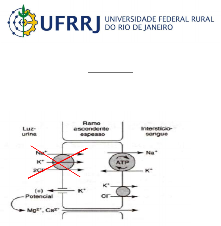 Diuréticos 1) Diuréticos de alça (Furosemida, Torasemida, Bumetanida, Piretanida, Ácido etacrínico) Mecanismo de ação: Esses fármacos atuam sobre o segmento espesso da alça ascendente de Henle, inibindo o carreador de Na/K/2CL na membrana luminal.Por secreção tubular o fármaco chega na luz onde pode alcançar o carreador. São considerados vasodilatadores, pois ao aumentar a osmolaridade no fluido tubular ocorre a atração de água para a luz tubular, aumentando o volume urinário e diminuindo o volume no sangue (baixa volemia), e portanto, diminuindo a pressão arterial. É o grupo de diuréticos que acarreta em maior perda de eletrólitos: magnésio, cálcio, hidrogênio, sódio, potássio e cloro. A perda de hidrogênio resulta em alcalose metabólica. O potássio gera potencial positivo responsável pela absorção de cálcio e magnésio, e como o carreador Na/K/2CL está bloqueado, ocorre a excreção de Mg e Ca porque não tem K. Efeitos adversos: alcalose metabólica; hiperuricemia (o ácido úrico compete com o diurético pelo mesmo carreador, porém o diurético leva ‘’vantagem’’ e é secretado, enquanto que o ácido úrico fica no sangue e se acumula; hipocalemia; hipotensão; hipocalcemia; Indicações clinicas: hipertensão; edema pulmonar; hipercalcemia, insuficiência renal; insuficiência cardíaca crônica; 2) Diuréticos Tiazídicos (Hidroclorotiazida, Ciclopentiazida, Bendrofluazida) Mecanismo de ação: atuam no ducto contorcido distal inibindo o carreador Na/CL . Causam vasodilatação (diurético de escolha para a hipertensão) e hiperglicemia, que podem ser explicadas pelo mesmo mecanismo: o diurético antagoniza o ATP, sendo que o ATP mantem o canal para K+ fechado. Portanto, ocorre o efluxo de potássio causando hiperpolarização da membrana da célula muscular lisa, tendendo a ‘’prejudicar’’ a contração do vaso. E há também a inibição da secreção de insulina das células das ilhotas pancreáticas. Pode ter competição com o acido úrico pelo carreador, podendo gerar hiperuricemia Não há excreção de cálcio, pois na membrana basolateral há um trocador Na/Ca , que fara o influxo de sódio e o efluxo de cálcio, poupando o, aumentando sua concentração no sangue (tratamento de hipercalciúria) Efeitos adversos: hipercalciuria, hipotensão, hiperglicemia (não pode ser utilizado em pacientes diabéticos), alcalose metabólica (perda de H+), hipocalemia, aumento do colesterol plasmático (com uso frequente), impotência masculina. Indicação clínica: hipertensão, insuficiência cardíaca leve, edema grave e resistente. 3) Diuréticos poupadores de potássio (Triantereno, Amilorida e Espironolactona) Todos atuam no ducto coletor Espironolactona: é um antagonista do receptor de aldosterona. A aldosterona estimula a síntese de trocadores Na/K na membrana basolateral. Portanto, reduz a secreção de potássio. Possui ação lenta, ou seja, demora vários dias para o efeito acontecer. Amilorida e Triantereno: bloqueiam os canais de sódio na membrana luminal, inibindo a reabsorção de sódio e diminuindo a excreção de potássio. Poupam ions hidrogênio, e portanto, causam acidose metabólica Indicações clinicas: associação com outros diuréticos para evitar a perda de potássio, hiperaldosteronismo. Efeitos adversos: acidose metabólica, hipercalemia, distúrbios menstruais (espironolactona) 4) Inibidores da anidrase carbônica (acetazolamida, diclorfenamida) Agem no túbulo contorcido distal, inibindo a enzima anidrase carbônica, o que resulta em maior excreção de bicarbonato acompanha de sódio e água Indicações clinicas: alcalose metabólica, glaucoma (diminui a produção de humor aquoso), alcalinização urinaria Efeitos adversos: acidose metabólica 5) Diuréticos Osmóticos (Manitol, Uréia, Glicerina) Os diuréticos osmóticos são substâncias farmacologicamente inertes (por exemplo, manitol), A reabsorção passiva de água encontra-se reduzida, devido à presença do soluto não reabsorvível no interior do túbulo. Em consequência, um maior volume de líquido permanece no túbulo proximal. Isso exerce o efeito secundário de reduzir a reabsorção de sódio, visto que a concentração de sódio no interior do túbulo proximal é menor do que deveria ser, alterando o gradiente eletroquímico para reabsorção. Portanto, o principal efeito dos diuréticos osmóticos consiste em aumentar a quantidade de água excretada, com aumento relativamente menor na excreção de sódio. Assim, essas substâncias não são úteis no tratamento de condições associadas à retenção de sódio, porém apresentam aplicações terapêuticas muito mais limitadas, que incluem elevação aguda da pressão intracraniana ou intra ocular e prevenção da insuficiência renal aguda. Indicações clinicas: Reduçao da pressão intra ocular e intracraniana; aumento do volume urinário;