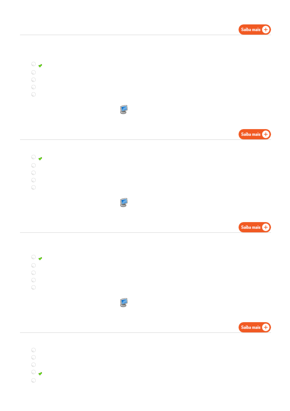 21/08/2018 EPS: Alunos http://simulado.estacio.br/alunos/ 1/3 Quando afirmamos que há uma importante função administrativa que permite ao gestor e sua equipe estabelecerem os parâmetros que vão direcionar a organização da empresa, a condução da liderança, assim como o controle das atividades que os municie de informações para a tomada de decisão, ajudando-os a atuar de forma proativa, antecipando-se às mudanças que ocorrem no mercado em que atuam, estamos falando sobre: Uma característica que se apresenta em todos os tipos de empreendedorismo seria:? O empreendedor -------------- tem ficado mais em evidência nos últimos anos, devido à necessidade das grandes organizações de se renovar, inovar e criar novos negócios. São geralmente executivos muito competentes, com capacidade gerencial e conhecimento de ferramentas administrativas. O empreendedorismo corporativo pode ser entendido como: 1. Planejamento estratégico Planos táticos e operacionais Características do empreendedor Processos administrativos Cultura organizacional Gabarito Coment. 2. Motivação/Perseverança Ser útil Melhoria de Produtos Melhorar um serviço Criar uma marca Gabarito Coment. 3. Corporativo Social Nato Start-Up Legal Gabarito Coment. 4. Aquele em que o patrão dita as regras de como as coisas devem ser feitas. Aquele em que o setor privado é estimulado com subsídios a criar novas oportunidades. Aquele desenvolvido fora da empresa por iniciativa do setor privado. Aquele desenvolvido dentro da própria empresa por iniciativa dos empregados. Aquele em que o empregado é obrigado a inovar com prazos definidos. Gabarito Coment. Gabarito Coment. 21/08/2018 EPS: Alunos http://simulado.estacio.br/alunos/ 2/3 Sobre o processo empreendedor, é CORRETO afirmar que: O que é o empreendedor coorporativo? São três os �pos de empreendedorismo: corpora�vo, social e start-up. Sobre eles, podemos afirmar: I - O empreendedorismo corpora�vo pode ser definido como sendo um processo de iden�ficação, desenvolvimento, captura e implementação de novas oportunidades de negócios. II - Apesar do seu nome, o empreendedorismo social tem como principal obje�vo a produção de bens e serviços para vender. III - O empreendedorismo start-up é desafiador e busca a compe��vidade do negócio, com foco no econômico. Normalmente está atento a tudo o que ocorre ao seu redor e adora conversar com as pessoas, participar de eventos, associações, fazer networking. Às vezes se envolve em vários negócios ao mesmo tempo e não é incomum 5. Os fatores pessoais condicionam o processo empreendedor em suas fases ou etapas intermediárias. Os recursos e as equipes não importam inicialmente, podem ser adaptadas e adequadas ao londo do processo. Oportunidade, recursos e equipe são seus elementos-chave, independentemente de ser empreendedorismo corporativo ou de start-up. O ambiente externo influencia mais decisivamente o processo empreendedor em suas fases iniciais. Os fatores que condicionam a inovação e o início do negócio geralmente são os mesmos que influenciam a implementação da idéia Gabarito Coment. 6. É o que cria empreendimentos sustentáveis. É o que cria eventos ligados à natureza. É o que cria novos negócios/empresas. É o que cria empreendimentos com missão social. É o intraempreendedor ou empreendedor interno. Gabarito Coment. Gabarito Coment. 7. As afirma�vas I, II e III estão corretas. Somente a afirma�va III está correta. Somente as afirma�vas I e III estão corretas. Somente as afirma�vas I e II estão corretas. Somente as afirma�vas II e III estão corretas. Gabarito Coment. Gabarito Coment. Gabarito Coment. 8. 21/08/2018 EPS: Alunos http://simulado.estacio.br/alunos/ 3/3 ter várias histórias de fracasso. Mas estas servem de estímulo para a superação do próximo desafio. Estas características podem ser associadas ao empreendedor? Ocasional Start-up Social Corporativo Legal Gabarito Coment.