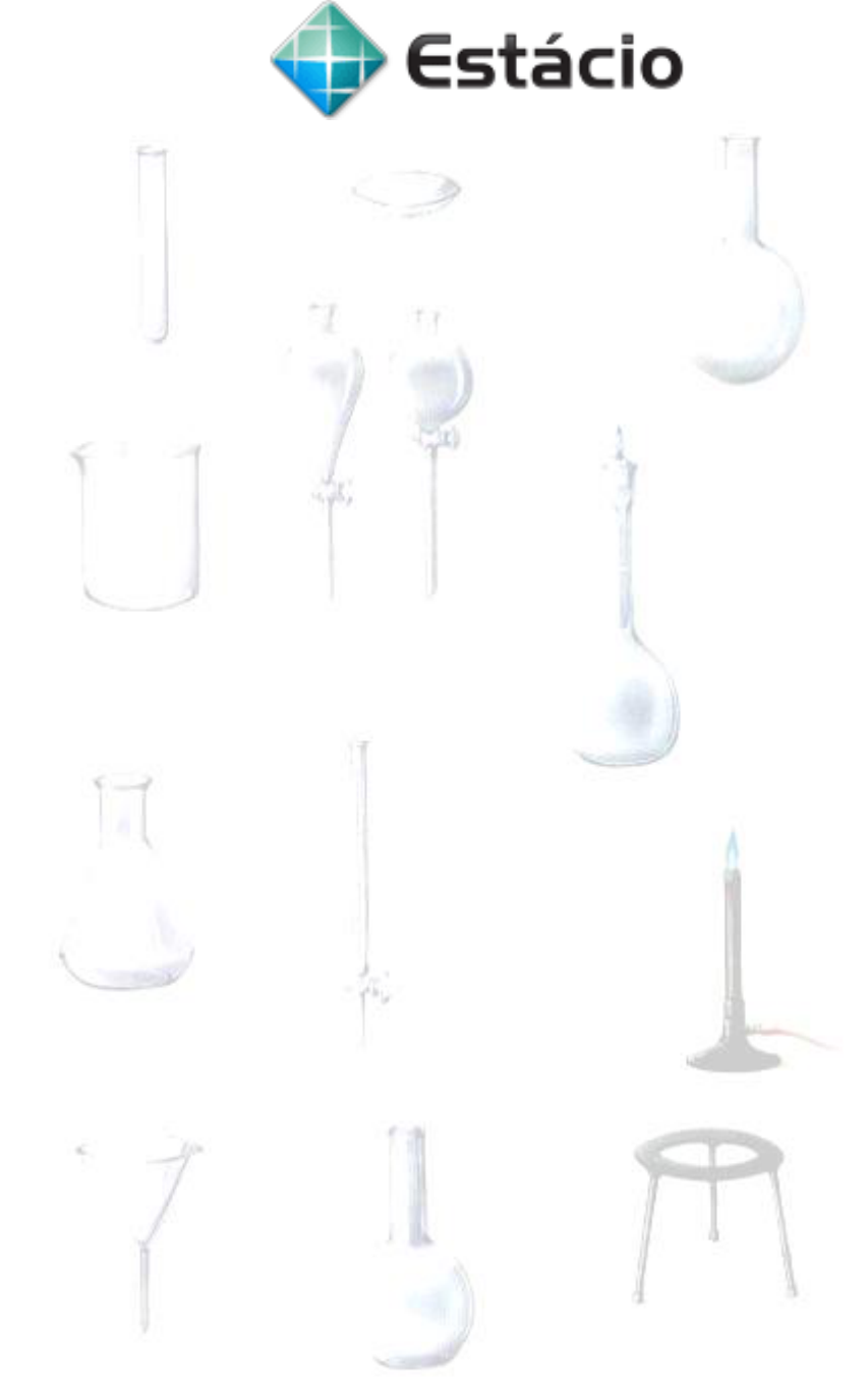 UNIVERSIDADE ESTÁCIO DE SÁ Campus Sulacap Apostila de aulas práticas de Química Geral Elaborada por: Profª Marilza Sampaio Aguilar (Revisada por Prof. Guilherme Bretz Lopes) Prof.: Fábio Silva de Oliveira Apostila aulas práticas de Química Geral 2 Normas de segurança para aulas no laboratório de Química As técnicas e normas de segurança no laboratório de química têm como objetivo a preservação e defesa da saúde individual e coletiva das pessoas, a conservação dos equipamentos de laboratório e de suas dependências e a criação de condições propícias para obtenção de resultados corretos e dignos de segurança. Antes do início de cada experiência é necessário ler com atenção a prática a ser executada; Durante o trabalho, atenção e cuidados não devem ser negligenciados; Manter sempre limpa a aparelhagem e a mesa de trabalho; Não é permitido fumar, beber, comer ou manter alimentos no laboratório; É proibido o uso de lentes de contato nas aulas de laboratório de química; É proibido pipetar qualquer produto com a boca; É proibido correr ou fazer brincadeiras com materiais; É proibido levar as mãos aos olhos quando manusear produtos químicos; É proibido testar amostras ou reagentes pelo odor ou sabor; É obrigatório o uso do guarda-pó abotoado, branco, de algodão, tendo em vista que fibras sintéticas são infamáveis; É obrigatório o uso de calça comprida e sapato fechado; Vidrarias danificadas não devem ser utilizadas, favor informar aos técnicos; O uso de óculos de segurança é obrigatório na manipulação de produtos químicos, sempre que as instruções de trabalho recomendarem; Nos trabalhos em que se exige o emprego de pressão reduzida (frasco de Dewar, dessecadores a vácuo, destilação a vácuo etc.) ou de metais alcalinos, é obrigatório o uso de vidrarias adequadas, luvas e óculos; Caso ocorra algum acidente com mercúrio, por derramamento, procure imediatamente o técnico do laboratório; O manuseio de gases venenosos ou irritantes deve ser feito na capela; Evitar derramamentos, caso ocorram, procure imediatamente o técnico do laboratório; Ao final de cada experiência, todo o material que foi utilizado deverá ser devolvido nas mesmas condições que foi recebido; Nunca trabalhe sozinho no laboratório. Em caso de acidente, procure socorro imediato, com o professor ou técnico do laboratório; Trabalhe com substâncias inócuas como se fossem tóxicas. Em hipótese alguma deve-se descartar material químico nas pias, pois o meio ambiente poderá ser atingido; Para descarte de material químico é obrigatório chamar o técnico do laboratório; É proibido permanecer com cabelos soltos no laboratório; e Lavar cuidadosamente as mãos, com bastante água e sabão, após o término da aula. Notas: Qualquer dano causado pelo aluno, de forma proposital, aos equipamentos/materiais do laboratório será cobrado pelo valor integral correspondente a um produto novo. Tanto o professor quanto os técnicos possuem autoridade para impedir a entrada ou solicitar que o aluno se retire do laboratório, caso não atenda às NORMAS supracitadas Caberá ao professor ou técnico relatar à Coordenação Acadêmica qualquer transgressão às presentes NORMAS, para que sejam tomadas as devidas providências. Nenhum aluno poderá assistir às aulas sem antes atestar ciência das presentes NORMAS Apostila aulas práticas de Química Geral 3 EQUIPAMENTOS E APARELHAGENS A seguir são apresentados alguns equipamentos e aparelhagens que são utilizados durante as aulas práticas. 1 – Balão Volumétrico: É um balão de fundo chato e gargalo comprido, calibrado para conter determinado volume de líquido, que é indicado por um traço de referência presente no gargalo. Ao ajustar o volume, a tangente inferior do menisco deve coincidir com o traço de referência. É utilizado no preparo de soluções. Não deve ser aquecido. 2 – Becher: Copo de vidro de tamanho variado utilizado para aquecer e cristalizar substâncias, recolher filtrados, misturar reagentes, transferência de líquidos, realizar reações químicas, entre outras aplicações. Pode ser aquecido diretamente com o uso de tripé e tela de amianto, em banho–maria ou banho de óleo. 3 – Termômetro de Mercúrio: É um utilizado para medir a temperatura de líquidos, possuindo ampla faixa de medidas que pode variar de temperaturas positivas a negativas. 4 – Erlenmeyer: Recipiente de vidro utilizado principalmente em titulações, devido a sua forma que facilita a agitação sem que ocorra perda do líquido. Também pode ser utilizado para a realização de reações químicas, mistura de reagentes, transferência de líquidos. Pode ser aquecido sobre tripé com tela de amianto. 5 – Estante: Suporte de vários tamanhos para tubos de ensaio. 6 – Tubos de Ensaio: Tubo cilíndrico utilizado, principalmente, na execução de reações simples. Apostila aulas práticas de Química Geral 4 7 – Suporte Universal: Suporte metálico utilizado na montagem de aparelhagens mais complexas, tais como aparelhagens para filtração e destilação. 8 – Anel ou Garra: Suporte para funil, tubo em U, destiladores e etc. 9 – Funil de Vidro: É utilizado para filtração e para transferência de líquidos. Na filtração adapta-se ao funil um papel de filtro, algodão ou algodão de vidro. Para aumentar a velocidade da filtração deve apresentar colo longo. 10 – Pinça de madeira: Usada para prender o tubo de ensaio durante o aquecimento. 11 – Proveta: Recipiente de vidro ou plástico utilizado para medir ou transferir volumes de líquidos sem grande precisão. Não deve ser aquecida. 12 – Frascos para Reagentes: São frasco nos quais se estocam soluções. Existem em diversos tamanhos. Podem ser de vidro ou de plástico, âmbar ou incolor. Nos frascos âmbar são colocadas as soluções que são sensíveis à luz. 13 – Bico de Bunsen: E um bico de gás especialmente construíd