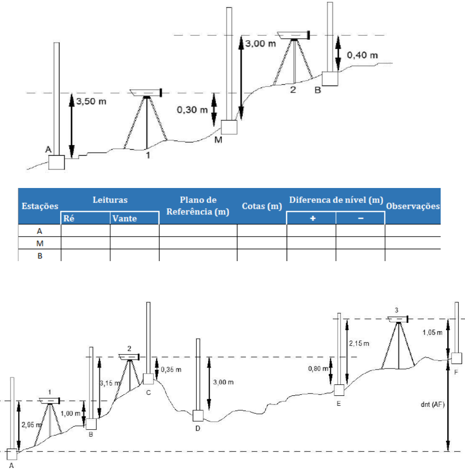 Dennis Eleutério Rodrigues de Moura - Topografia Nivelamento Geométrico Composto Considerando a figura abaixo: Encontre as diferenças de nível parciais (dnf). dn (AB)= dn (BC)= dn (CD)= dn (DE)= dn (EF)= dn (AF)=