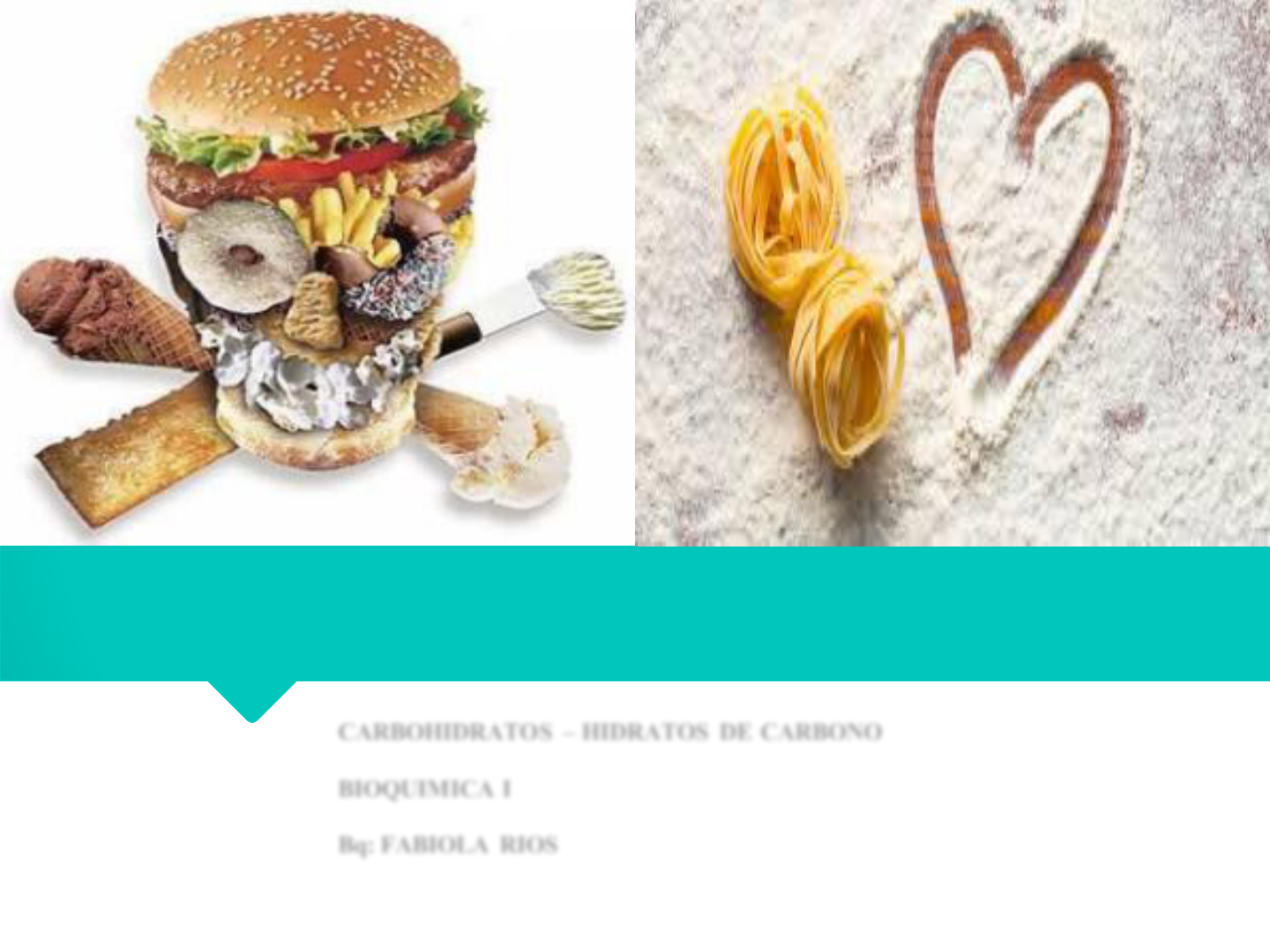 CARBOHIDRATOS – HIDRATOS DE CARBONO BIOQUIMICA I Bq: FABIOLA RIOS IMPORTANCIA BIOMEDICA Los carbohidratos están ampliamente distribuidos en vegetales y animales; tienen importantes funciones estructurales y metabólicas. En los vegetales, la glucosa se sintetiza a partir de dióxido de carbono y agua por medio de fotosíntesis, y es almacenada como almidón o usada para sintetizar la celulosa de las paredes de las células vegetales. Los animales pueden sintetizar carbohidratos a partir de aminoácidos, pero casi todos se derivan finalmente de vegetales. IMPORTANCIA BIOMEDICA La glucosa es el carbohidrato más importante; casi todo el carbohidrato de la dieta se absorbe hacia el torrente sanguíneo como glucosa formada mediante hidrólisis del almidón y los disacáridos de la dieta, y otros azúcares se convierten en glucosa en el hígado. La glucosa es el principal combustible metabólico de mamíferos (excepto de los rumiantes), y un combustible universal del feto. Es el precursor para la síntesis de todos los otros carbohidratos en el cuerpo, incluso glucógeno para almacenamiento; ribosa y desoxirribosa en ácidos nucleicos; galactosa en la síntesis de la lactosa de la leche, en glucolípidos, y en combinación con proteína en glucoproteínas y proteoglucanos. Las enfermedades relacionadas con el metabolismo de los carbohidratos son DIABETES MELLITUS, GALACTOSEMIA, ENFERMEDADES POR DEPÓSITO DE GLUCÓGENO, E INTOLERANCIA A LA LACTOSA GLUCIDOS – COMPUESTOS ORGANICOS POLIMEROS MONOMEROS POLISACARIDOS MONOSOCARIDOS PROTEINAS AMINOACIDOS ACIDOS NUCLEICOS NUCLEOTIDOS GLUCIDOS (CARBOHIDRATOS – HIDRATOS DE CARBONO) PRIMERA FUENTE DE ENERGIA. ( mas energético?? ) ESTRUCTURAL : CELULOSA (pared celular), QUITINA, RIBOSA OBS: IMPORTANCIA DE LA PROTEINA (el cuerpo humano agua+proteínas) Tipos de Carbohidratos Carbohidratos ALDEHIDO CETONA POLIHIDROXIALDEHIDO POLIHIDROXICETONA TIPOS DE CARBOHIDRATOS CARBOHIDRATOS: son una clase de moléculas orgánicas que contienen carbono, hidrogeno y oxigeno. Los carbohidratos pueden estar relacionados con ALDEHÍDOS o con las CETONAS que contienen todavía el grupo hidroxilo. Así, ellos pueden ser definidos como POLIHIDROXIALDEHIDOS O POLIHIDROHIACETONAS. CLASIFICACION Los carbohidratos son clasificados de acuerdo al tamaño molecular Los carbohidratos mas simples son llamados de monosacáridos, los mayores son productos de condensación llamados polisacáridos. 1. MONOSACARIDOS O AZUCARES SIMPLES: formados por un polihidroxialdehido o polihidroxiacetona. Se obtienen como cristales de color blanco solubles en agua. El mayor representante de este grupo es la glucosa. CLASIFICACION 2. OLIGOSACARIDOS: 2 a 10 monosacáridos Separados por hidrolisis Se designan trisacáridos, tetrasacaridos, según el nro. de unidades componentes. Los representantes de mayor importancia son los DISACÁRIDOS, Solubles en agua Sabor dulce. 3. POLISACARIDOS: son moléculas de gran tamaño, constituidos por la unión de numerosos monosacáridos. Insolubles en agua. Glúcidos - Sacáridos MONOSACARIDOS – SIN HIDROLISIS TRIOSA (C3H603) TETROSA (C4H8O4)) PENTOSA (C5H10O5) importancia clínica HEXOSA (C6H12O6) importancia clínica PENTOSAS DESOXIRIBOSA - ADN RIBOSA – ARN C5H10O5 – Preparada para ser oxidada. HEXOSA – C6H12O6 Glucosa Fructosa Galactosa MONOSACARIDOS Los monosacáridos son otra vez clasificados de acuerdo a su grupo funcional. Los que tienen como base un grupo adheido son llamados de ALDOSAS Los que tienen como base un grupo cetona son llamados de CETOSAS. Los monosacáridos son también divididos en grupos con base en el numero de átomos de carbono de la molécula. Pueden clasificarse como triosas, tetrosas, pentosas, hexosas o heptosas, dependiendo del número de átomos de carbono (3 a 7) Como aldosas o cetosas, dependiendo de si tienen un grupo aldehído o cetona. Clasificación de azucares importantes ALDOSAS CETOSAS Triosas (c3H6o3) Glicerosa (gliceraldehído) Dihidroxiacetona Tetrosas (c4H8o4) Eritrosa Eritrulosa Pentosas (c5H10o5) Ribosa Ribulosa Hexosas (c6H12o6) Glucosa Fructosa Heptosas (c7H14o7) ------- Sedoheptulosa ENANTIOMEROS Una característica importante de la estructura de los monosacáridos es que el gliceraldehido tiene dos estereoisomeros del tipo enantiomeros, que son imágenes especulares, no superponibles, uno del otro. La forma mas completa de representar los enantiomeros es utilizar una proyección de FISCHER. En una proyección de Fischer, el hidroxilo se dibuja a la derecha del carbono para la forma D, y a la izquierda par la forma L MONOSACARIDOS Al igual que ocurre en los a.a. en los organismos vivos domina una forma enantiomera de los monosacáridos. En la naturaleza predomina la forma D Estos dos sistemas de clasificación pueden ser combinados Ej. Centopentosa: 5 carbonos + grupo cetonico Aldohexosa: 6 carbonos + grupo aldehído MONOSACARIDOS El GLICERALDEHIDO, es uno de los mas simples de todos los monosacáridos, es una aldotriosa El es FORMADO DE LA DEGRADACIÓN DE HEXOSAS EN EL TEJIDO MUSCULAR y contienen tres átomos de carbono, uno de los cuales es parte de grupo aldehído. MONOSACARIDOS Las TETROSAS no tienen importancia biológica. DOS PENTOSAS, MONOSACÁRIDOS DE 5 CARBONOS, CONSTITUYEN PARTE DE MOLÉCULAS COMPLEJAS DE LOS GENES EN LOS ÁCIDOS NUCLEICOS. Estas son las aldopentosas, RIBOSA Y DESOXIRRIBOSA, el prefijo desoxi de la desoxirribosa indica que la molécula contiene un átomo de oxigeno a menos en el carbono (c2) Oxigeno a menos, para su estabilidad y así no es fácilmente oxidado Hexosas Las hexosas, moléculas con seis átomos de carbono, constituyen uno de los mas importantes grupos de monosacáridos. Las hexosas son los MONOSACÁRIDOS mas comunes y mas importantes. Y entre ellos la GLUCOSA desempeña un papel de destaque mas conocida como azúcar de la sangre. Su formula es C6 H12 O6 La glucosa es el carbohidrato encontrado en mayor cantidad en tu corriente sanguínea. Se encuentra libre en fruto