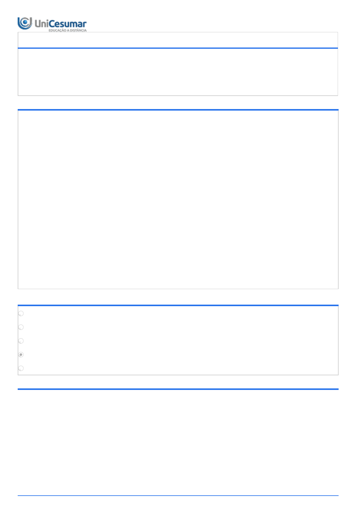 04/09/2018 Unicesumar - Ensino a Distância 1/6 ATIVIDADE 1 - TI - ENGENHARIA DE SOFTWARE - 2018C1 Período:02/08/2018 22:30 a 09/08/2018 23:59 (Horário de Brasília) Data Final:17/08/2018 23:59 valendo 50% data nota! Status:ENCERRADO Nota máxima:0,50 Gabarito:Gabarito será liberado no dia 19/08/2018 00:00 (Horário de Brasília) Nota ob�da:0,50 1ª QUESTÃO Um modelo de processo de software é uma representação simplificada de um processo de software. Cada modelo representa uma perspectiva particular de um processo e, portanto, fornece informações parciais sobre ele. Por exemplo, um modelo de atividade do processo pode mostrar as atividades e sua sequência, mas não mostrar os papéis das pessoas envolvidas. SOMMERVILLE, I. Engenharia de software. 9. ed. São Paulo: Pearson Prentice Hall, 2011. Na literatura, existem diversos modelos de processo de software. Com base nessa informação, analise as afirmativas sobre os modelos de processo de software estudados: I. O modelo em Cascata considera as atividades de especificação, desenvolvimento, validação e evolução, que são fundamentais ao processo e as representa como fases separadas. II. O modelo Desenvolvimento Incremental intercala as atividades de especificação, desenvolvimento e validação. III. O modelo Engenharia de Software Orientada a Reuso parte do principio de que existem muitos componentes que podem ser reutilizáveis. IV. O modelo Desenvolvimento Incremental, algumas vezes chamado ciclo de vida clássico, sugere uma abordagem sequencial e sistemática para o desenvolvimento de software. É correto o que se afirma em: ALTERNATIVAS I, apenas. I e IV, apenas. II e III, apenas. I, II e III, apenas. I, II, III e IV. 2ª QUESTÃO 04/09/2018 Unicesumar - Ensino a Distância 2/6 Software é um agrupamento de comandos escritos em uma linguagem de programação. Estes comandos, ou instruções, criam as ações dentro do programa, e permitem seu funcionamento. Cada ação é determinada por uma sequencia, e cada sequencia se agrupa para formar o programa em si. Estes comandos se unem, criando um programa complexo. Disponível em: <https://www.infoescola.com/informatica/software/>. Acesso em: 25 jul. 2018. Com base no conceito exposto, avalie as afirmativas sobre as características que diferenciam o software do hardware: I. Software é desenvolvido ou passa por um processo de engenharia, não sendo fabricado como um produto manufaturado. II. Hardware não se desgasta com o tempo ou por má utilização. Já o software é diferente, ou seja, ele sofre com os problemas ambientais ou de má utilização. III. Os componentes reutilizáveis de hardware são criados para que o desenvolvedor possa se concentrar nas partes do produto que representam algo novo. IV. Os custos de software concentram-se no processo de engenharia. É correto o que se afirma em: ALTERNATIVAS I, apenas. I e IV, apenas. I e III, apenas. I, II e IV, apenas. I, II, III e IV. 3ª QUESTÃO O mundo moderno não poderia existir sem o software. Infraestruturas e serviços nacionais são controlados por sistemas computacionais, e a maioria dos produtos elétricos inclui um computador e um software que o controla. A manufatura e a distribuição industriais são totalmente informatizadas, assim como o sistema financeiro. A área de entretenimento, incluindo a indústria da música, jogos de computador, cinema e televisão, faz uso intensivo de software. Portanto, a engenharia de software é essencial para o funcionamento de sociedades nacionais e internacionais. SOMMERVILLE, I. Engenharia de software. 9. ed. São Paulo: Pearson Prentice Hall, 2011. Com base no fragmento apresentado, assinale a alternativa que melhor define a Engenharia de Software: ALTERNATIVAS 04/09/2018 Unicesumar - Ensino a Distância 3/6 Disciplina que possui foco nos aspectos de construção e homologação de sistema de alta qualidade. Disciplina cujo foco está em planejar e gerenciar projetos de produtos modernos, com alta qualidade e com custos acessíveis. Disciplina cujo foco está na construção e validação de produtos e voltado a atender as solicitações e mudanças de negócio do cliente. Disciplina que possui foco na definição de processos e modelos de desenvolvimento de software, voltado a atender somente as solicitações e mudanças de negócio do cliente. Disciplina cujo foco está em todos os aspectos do desenvolvimento do software, desde os estágios iniciais da especificação do sistema até a sua manutenção, com qualidade e custo acessível. 4ª QUESTÃO Dentre as práticas da engenharia de software, temos uma situação em que você deve verificar quem tem interesse na solução do problema e quais são os interessados. A partir da situação demonstrada, assinale a alternativa que contenha a etapa correspondente: ALTERNATIVAS Executar o plano. Planeje a solução. Finalizar o projeto. Compreenda o problema. Examinar o resultado para ter precisão. 5ª QUESTÃO Segundo Pressman (2011), embora a indústria de software caminhe para a construção com base em componentes, a maioria dos softwares continua a ser construída de forma personalizada (sob encomenda). Baseado nas diferenças entre hardware e software, assinale a alternativa correta: ALTERNATIVAS O Software pode se desgastar devido à poeira, má utilização e temperaturas extremas. Entre o hardware e software não há diferenças, ambos são desenvolvidos da mesma forma. A característica de desenvolvimento de forma personalizada é totalmente relativa ao Hardware. Quando um componente de software se desgasta, ele normalmente é trocado por um novo componente. O desenvolvimento sob encomenda é uma característica relativa ao software e faz com que o programa se adeque melhor às necessidades específicas do cliente. 6ª QUESTÃO Considerado um dos paradigmas mais antigos da engenharia de software, o modelo cascata, é um processo de abordagem sequencial que executa cada fase do projeto somente após 