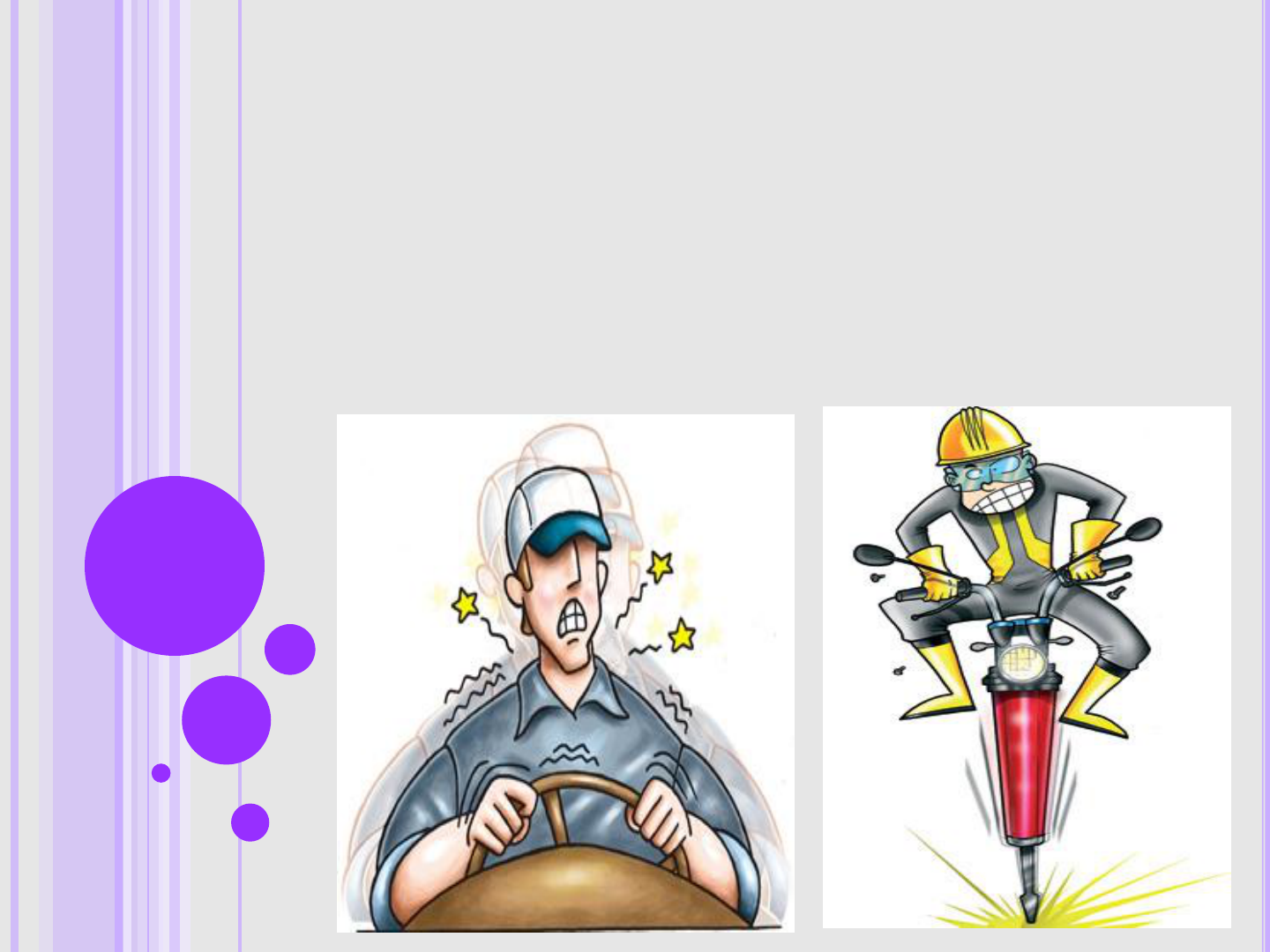 Risco Físico Agente Vibração Componentes Mônica Evelin Dias. Rita de Cássia Borges A vibração é um movimento oscilatório de um corpo, devido a forças desequilibradas de componentes rotativos e movimentos alternativos de uma máquina ou equipamento. Como todo corpo com movimento oscilatório, um corpo que vibra, descreve um movimento periódico, que envolve um deslocamento num certo tempo. Daí resulta a velocidade, bem como a aceleração do movimento em questão. Máquinas que geram vibração: Motor serra secador Máquina de costura Motor do ônibus Barco a motor No caso do marteleteiro que utiliza o martelo pneumático(martelete) Podemos desenvolver medidas de controle na: fonte: como essa máquina não tem velocidade,é contínua, recomenda-se utiliza-la dando intervalo. Trajetória: utiliza-se Suportes antivibratório ou amortecedores nas bases de apoio. Martelo pneumático furador com sistema anti-vibratório Martelo pneumático Demolidor com sistema de anti-vibração No trabalhador: utilizar EPI adequado: Luva com proteção anti- vibratória Protetor Auditivo do Tipo Concha Protetor Auricular silicone Avental de Couro Máscara facial Óculos protetor Capacete Sapato Efeito da ação direta das vibrações no organismo:vibrações de mãos e braços: O dedo branco é caracterizado pela cor dos pálidos causados pelo fechamento espasmático das artérias digitais. Falta de sensibilidade e controle Tremura dos dedos Perda do tato Danos nos tendões e músculos entre o pulso e o cotovelo Destruição das artérias e nervos das mãos. Nas vibrações do corpo inteiro: Fadiga Dores nas costas insônia danos no Sistema circulatório; Distúrbios no SNC; dor de cabeça; Dores articulares; Lesões no disco:hérnia; Lesões articulares:artrites. Ao contrário de muitos agentes ambientais, a vibração somente será problema quando houver efetivo contato físico entre um indivíduo e a fonte o que auxiliar no reconhecimento da exposição. OBRIGADO!!!!