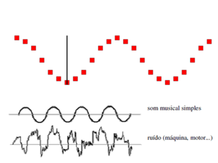 ONDA HARMÔNICA SIMPLES Uma onda harmônica simples pode ser produzida numa corda longa movendo-se uma de suas extremidades para cima e para baixo, com igual deslocamento vertical. Após algumas oscilações da corda, sua configuração se torna periódica como ilustra a figura abaixo. Ela pode ser descrita matematicamente pela função do seno, portanto esse tipo de onda é mais comumente chamado onda senoidal. função do seno, ou onda senoidal. Sen Ɵ = cateto oposto hipotenusa Ɵ Valores do seno Ɵ 0° 0 30° 0,5 45° 0,707 60° 0,866 y - A amplitude A da onda senoidal é o deslocamento vertical máximo da onda. - O comprimento de onda é a distancia entre dois máximos consecutivos, ou melhor, a distancia mínima em que a forma da onda se repete. Considere, num instante t = 0, um comprimento de onda de uma onda senoidal de amplitude A, como mostra a figura. y = A x sen O deslocamento vertical y de uma onda senoidal em termos do ângulo é descrito por: 360o y = A sen (-------- x ) 2 y = A sen (-------- x ) Como a um comprimento de onda corresponde um ângulo de 360o ou 2 radianos, o deslocamento vertical também pode se escrito em função da distancia x. --- 360o logo = 360o x x --- (***) y = A sen 2 ( x - vt ) Se, com o decorrer do tempo, essa onda se propagar para a direita com velocidade v, apos um tempo t, a onda terá percorrido uma distância vt. A equação da onda no instante t será. T = (**) v O período T de uma onda corresponde ao tempo necessário para que a onda percorra uma distancia igual a um comprimento de . f = 1 (*) T Sua unidade é s–1, chamada de Hertz (Hz). O período T de uma onda senoidal é também o tempo necessário para um ponto do meio completar um ciclo. A freqüência de uma onda senoidal é definida f e é igual ao numero de comprimentos de onda que passam num ponto por unidades de tempo v = f Substituindo (*) em (**) obtém-se que x t y = A sen 2 (--- - --- ) T Substituindo (**) em (***) obtém-se a nova equação da onda T = tempo para uma curva se locomover de 1 ponto ao outro ƒ = 1 ƒ = 1 ƒ = 1 x 60 ƒ = 60 x 1 ƒ = 60 s -1 T 1/60s 1s s Ou ƒ = 60 s -1 ƒ = 60 Hz em 1 segundo passa 60 curvas harmônicas simples por 1 ponto TEOREMA DE FOURIER O teorema de Fourier fornece a base para analisar qualquer forma de onda como uma superposição de ondas senoidais de comprimentos de onda e amplitudes específicos. Essas ondas senoidais, cada qual com determinada frequência, são chamadas componentes de Fourier de uma onda complexa. (este teorema pressupõe a validade do princípio de superposição). -0,5 0,5 1,5 2,5 500 1000 1500 A representação das amplitudes em função das frequências das componentes de uma onda complexa se chama espectro de frequência. A análise de uma onda complexa em componentes de Fourier, chamada de análise de Fourier, apresentada de forma de espectro de frequência, tem muitas aplicações na Medicina. Ex.: análise de voz, análise de eletrocardiogramas, radiologias, etc.. Frequência (Hz) Amplitude (cm) Ondas aperiódicas A forma da onda nunca se repete. O espectro de frequências de uma onda periódica consiste somente de membros de uma sequencia harmônica. Ondas periódicas A forma da onda se repete a cada . REFLEXÃO E REFRAÇÃO DE PULSOS. Quando o pulso atinge a extremidade de uma corda, verifica- se que ele retorna, propagando-se de volta para a fonte. Esse fenômeno denominado de reflexão de um pulso ocorre seja a extremidade da corda fixa ou livre. Reflexão sem inversão de fase Se a extremidade da corda estiver livre, então, ela pode se mover, logo o impulso sofre uma reflexão sem inversão de fase. Reflexão com inversão de fase Se a extremidade da corda estiver fixa, então, ela não pode se mover, logo o impulso sofre uma reflexão invertida. Considere agora um sistema formado por duas cordas diferentes, uma delas de pequena densidade linear e a outra de grande densidade linear. Se uma de suas extremidades estiver fixa e na outra dermos um impulso, quando o impulso atinge a junção entre as cordas parte do impulso atinge a junção entre as cordas parte do impulso é transmitido, e parte é refletida de volta. A parte transmitida do impulso é denominada de refração do impulso e a parte transmitida é denominada de refletida. Exercicio. Televisão (do grego tele - distante e do latim visione - visão) é um sistema eletrônico de recepção de imagens e som de forma instantânea. Funciona a partir da análise e conversão da luz e do som em ondas eletromagnéticas e de sua reconversão em um aparelho - o televisor - que recebe também o mesmo nome do sistema ou pode ainda ser chamado de aparelho de televisão . O televisor ou aparelho de televisão capta as ondas eletromagnéticas e através de seus componentes internos as converte novamente em imagem e som. O primeiro sistema semi-mecânico de televisão analógica foi demonstrado em Fevereiro de 1924 em Londres, e, posteriormente, imagens em movimento em 30 de outubro de 1925. Um sistema eletrônico completo foi demonstrado por John Logie Baird, Philo Farnsworth e Philo Taylor Farnsworth em 1927. O primeiro serviço analógico foi a WGY em Schenectady, Nova Iorque, inaugurado em 11 de maio de 1928. Os primeiros aparelhos de televisão eram rádios com um dispositivo que consistia num tubo de néon com um disco giratório mecânico (disco de Nipkow) que produzia uma imagem vermelha do tamanho de um selo postal. O primeiro serviço de alta definição apareceu na Alemanha em março de 1935, mas estava disponível apenas em 22 salas públicas. Uma das primeiras grandes transmissões de televisão foi a dos Jogos Olimpícos de Berlim de 1936. O uso da televisão aumentou enormemente depois da Segunda Guerra Mundial devido aos avanços tecnológicos surgidos com as necessidades da guerra e à renda adicional disponível, televisores na década de 1930 custavam o equivalente a 7000 dólares atuais e havia pouca programação disponível A televisã