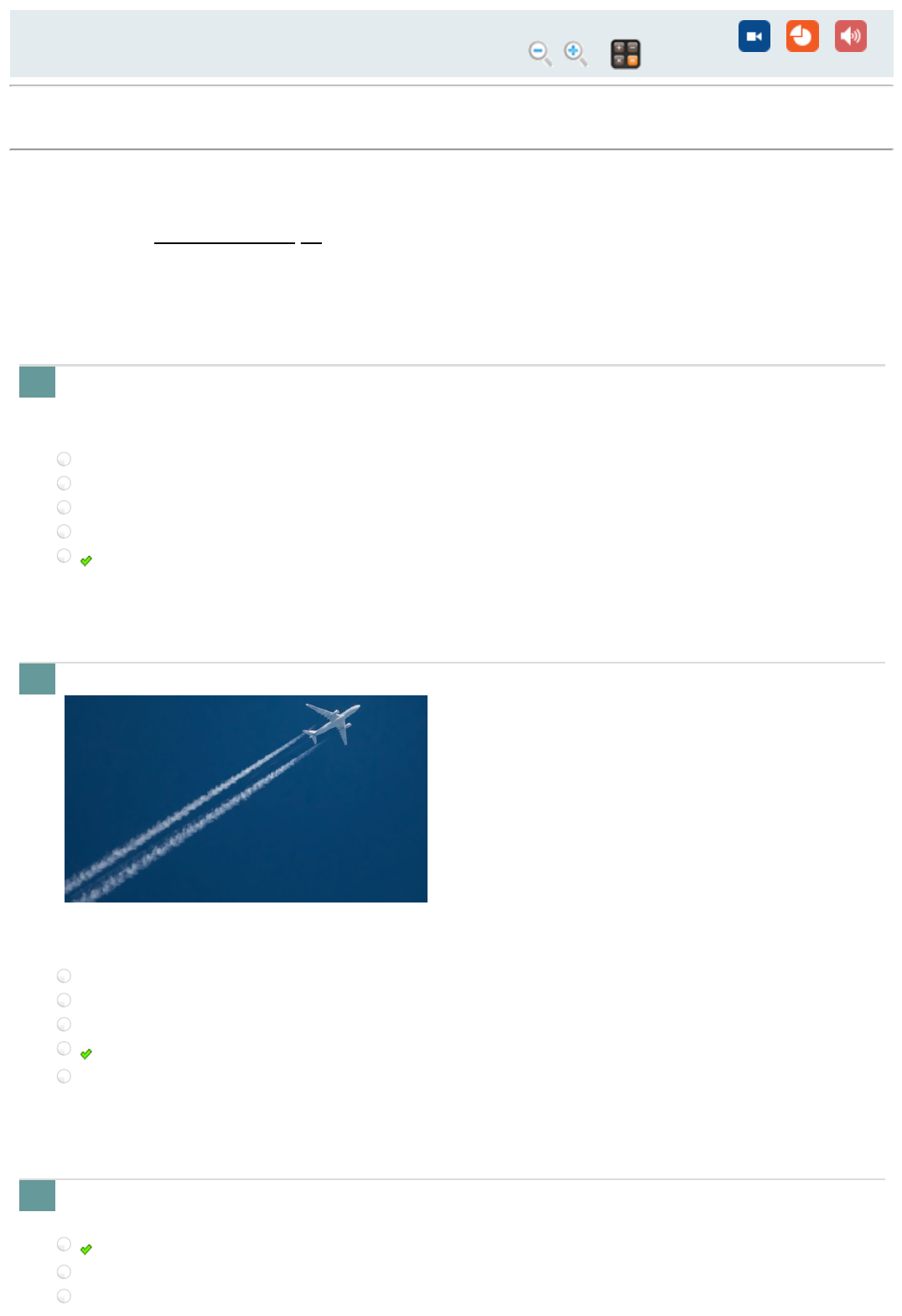 A Organização Meteorológica Mundial organizou um Atlas Internacional de Nuvens, que serve como referência para a classificação das nuvens e fazendo um resumo rápido sobre as nuvens, elas existem em três extratos verticais. Dentre os tipos de nuvens descritas abaixo, qual aquela que seria classificada como Nuvem alta (acima de 8000 m)? Observe a imagem a seguir. Qual o nome do fenômeno onde nuvens aparecem lineares, resultado da condensação dos gases de exaustão dos motores das aeronaves a elevadas altitudes A relação entre a quantidade de vapor de água presente em determinado volume de ar e a quantidade de vapor de água no mesmo volume de ar saturado de umidade, expresso em porcentagem, denomina-se: CLIMATOLOGIA CEL1026_A4_201608138119_V1 Lupa Calc. Vídeo PPT MP3 Aluno: ALEXANDRE GOMES DA SILVA Matrícula: 201608138119 Disciplina: CEL1026 - CLIMATOLOGIA Período Acad.: 2018.3 EAD (G) / EX Prezado (a) Aluno(a), Você fará agora seu EXERCÍCIO DE FIXAÇÃO! Lembre-se que este exercício é opcional, mas não valerá ponto para sua avaliação. O mesmo será composto de questões de múltipla escolha (3). Após a finalização do exercício, você terá acesso ao gabarito. Aproveite para se familiarizar com este modelo de questões que será usado na sua AV e AVS. 1. Stratus Altocumulus Stratocumulus Nimbostratus Cirrus 2. Sobrelado de nuvens Nuvens densas Trança de nebulosidade Rasto de condensação Nuvens Cumulonimbus 3. Grau de umidade relativa do ar atmosférico Vento Evaporação superficial das águas Observe o gráfico com a variação da umidade relativa do ar e a temperatura do ar em Ilhéus, Bahia, entre 1961 e 1990. A partir da figura e de seus conhecimentos, julgue as assertivas a seguir: I - A umidade relativa do ar é inversamente proporcional à temperatura II - A variação da umidade relativa do ar está diretamente associada à flutuação da pressão atmosférica III - A umidade relativa do ar é diretamente proporcional à temperatura Afirma-se a verdade em: CESPE - 2016 A transferência da água da atmosfera para a superfície terrestre sob a forma de pequenas gotas, de granizo, de orvalho, de neblina, de neve ou de geada denomina-se: FUNCAB - 2013 Tipo de chuva resultante da ascensão mecânica de correntes de ar úmido horizontal sobre barreiras naturais, tais como montanhas. A esse tipo de precipitação, dá-se o nome de: Transpiração Temperatura 4. II e III I e III Apenas II Apenas I I e II 5. Evaporação Infiltração Evapotranspiração Chuva Precipitação 6. Ciclônica Não frontal Orográfica Convectiva Frontal