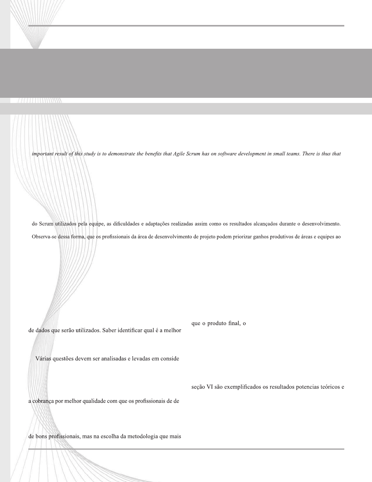 Departamento de Computação – Universidade Federal de São Carlos (UFSCar) Caixa Postal 676 – 13.565-905 – São Carlos – SP – Brasil Autor para correspondência: fzenaro@yahoo.com.br ISSN 2316-2872 T.I.S. São Carlos, v. 1, n. 1, p. 76-81, jul. 2012 ©Tecnologias, Infraestrutura e Software A utilização do Scrum em um sistema web: um estudo de caso Flávia dos Santos Zenaro Abstract: This paper aims to address the question about software development using the Scrum agile development methodology in a web system that support decision making, called the Decision Support System or Sistema de Apoio a Decisão (SAD), based in Regency, Frequency and Monetary Value (RFV), which shows the evolution of customer of a company. Will be reported in this article what are the advantages of developing a web system using the Scrum agile methodology, indicating the gains from its use compared to traditional methodologies. The the professionals can prioritize project development gains in production areas and teams in applying the methodology scrum at the expense of traditional methodology. Keywords: agile, Scrum, web application Resumo: Este artigo tem como objetivo abordar a questão sobre desenvolvimento de software utilizando a metodologia de desenvolvimen- to ágil Scrum em um sistema Web de apoio a tomada de decisão, chamado Sistema de Apoio a Decisão (SAD), baseado em Regência, Fre- qüência e Valor Monetário (RFV), que demonstra a evolução da carteira de clientes de uma empresa. Neste artigo serão relatados os processos Como resultado deste estudo temos os benefícios que a metodologia ágil Scrum tem no desenvolvimento de software em pequenas equipes. aplicarem a metodologia Scrum em detrimento da metodologia tradicional. Palavras-chave: metodologia ágil, Scrum, aplicação web I. INTRODUÇÃO A escolha de uma metodologia de desenvolvimento é uma das etapas no inicio do desenvolvimento de um novo software, assim como a escolha da linguagem de programação e o banco metodologia a ser utilizada para o software em questão reper- cute, sem dúvida, em benefícios ao longo de todo o processo de fabricação de um software. - ração no momento da escolha, como: a quantidade de integran- tes da equipe de desenvolvimento, o tamanho do software que será desenvolvido, o conhecimento da metodologia por parte dos integrantes e o prazo de entrega. Com prazos cada vez mais apertados, recursos mais enxutos e - senvolvimento de software e as empresas são obrigados a traba- lharem, são necessários métodos que ajudem a atingir todos es- ses objetivos minimizando gastos e maximizando os resultados. Assim, o sucesso de um software não está somente na escolha se enquadra com o cenário e o ambiente em que esse software será desenvolvido. Conhecer as vantagens e desvantagens e os pontos fortes e fracos da metodologia são a chave para uma escolha mais acertada e, com isso, aumentar a probabilidade de software, tenha mais qualidade, atenda as necessidades reais do cliente, seja desenvolvido em menos tempo e com menos esforço de desenvolvimento. O restante do artigo está organizado da seguinte maneira: Na seção II é apresentado o objetivo do artigo. Na seção III é apresentada a fundamentação teórica em que a pesquisa foi baseada. Na seção IV são detalhadas as pesquisas realizadas anteriormente sobre o assunto. Na seção V é exibida a possí- vel abordagem e metodologia de pesquisa, enquanto que na práticos encontrados. II. OBJETIVO Nesse contexto, este trabalho terá como maior objetivo des- crever as vantagens que a metodologia ágil Scrum trouxe ao A utilização do Scrum em um sistema web: um estudo de caso 77 T.I.S. 2012; 1 (1): 76-81 longo do desenvolvimento do software para Web chamado SAD. As vantagens são visíveis desde a etapa de planejamento on- de é estabelecida a visão do projeto e a primeira versão do Pro- duct backlog até a fase releasing, auxiliando assim, futuros pro- gramadores a entenderem como esta metodologia deve ser em- pregada em cada fase do desenvolvimento de software e em quais fases essa metodologia trará mais benefícios para o projeto. III. METODOLOGIA ÁGIL Pelo motivo das metodologias tradicionais serem as mais estudadas e aplicadas e pelo fato que as metodologias de de- senvolvimentos ágeis serem relativamente novas em compa- ração à primeira, uma discussão mais aprofundada sobre esse assunto se faz necessário. Isso é válido para que equipes de projetos poderão aplicá-las. uma revolução dos métodos tradicionais de desenvolvimento de software. Alguns dos pontos chaves destas metodologias são a de eliminar gastos com documentação, documentando só o estritamente necessário, dando mais valor à comunicação e co- laboração com o cliente, criando atividades que tragam valor à produção de software com qualidade. Os aspectos humanos do desenvolvimento de software são mais enfatizados nas metodologias ágeis do que os aspectos de Engenharia de Software propriamente dito. O grande diferen- cial nas metodologias ágeis é o reconhecimento de que as pes- soas são uma fonte importante de conhecimento e condutores do sucesso do projeto. Outra diferença marcante desta metodologia em comparação requisitos chamado na metologia ágil como Product Backlog sprint. O Scrum faz parte dessas metodologias. Outras podem ser citadas também: XP (Extreme Programming), FDD (Feature Driven Development), Crystal, Adaptative Software Develop- ment, DSDM (Dynamic System Development Method) e LD (Agile Lean Development). Com a criação do “Manifesto Ágil” os seus conceitos ganha- ram conhecimento. São eles formados por 4 propostas: 2º Software executável no lugar de desenvolvimento de docu- mentação. 3º Colaboração do cliente ao invés de negociação de contratos. 4º Respostas rápidas a mudanças no lugar de seguir planos. A metodologia ágil Scrum foi criada como um tipo de pro- cesso de desenvolvimento inicialmente apli