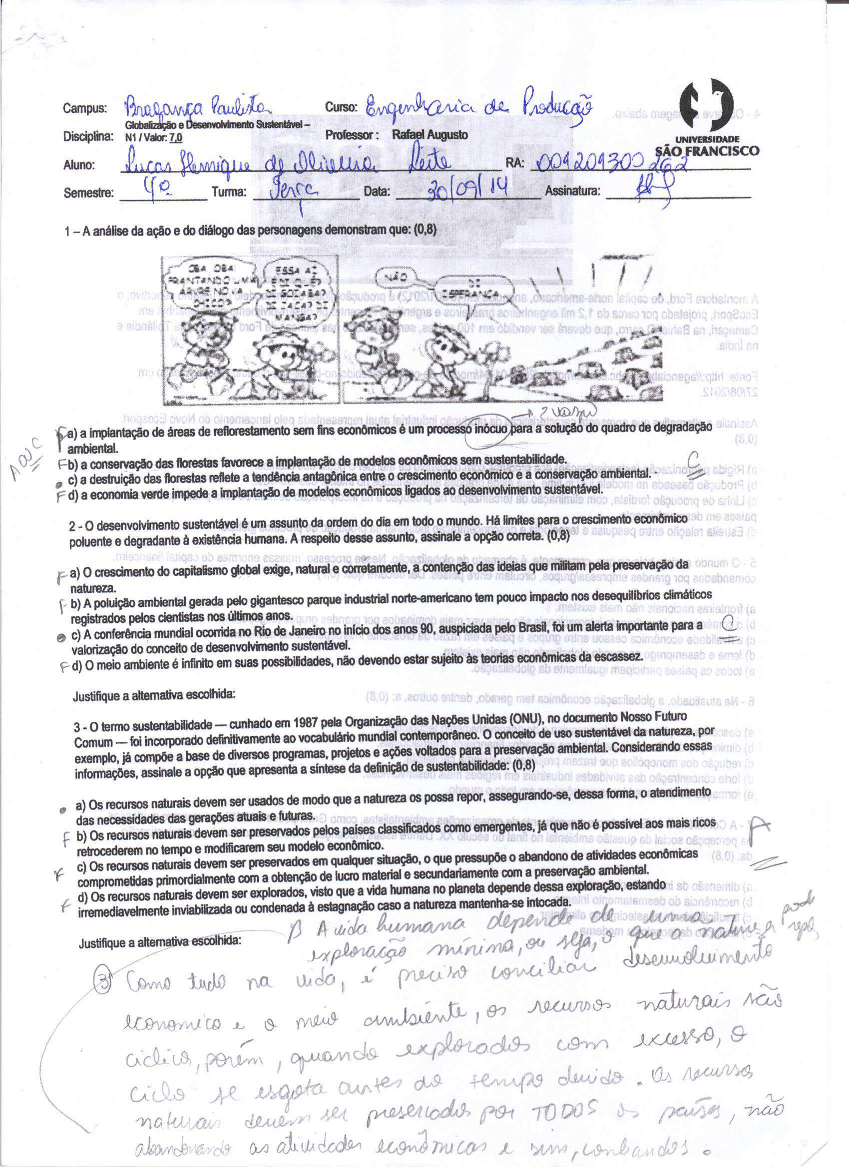 Provas 1 e 2 de Globalização e Desenvolvimento Sustentável 2º semestre 2014