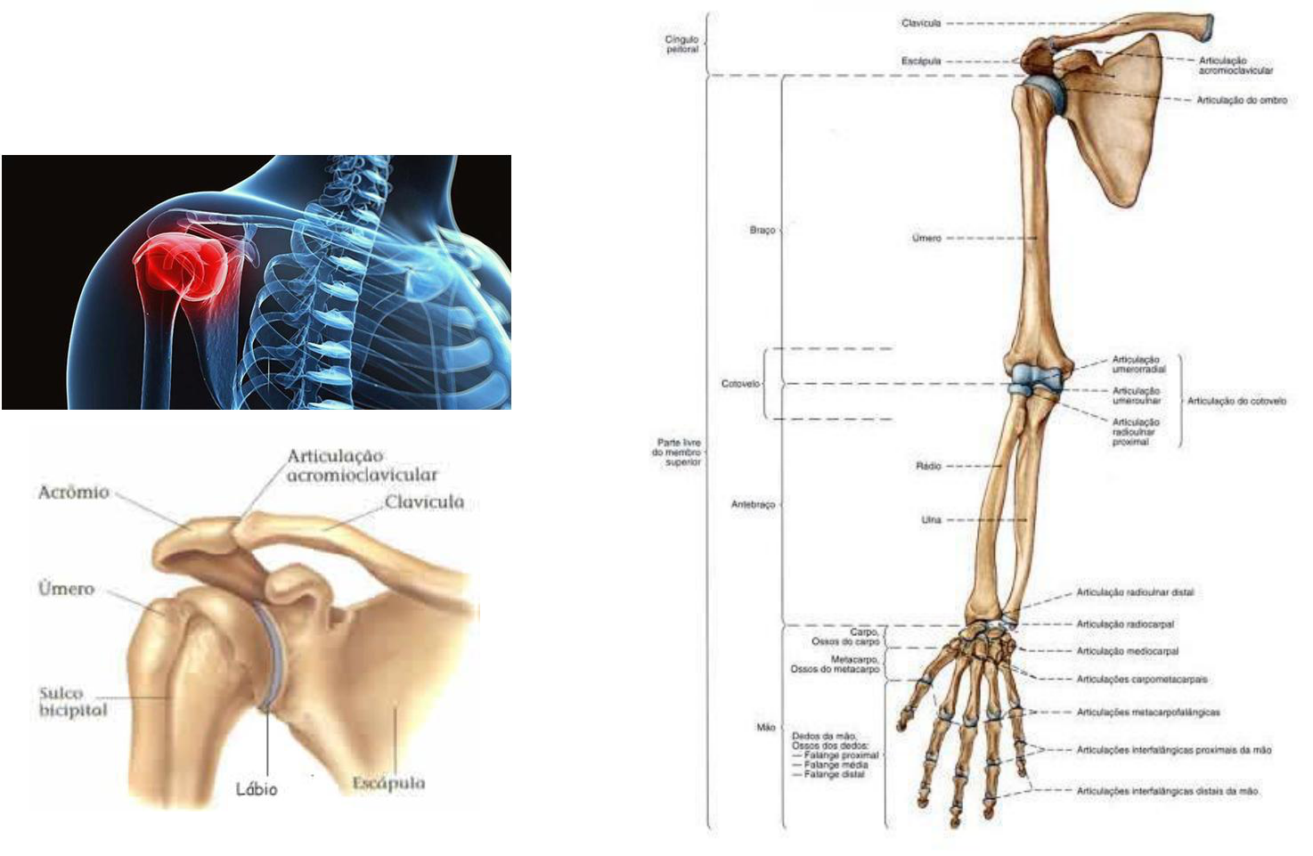 AÇÃO LIGAMENTAR OMBRO ARTICULAÇÃO ESTERNOCLAVICULAR Cápsula Articular: Circunda a articulação e varia em espessura e resistência. LIGAMENTOS Ligamento Esternoclavicular Anterior: é um amplo feixe de fibras cobrindo a face anterior da articulação-limita a prostração. Ligamento Esternoclavicular Posterior: é um análogo feixe de fibras que recobre a face posterior da articulação-limita a retração. Ligamento Interclavicular: é um feixe achatado que une as faces superiores das extremidades esternais das clavículas-limita o abaixamento ou depressão da clavícula junto com o lig. esternoclavicular superior. Ligamento Costoclavicular: é pequeno, achatado e resistente. Está fixado na parte superior e medial da cartilagem da primeira costela e face inferior da clavícula-limita a elevação da clavícula junto com o m. subclávio. ARTICULAÇÃO ACROMIOCLAVICULAR Cápsula Articular: Envolve toda a articulação Acromioclavicular. LIGAMENTOS Ligamento Acromioclavicular: é constituído por fibras paralelas que se estendem da extremidade acromial da clavícula até o acrômio. limitam os movimentos de protrusão, retração, elevação e depressão. Ligamento Coracoclavicular: une a clavícula ao processo coracóide da escápula. É formado por dois ligamentos: ligamento trapezóide (limita a protrusão e retração e rotação posterior) ligamento conóide (limita a retração e rotação anterior). ARTICULAÇÃO GLENOUMERAL Tipo de articulação: esferoide-triaxial Tipos de movimentos na superfície articular: rolamento, deslizamento e giro; Classificação dos graus de liberdade: 3 graus de liberdade Movimentos realizados: Flexão e extensão Abdução e adução Rotação interna (medial) e rotação externa (lateral) Circundução (movimento em torno de um centro ou de um eixo.) LIGAMENTOS GLENOUMERAIS Lig. Glenoumeral superior Lig. Glenoumeral médio Lig. Glenoumeral inferior (protege contra luxação inferior e anterior) Não tem real função estabilizadora, mas: Rot. Lateral: os três tensos Rot. Medial: os três relaxam Abdução: lig. médio e inferior estão tensos Lig. Umeral transverso retém o tendão do bíceps LIGAMENTOS ACESSÓRIOS: Lig. Coracoumeral (2 feixes): na extensão, a tensão predomina no feixe do tubérculo menor (Antero–inferior). Na flexão a tensão é no tubérculo maior (póstero-superior). Lig. Coracoacromial: Aumenta a superfície em que a cabeça do úmero é suportada quando uma força é transmitida para cima. MANGUITO ROTADOR •Formada por 4 músculos profundos: Supraespinhal: impede os deslocamentos para cima. Subescapular: impede os deslocamentos para frente. Infraespinhal: impede os deslocamentos para trás. Redondo menor: impede os deslocamentos para trás.