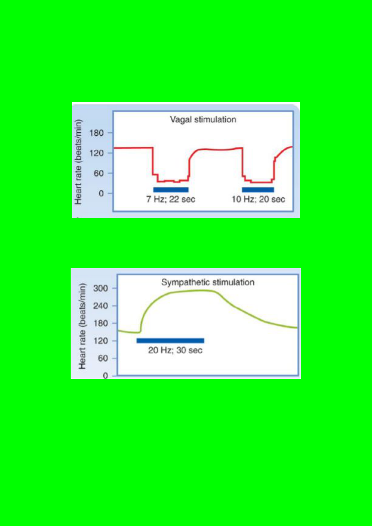 O simpático e o parassimpático controlam bem tanto a frequência, quanto a força de contração. Na estimulação parassimpática, a frequência do sujeito caí de uma maneira bem rápida e quando o estímulo é cessado, a frequência cardíaca volta rapidamente ao normal. Diferentemente do parassimpático, a estimulação simpática faz com que a frequência aumente de uma maneira mais lenta e, devido a cessação do estímulo, a frequência cai de uma maneira lenta também. Ou seja, nós temos uma diferença na resposta ao estímulo simpático e parassimpático, em termos de velocidade. A diferença está na sinapse do simpático e do parassimpático. Quando o estímulo vagal é cessado, a acetilcolina que fica na fenda sináptica é degradada; e como não têm mais acetilcolina, a frequência volta ao normal. Já a noradrenalina que é liberada mediante um estímulo simpático, quando é cessado o estímulo, a noradrenalina que está na fenda sináptica continua estimulando. Por que a frequência no parassimpático cai rapidamente, enquanto que o estímulo simpático possui uma resposta lenta? A subunidade vai direto para um dos canais de potássio (não depende de segundo γβ mensageiro, como o estímulo adrenérgico). Além disso, nós temos canais de potássio que são ligante-dependentes (receptores da acetilcolina, o que a noradrenalina não têm). Por isso que a resposta é muito mais rápida no estímulo parassimpático do que no simpático. A primeira conclusão é que a modulação colinérgica é mais rápida (sensível) na alteração da frequência cardíaca. Como é o tônus dessa atividade autonômica no coração (atividade basal da atividade simpática e parassimpática)? Então, conseguimos modular a frequência tanto para mais quanto para menos ajustando só o simpático ou só o parassimpático. (por exemplo, se tirarmos o simpático, a frequência vai cair). O que acontece se tirarmos o simpático e o parassimpático? A frequência intrínseca é a frequência de disparo do nodo sinoatrial independente da modulação autonômica. Se pegarmos um indivíduo com a frequência de 60 bpm, e damos para ele um bloqueador muscarínico (atropina) e logo depois um beta bloqueador (propranolol). Portanto, com esse experimento, chegaremos a frequência intrínseca. Percebemos que a frequência intrínseca é maior que a frequência fisiológica. Também podemos fazer o inverso: dar propranolol e em seguida atropina: chegaremos a mesma frequência intrínseca. Como a frequência intrínseca é maior que a fisiológica, chegamos a conclusão que o parassimpático têm maior atividade. O parassimpático permite fazemos ajustes mais rápido, devido a suas características fisiológicas. Iremos citar exemplos em que o SNA regula a frequência cardíaca no dia-a-dia. Barorreflexo é um mecanismo de estabilização da pressão arterial. Pressão arterial = débito cardíaco x resistência periférica total O barorreflexo faz assim: se uma variável aumenta ou diminui, o barorreflexo faz com que as outras variáveis sejam aumentadas ou diminuídas. O aumento da pressão arterial causa a diminuição da frequência cardíaca. Diminuiu a pressão, a resposta é aumento da frequência. Se aumenta a pressão arterial, a atividade vagal aumenta e a simpática diminui. O reflexo de bainbridge acontece em situações patológicas. Ele faz uma correção na frequência cardíaca em decorrência da volemia (aumento do retorno venoso). Quando a parede do átrio direito se estira, receptores de estiramento percebem o aumento do volume, fazendo com que atividade simpática aumente e a parassimpática diminua. Quando aumenta o volume e o retorno venoso, o volume sistólico aumenta e também o débito, fazendo a pressão aumentar. A modulação do barorreflexo junto com o reflexo de bainbridge nos dá a frequência cardíaca. Se tivermos uma hemorragia (hipovolemia), o barorreflexo vai aumentar a pressão. A frequência cardíaca é determinada pelo intervalo RR, ou seja, a medida que aumenta o intervalo RR, a frequência diminui e a recíproca é verdadeira. Nós temos uma arritmia fisiológica. Quando extrapola o limite, temos uma arritmia patológica. Quais fatores causam a flutuação do intervalo RR: a própria respiração. Quando a gente está inspirando, temos aumento da atividade simpática. Quando a gente expira, temos aumento da atividade parassimpática. Então, durante o nosso ciclo inspiratório a tendência é que o intervalo RR diminua. A medida que fazemos a expiração, a tendência é que o intervalo RR aumente. O indivíduo com insuficiência respiratória e hipoxemia chegará no pronto-socorro com uma taquicardia. Temos dois principais controladores da respiração que são os quimioceptores periféricos(sensíveis a variações de oxigênio, mais especificamente eles são ativados quando temos redução de oxigênio), que estão no arco aórtico e seio carotídeo e os que estão no tronco cerebral, que são os quimiorreceptores centrais(são mais sensíveis ao CO2 e hidrogênio). Quando os quimiorreceptores centrais e periféricos são ativados, há um aumento da frequência respiratória. Os quimiorreceptores periféricos fazem projeções para o núcleo do nervo vago e quando ativados (por hipoxemia), ativam o nervo vago. Eles vão produzir dois efeitos no indivíduo: primeiro o indivíduo vai ter um aumento do esforço respiratório, além de ter taquipnéia (aumento da frequência respiratória), fazendo os níveis de CO2 abaixarem, provocando uma hipocapnia, que junto ao aumento do esforço respiratório vai inibir o nervo vago, fazendo a frequência cardíaca aumentar. O fator emocional ativa o simpático. Na hipoxemia, há aumento da frequência respiratória para melhorar a oxigenação, agora, se temos que aumentar o trabalho respiratório para melhorar a oxigenação; mais CO2 também é trocado, provocando a hipocapnia. O volume sistólico é determinado por 4 g